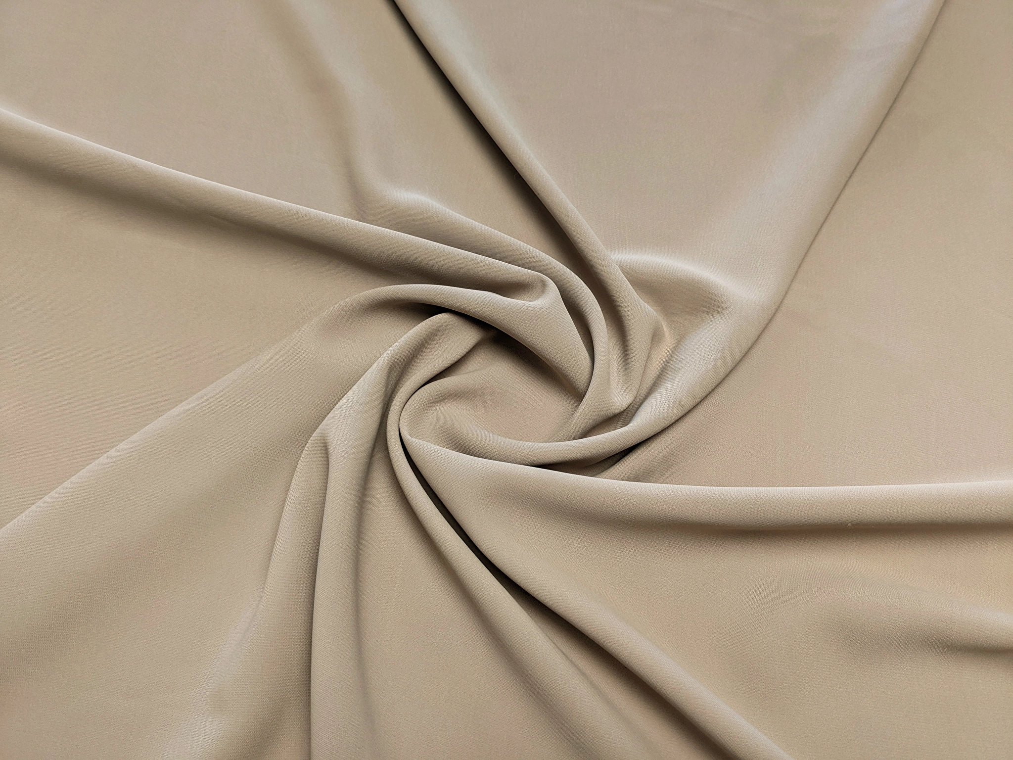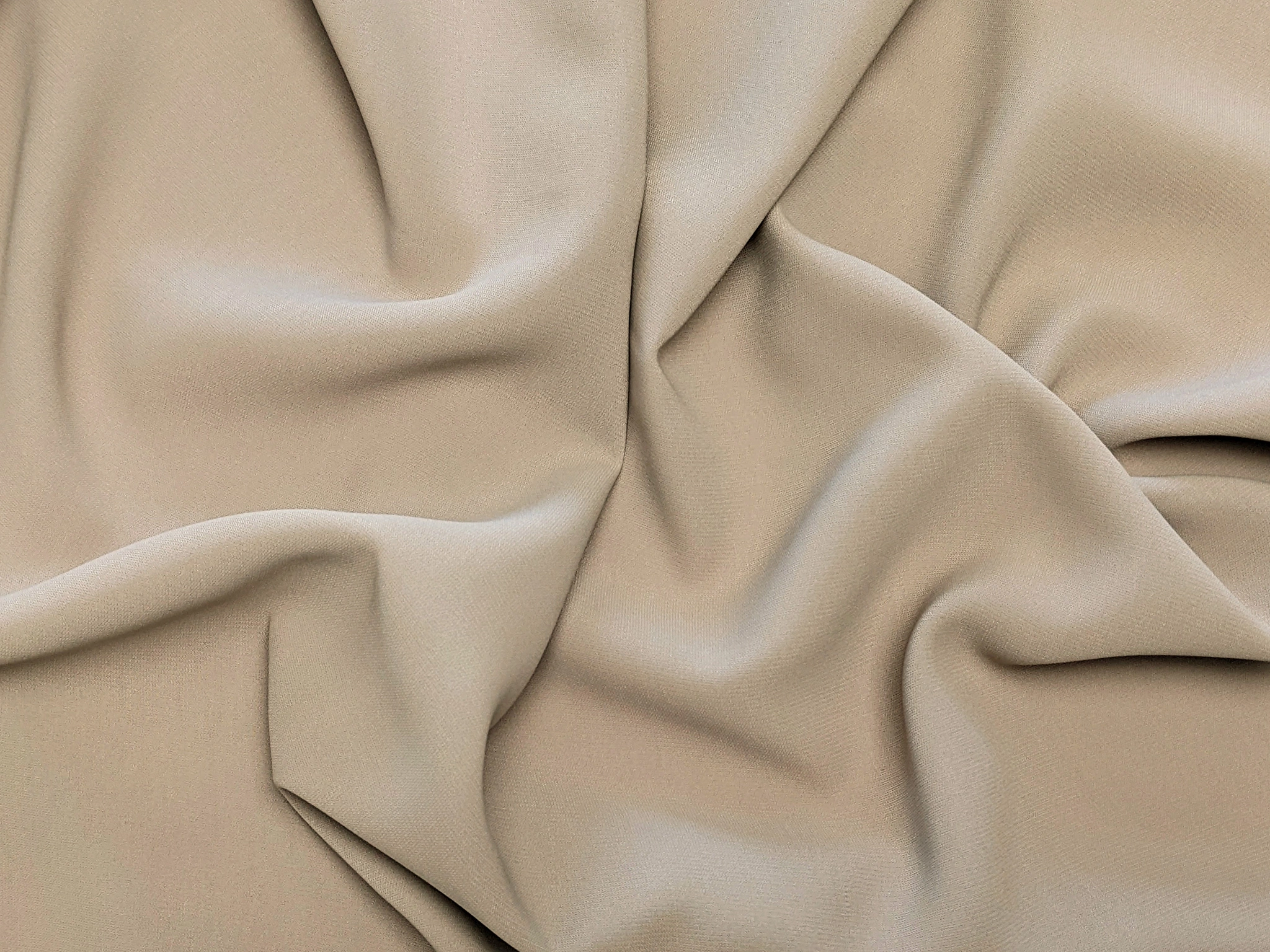 Костюмна шовковиста - це гладка, легка, але міцна тканина. Полотно дуже красиво лягає складками, не мнеться. На світлі трохи просвічується. Забарвлення насичене, кольори глибокі і яскраві. У складі має невелику кількість спандексу, за рахунок цього тканина трохи тягнеться. Шовковиста костюмка приємна до тіла. Застосовується для пошиття брюк палаццо, літніх класичних брюк і суконь.