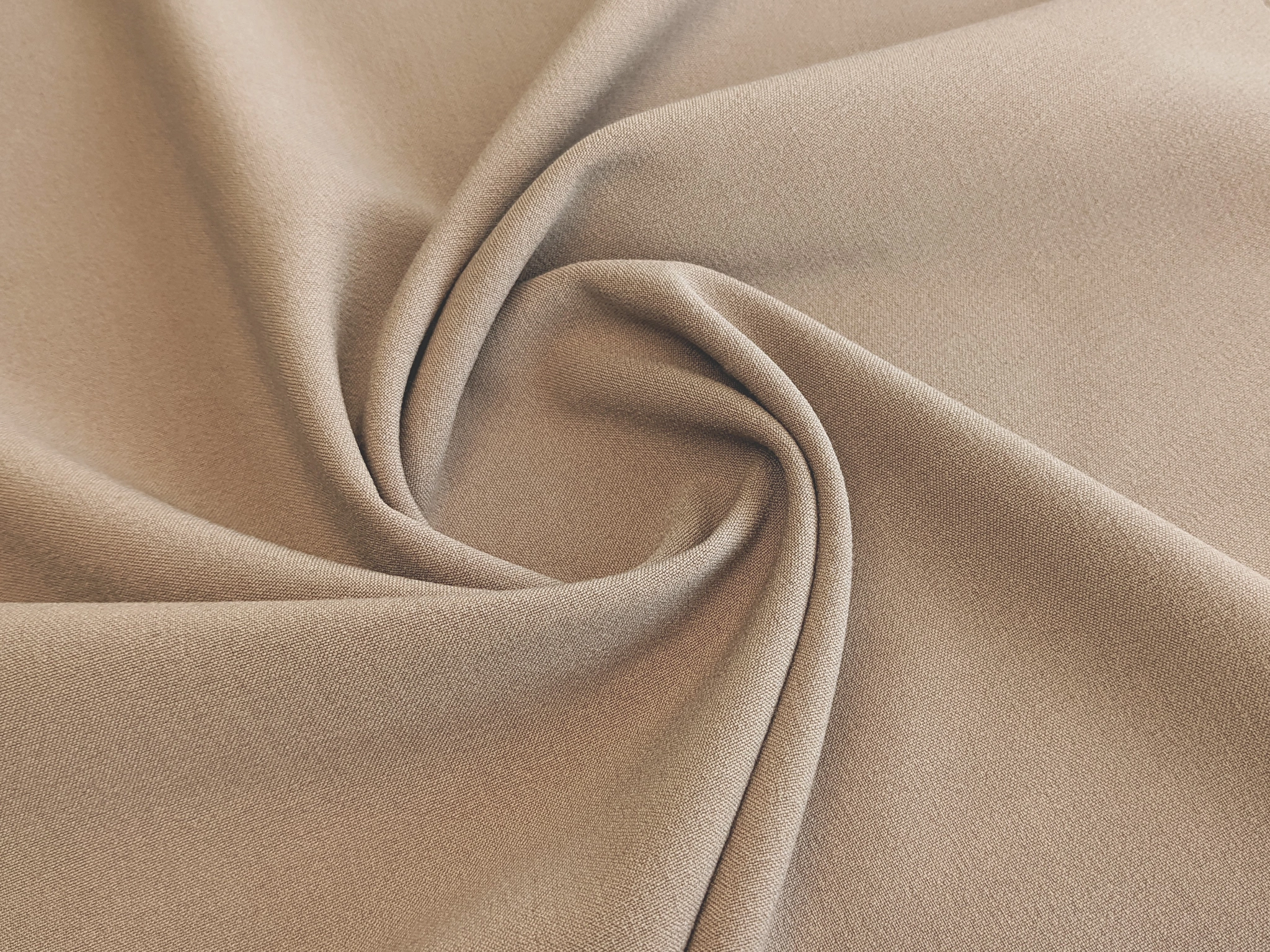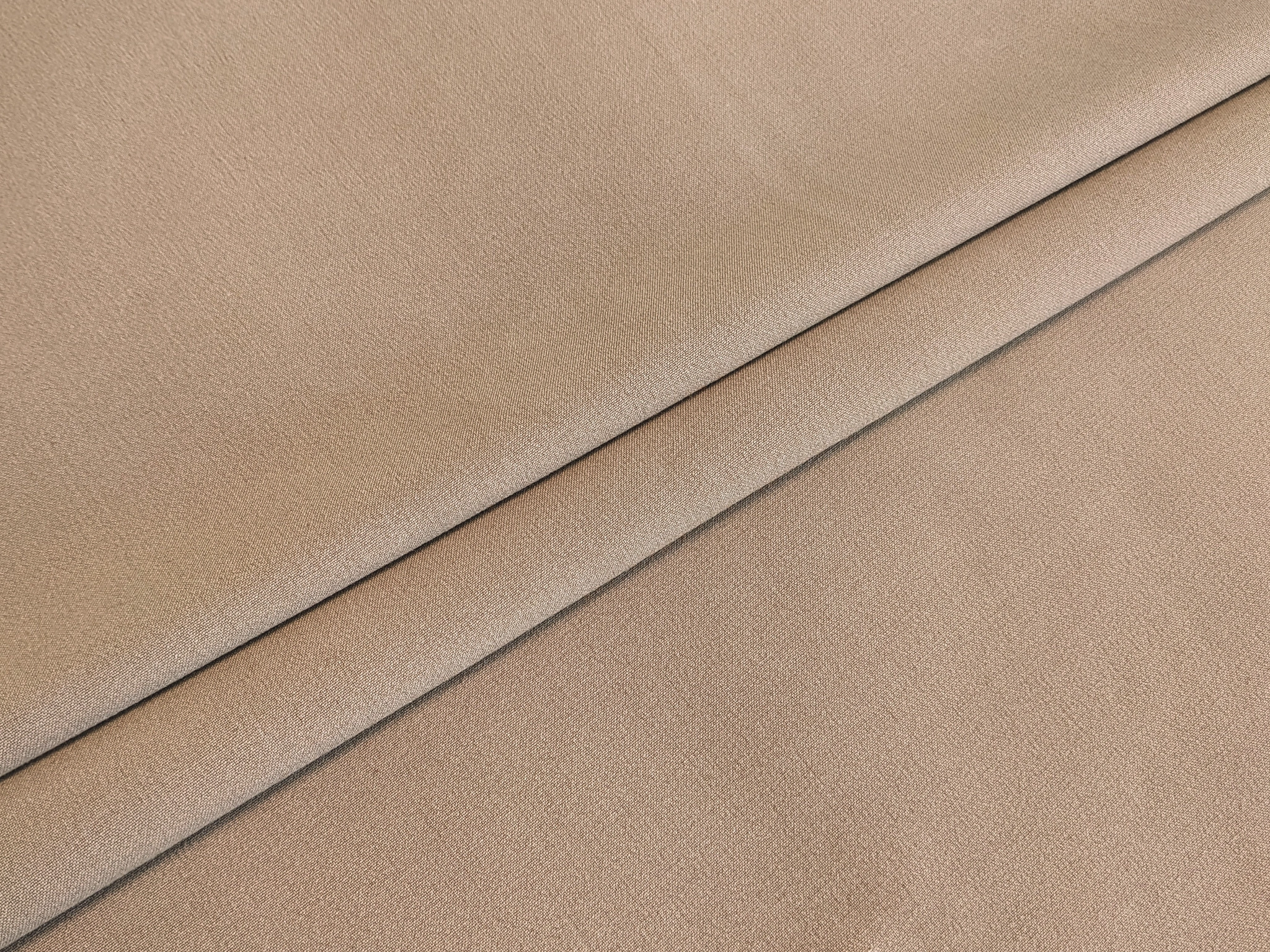 Тіар Сінді - костюмна тканина середньої щільності з ледь помітною зернистою та рубчиковою фактурою. Матеріал м'який, має поперечний і поздовжній стрейч, злегка зминається, добре драпірується, лягаючи в м'які складки. Тканина змішана, поєднує в собі натуральні волокна та синтетичні.