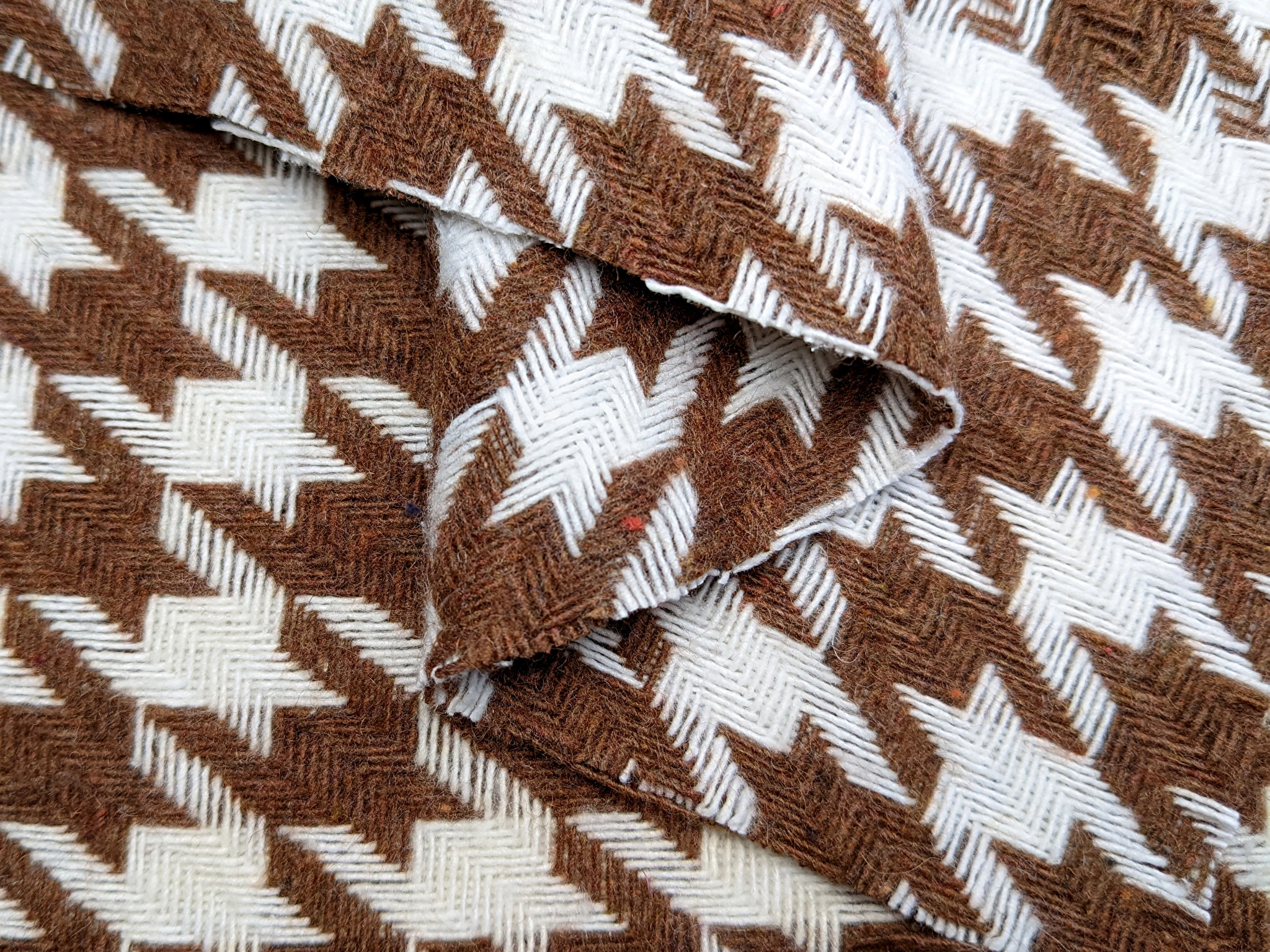 Твідова клітина - це полотно середньої щільності, яке не тягнеться. Тканина м'яка і приємна на дотик з двох сторін. Класичні дизайни в клітку і гусячу лапку добре виглядають при пошитті кардиганів, спідниць і теплих суконь. Полотно не колеться і не просвічується, тому не вимагає додаткової підкладкової тканини.