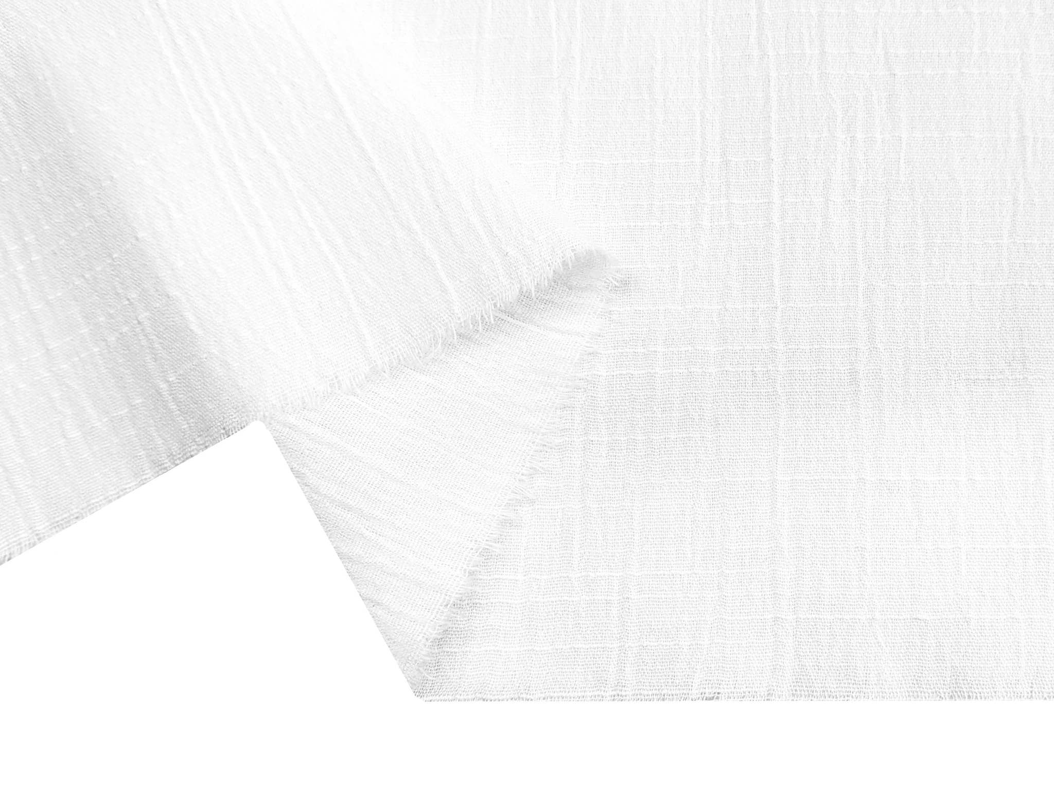 Котон кринкл - натуральний матеріал, виготовлений з бавовняних волокон. Тканина тонка і легка, має особливу поверхню з жатим ефектом, що надає полотну легкості й невагомості. Котон добре пропускає повітря, не парить, гігроскопічний, має легку прозорість силуету, під час драпірування набуває повітряної форми.