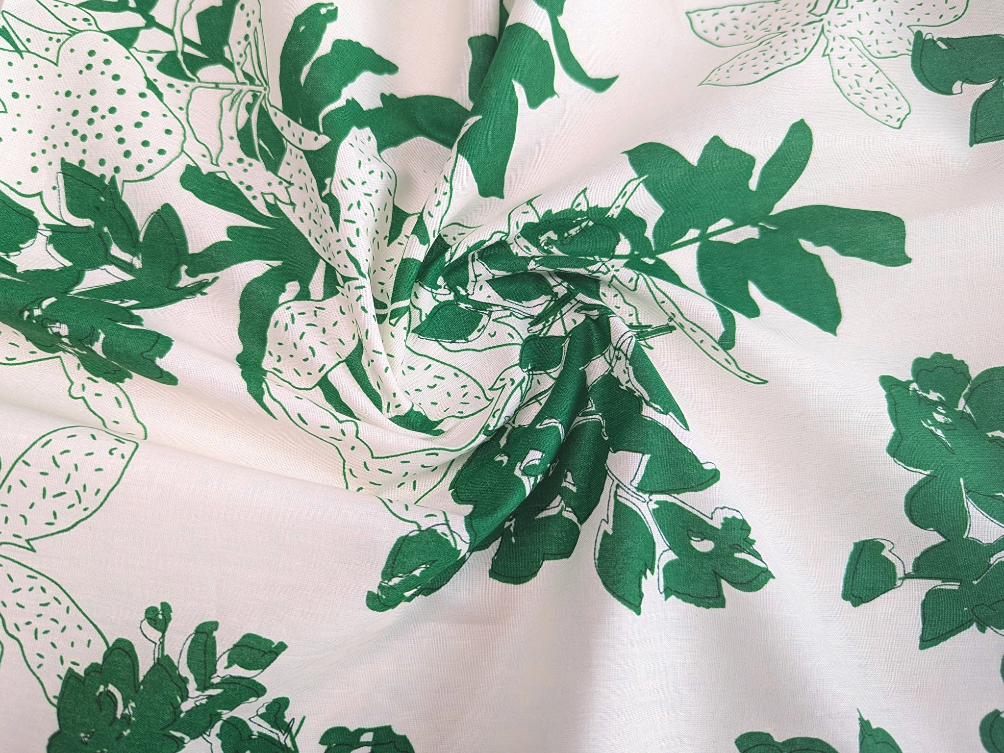 Літній котон з квітковим принтом - це повністю натуральна бавовна, яка дарує почуття комфорту. Тканина приємна до тіла, не парить, добре пропускає повітря і вбирає вологу. Бавовна не тягнеться, легкий, відмінно прасується і дозволяє зберегти потрібну форму.