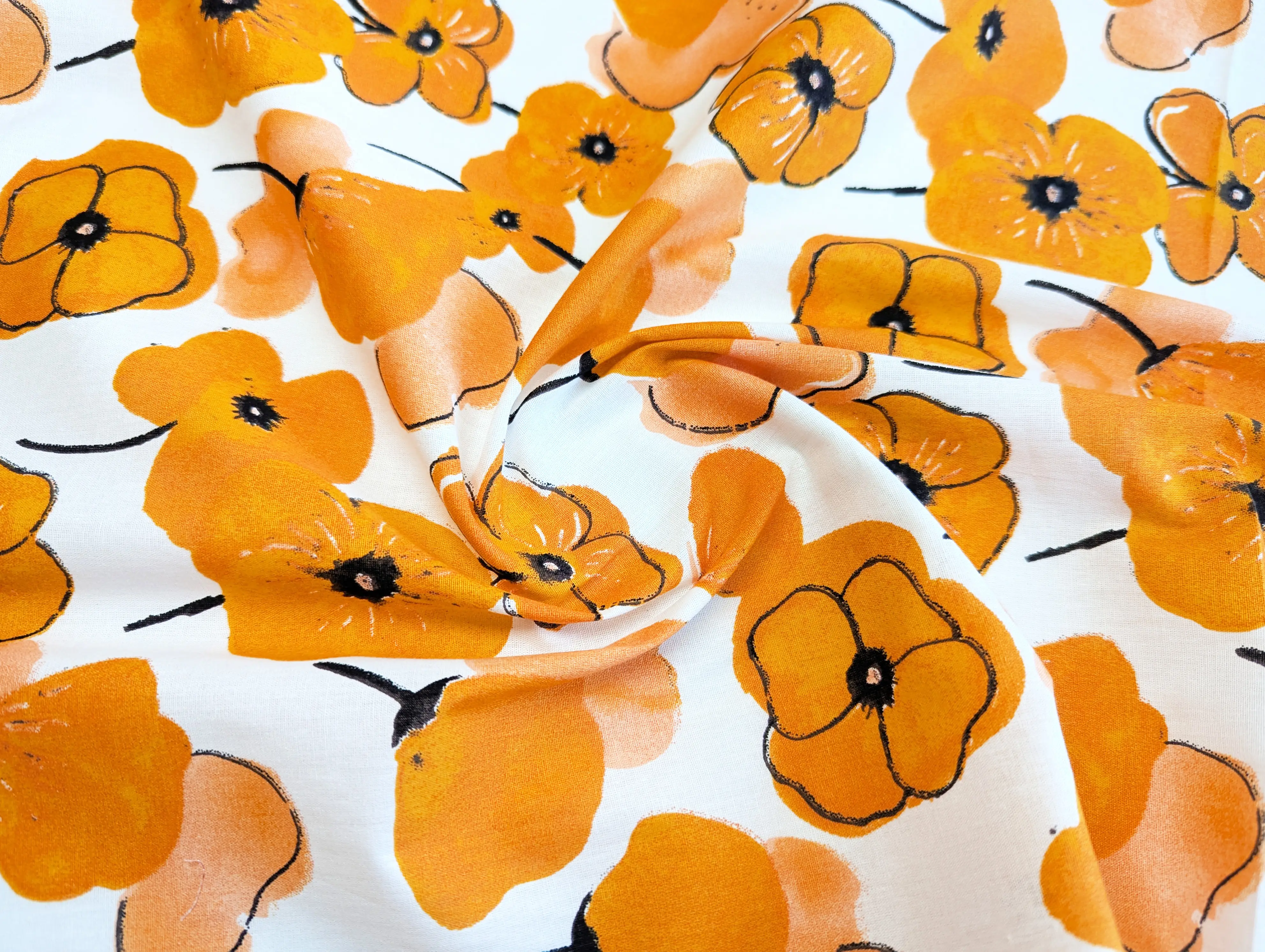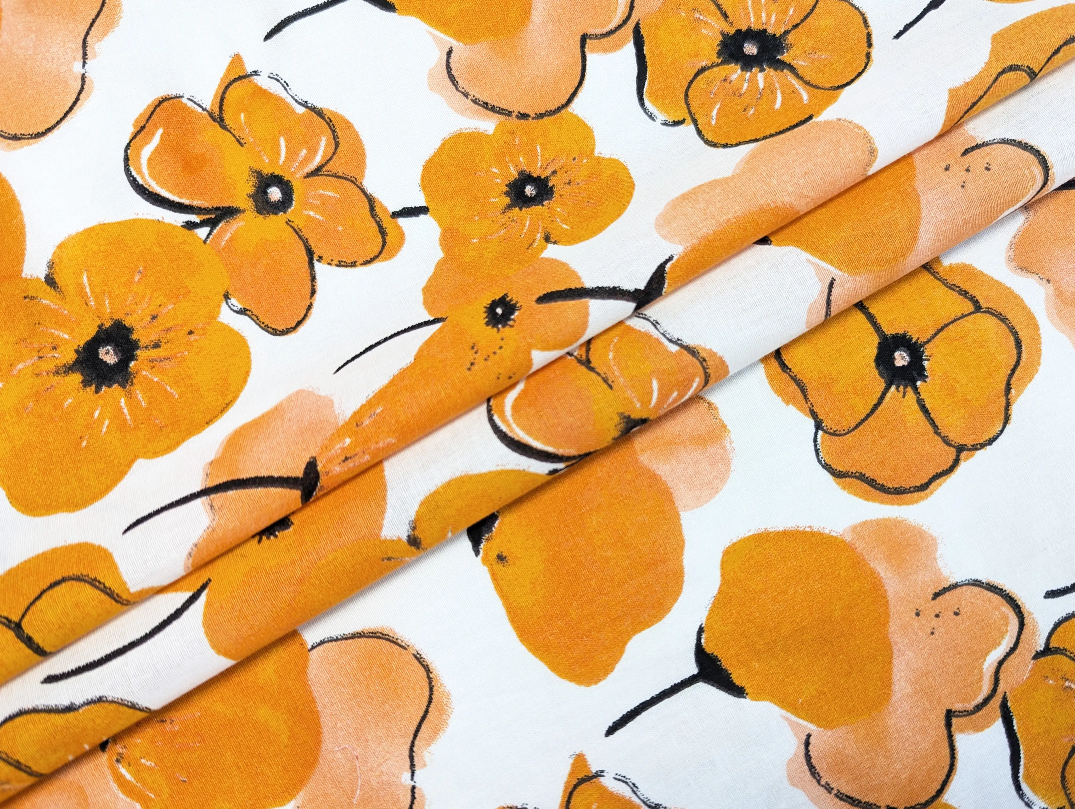 Котон квіткова акварель, помаранчевий (відріз 1 м)