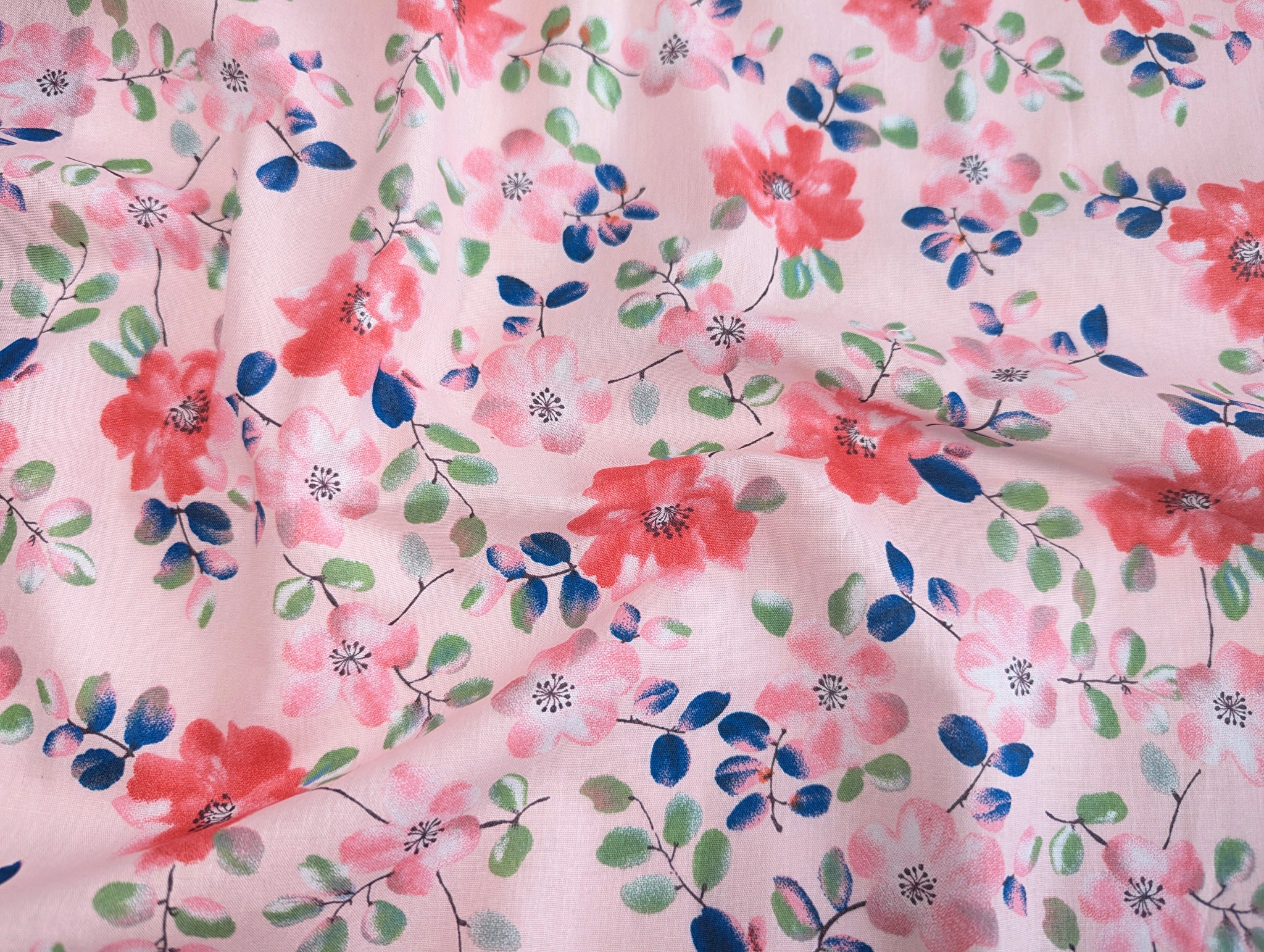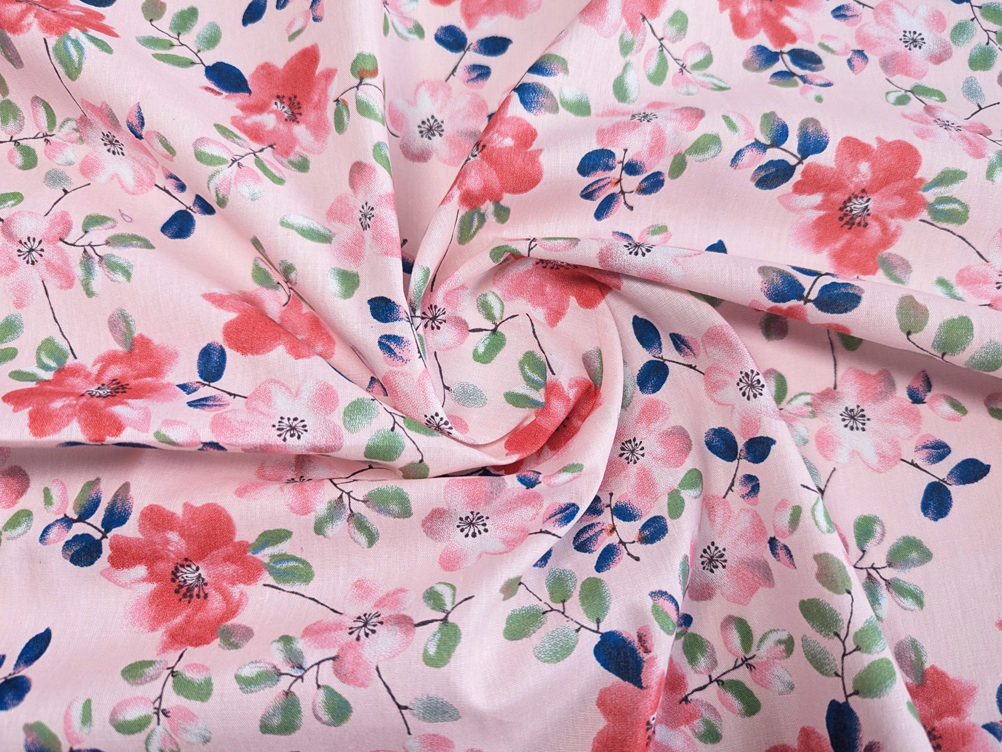 Літній котон з квітковим принтом - це повністю натуральна бавовна, яка дарує почуття комфорту. Тканина приємна до тіла, не парить, добре пропускає повітря і вбирає вологу. Бавовна не тягнеться, легкий, відмінно прасується і дозволяє зберегти потрібну форму.