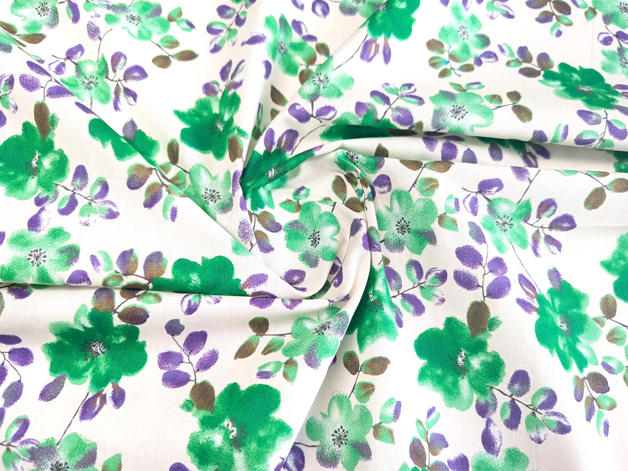 Літній котон з квітковим принтом - це повністю натуральна бавовна, яка дарує почуття комфорту. Тканина приємна до тіла, не парить, добре пропускає повітря і вбирає вологу. Бавовна не тягнеться, легкий, відмінно прасується і дозволяє зберегти потрібну форму.