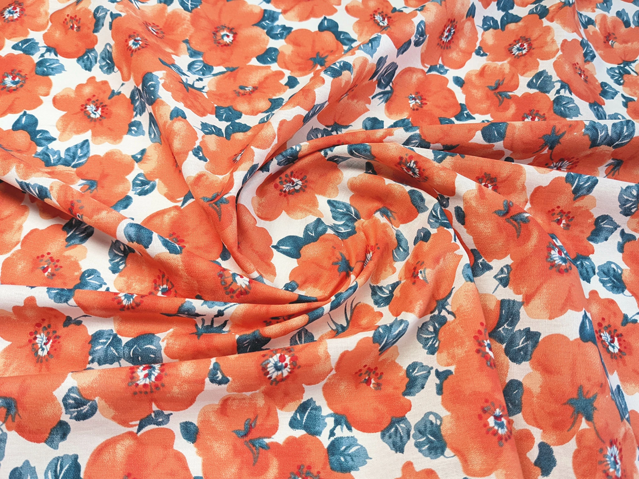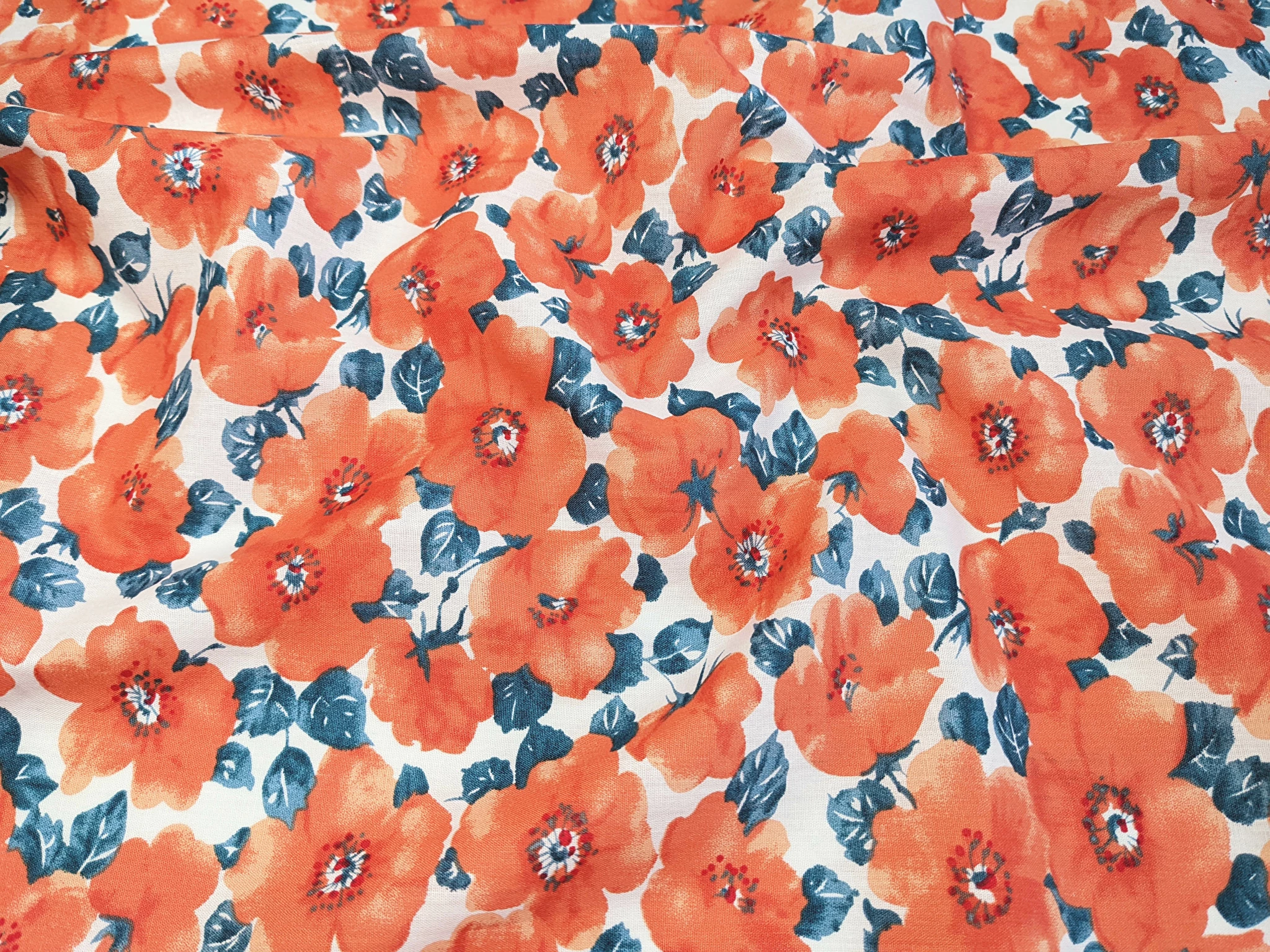 Літній котон з квітковим принтом - це повністю натуральна бавовна, яка дарує почуття комфорту. Тканина приємна до тіла, не парить, добре пропускає повітря і вбирає вологу. Бавовна не тягнеться, легкий, відмінно прасується і дозволяє зберегти потрібну форму.