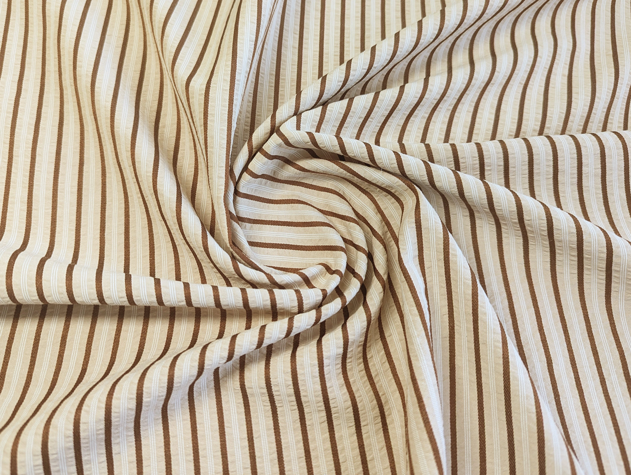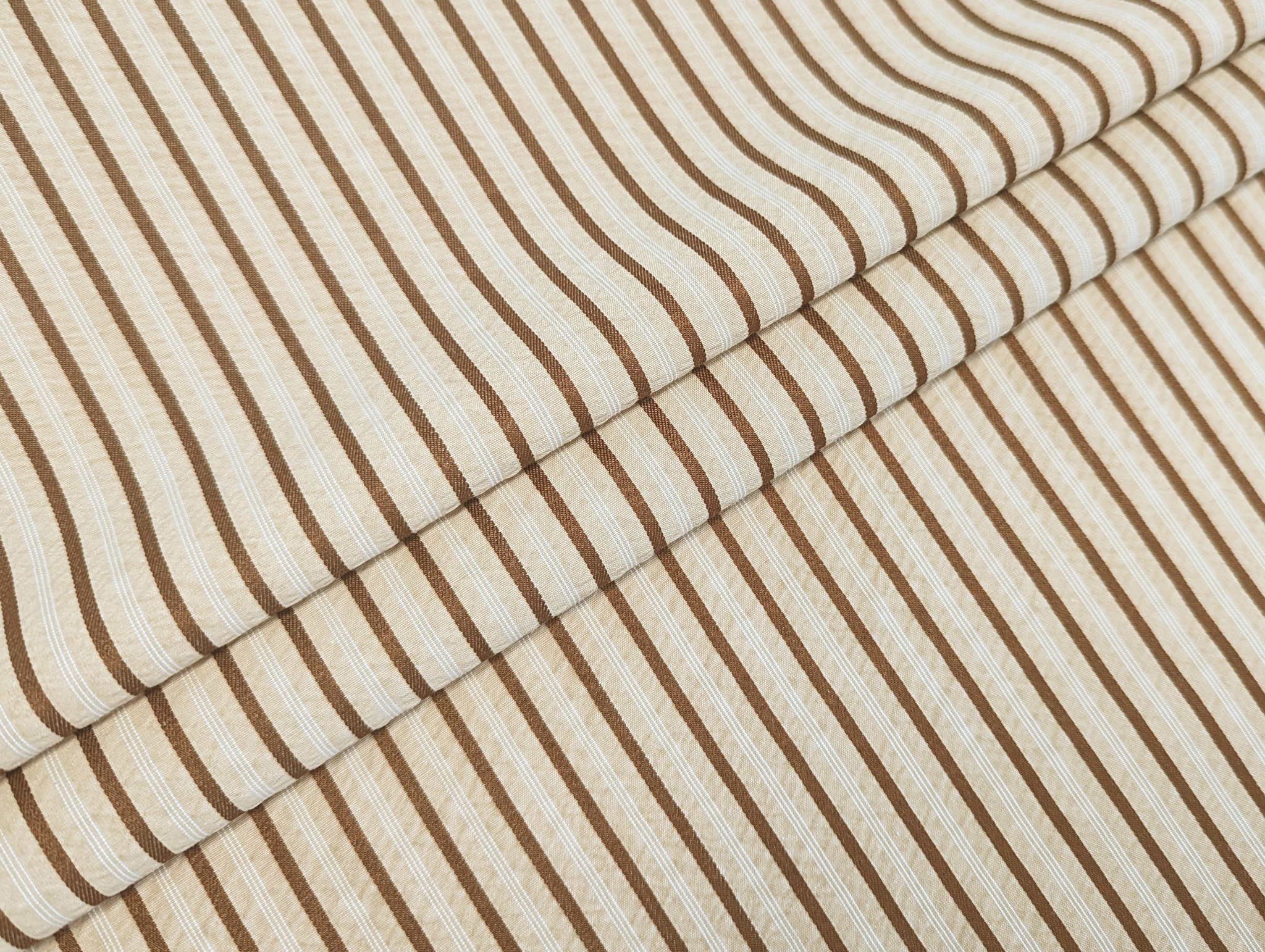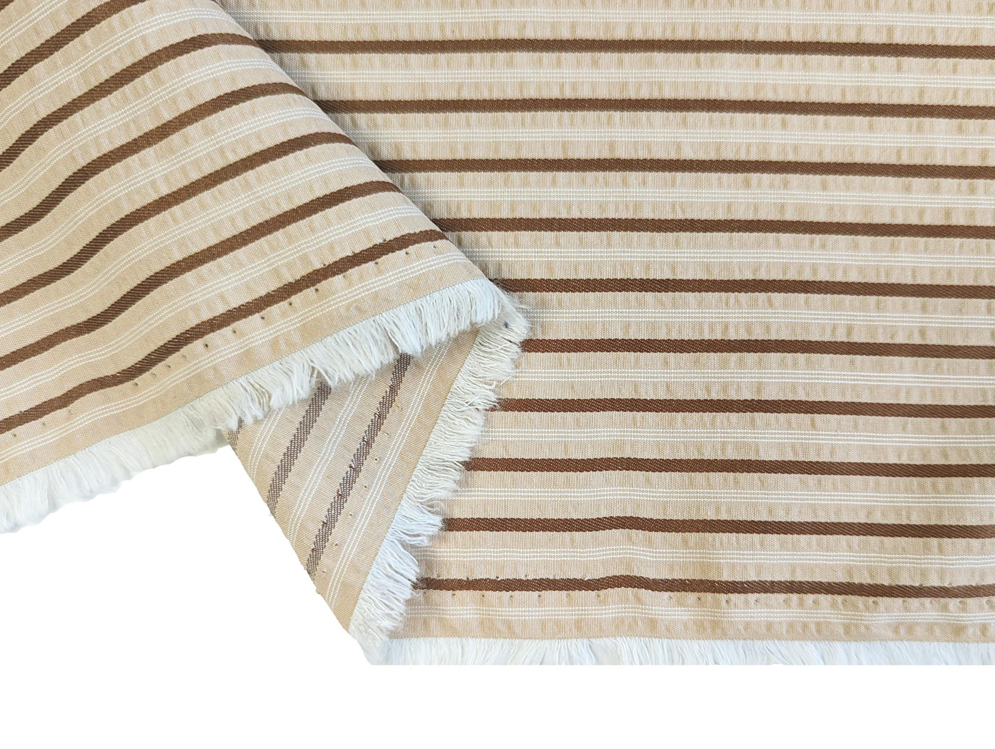 Котон рубашка смужка 10 мм, бежевий з теракотовим
