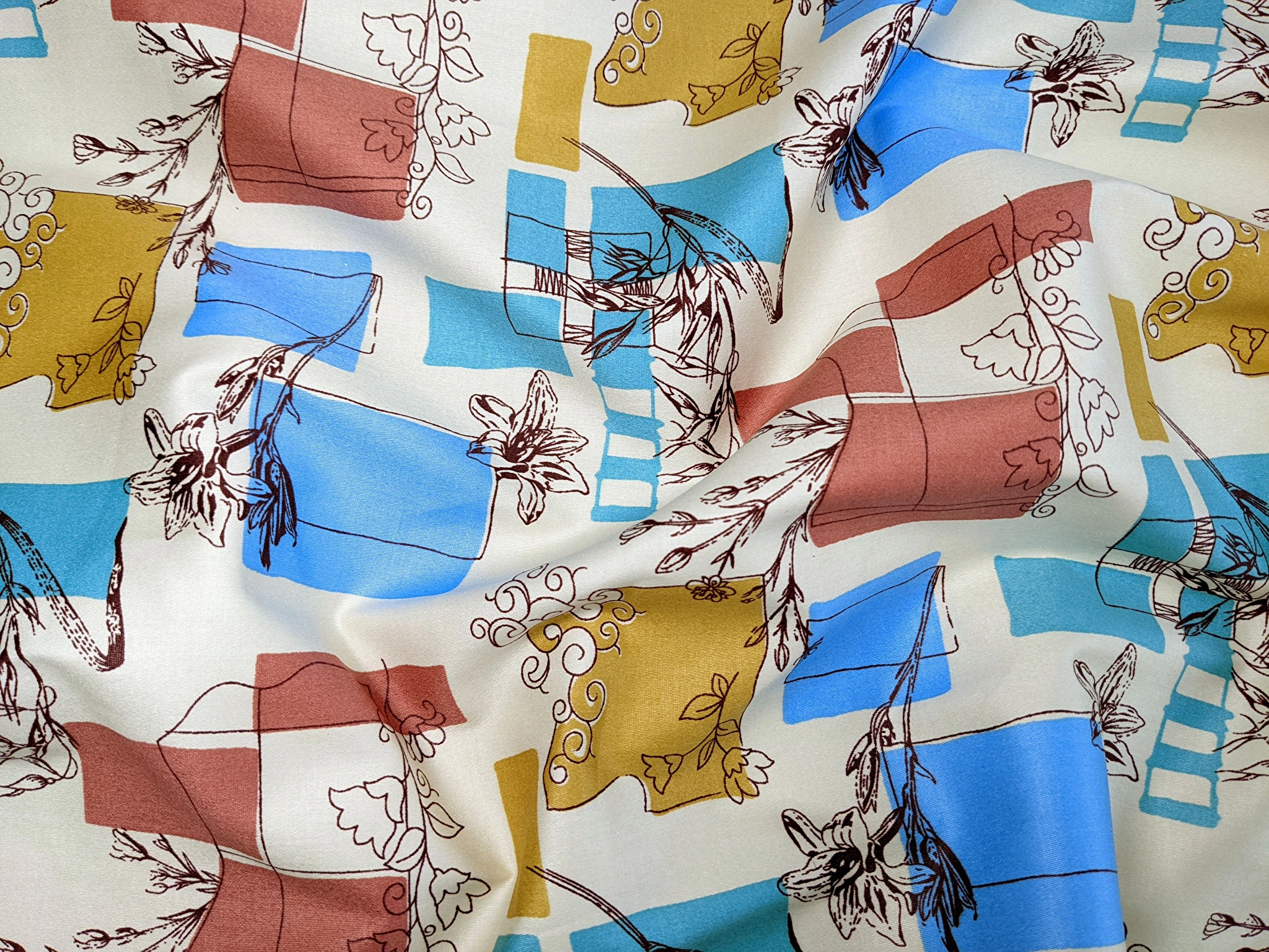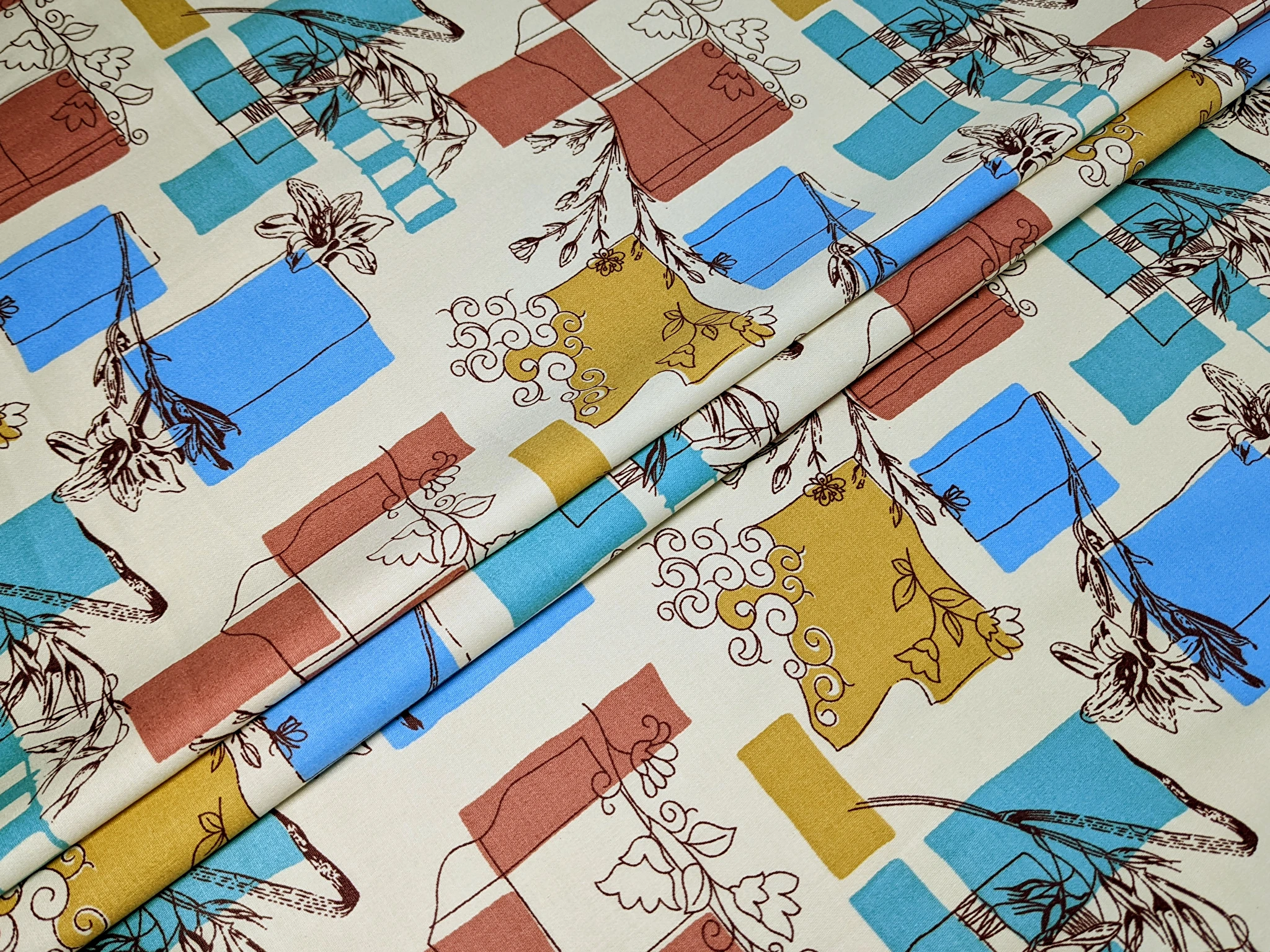 Котон сатин принт мікс орнаментів, ванільний