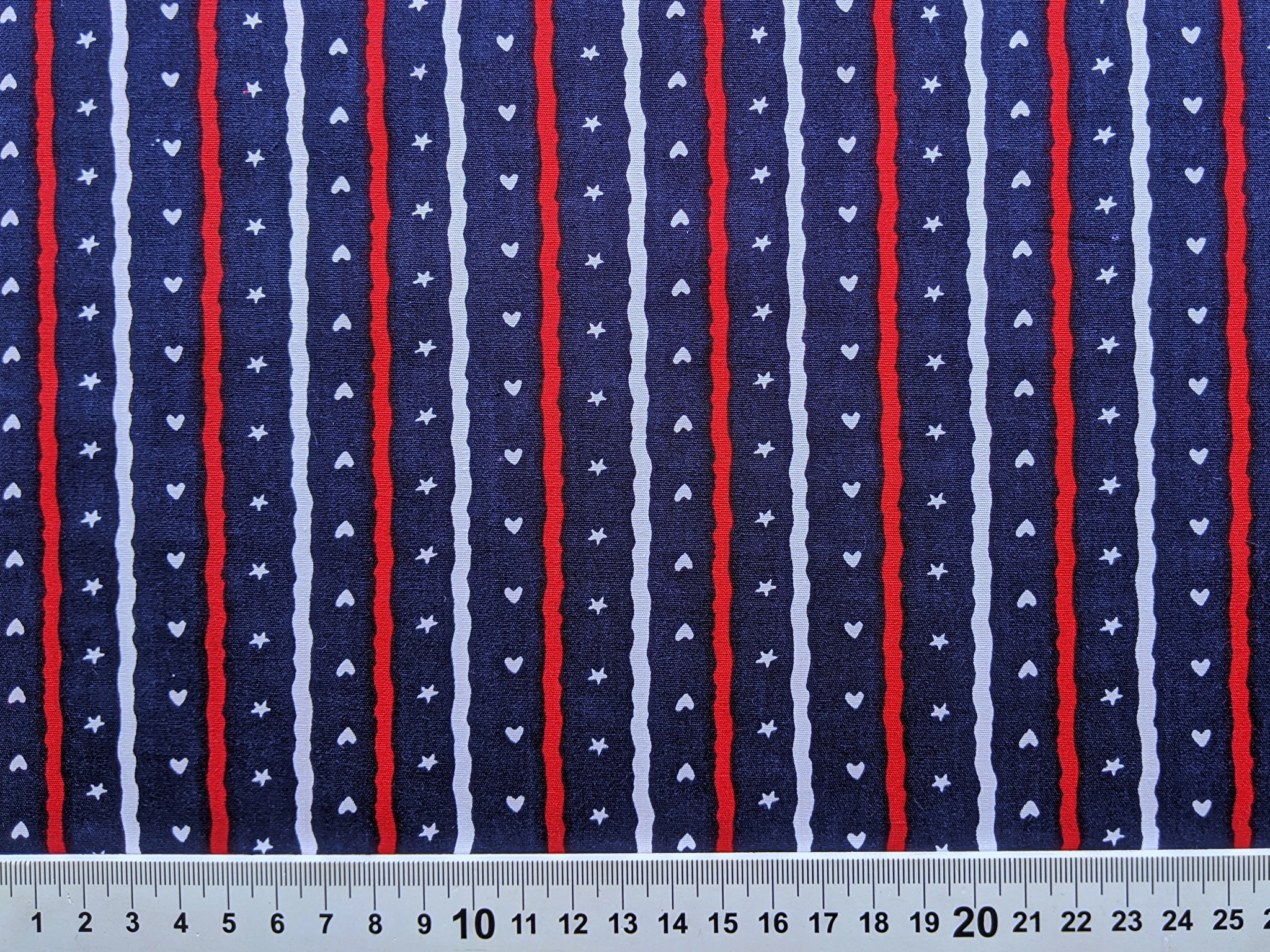Котон сердечка на смужці, червоно-білий на синьому (відріз 2,4 м)