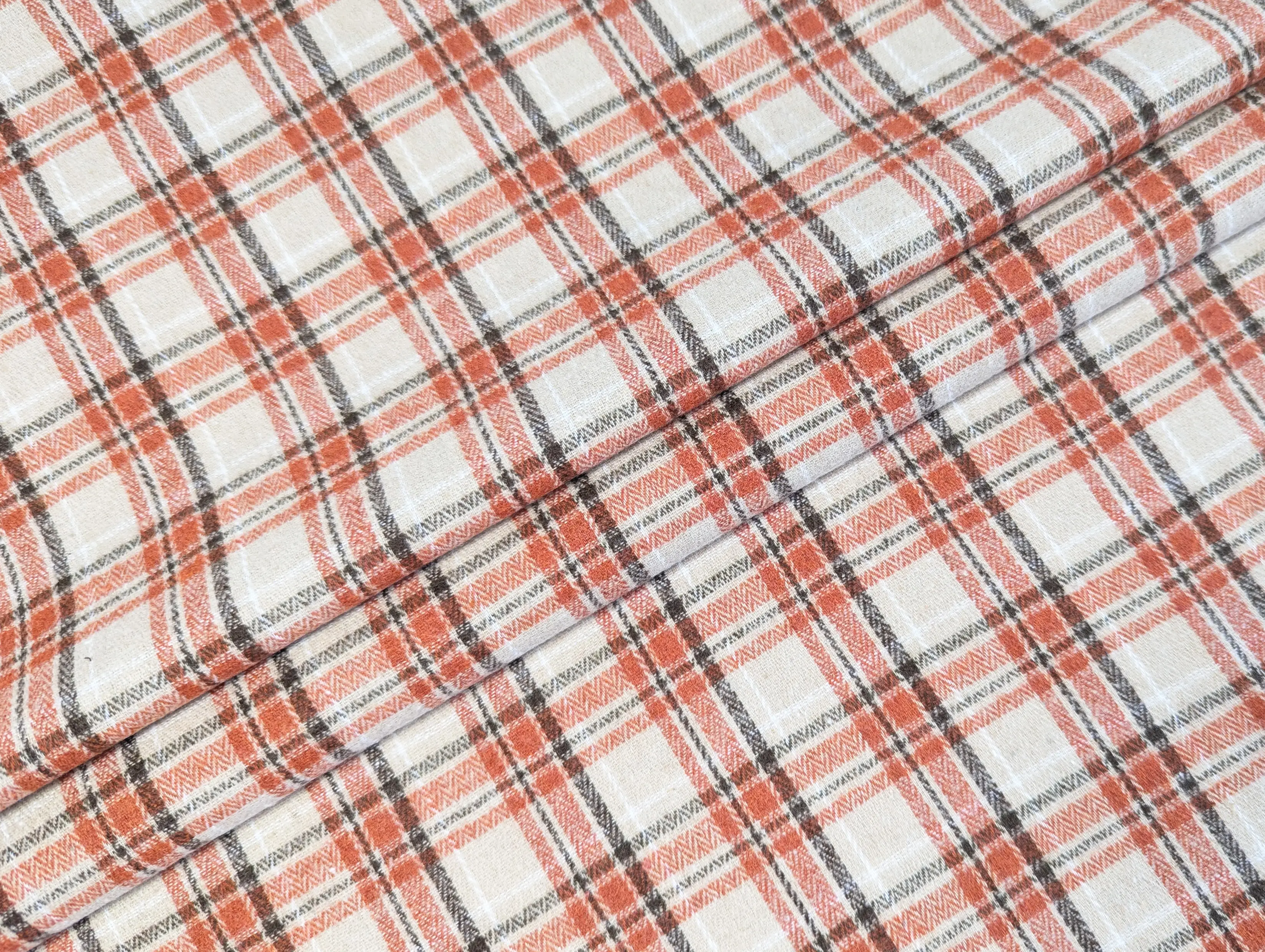 Котон сорочковий клітинка 40 мм, бежевий з помаранчевим