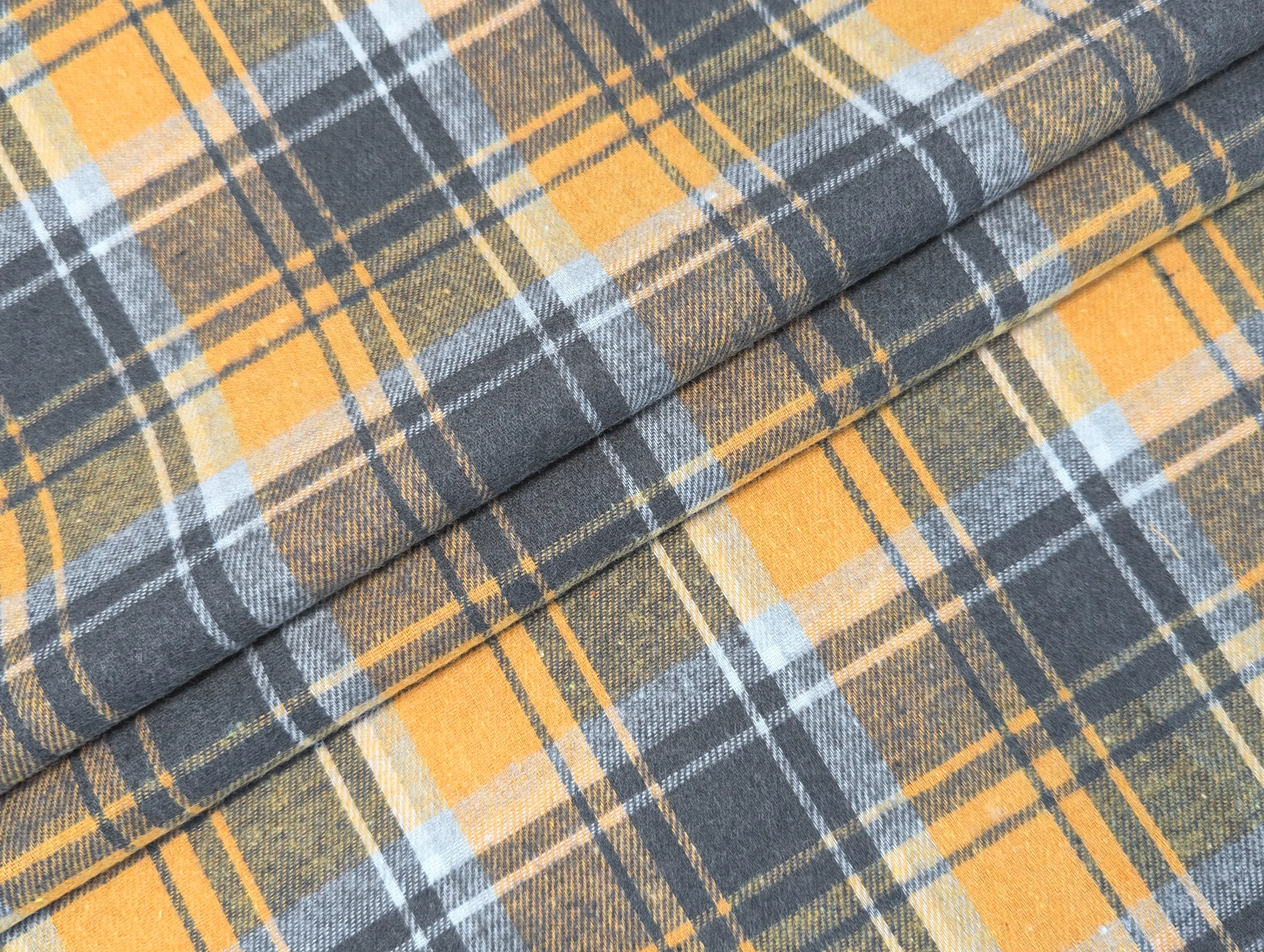 Котон сорочковий клітинка 85 мм, сірий з гірчичним (відріз 2 м)