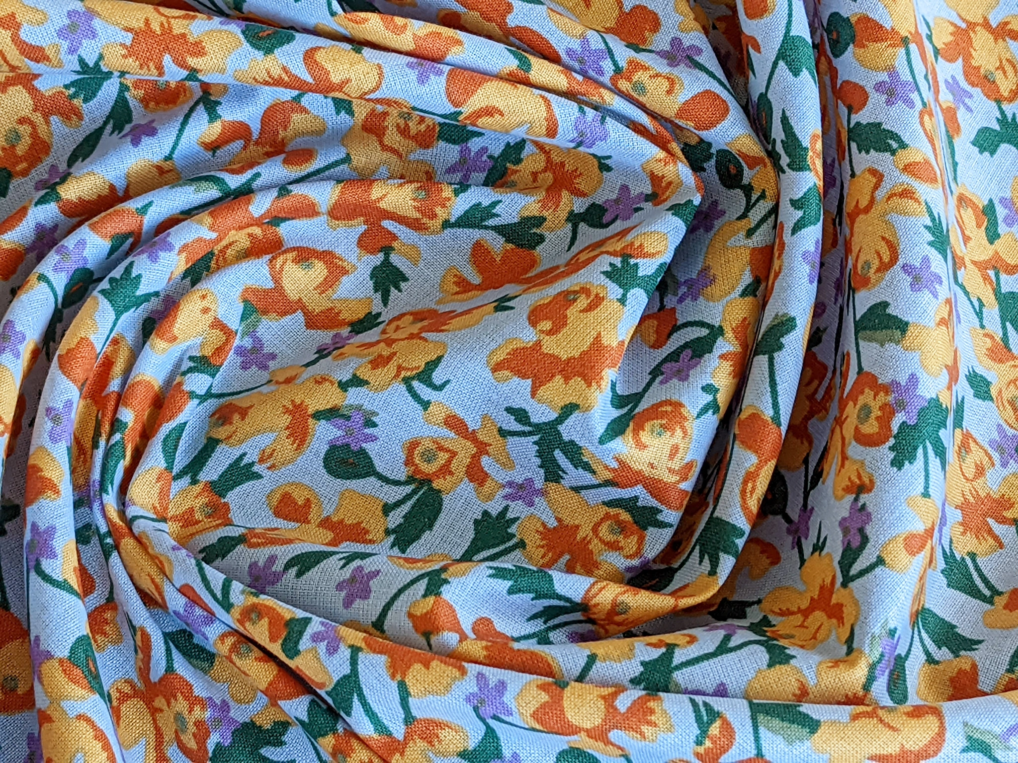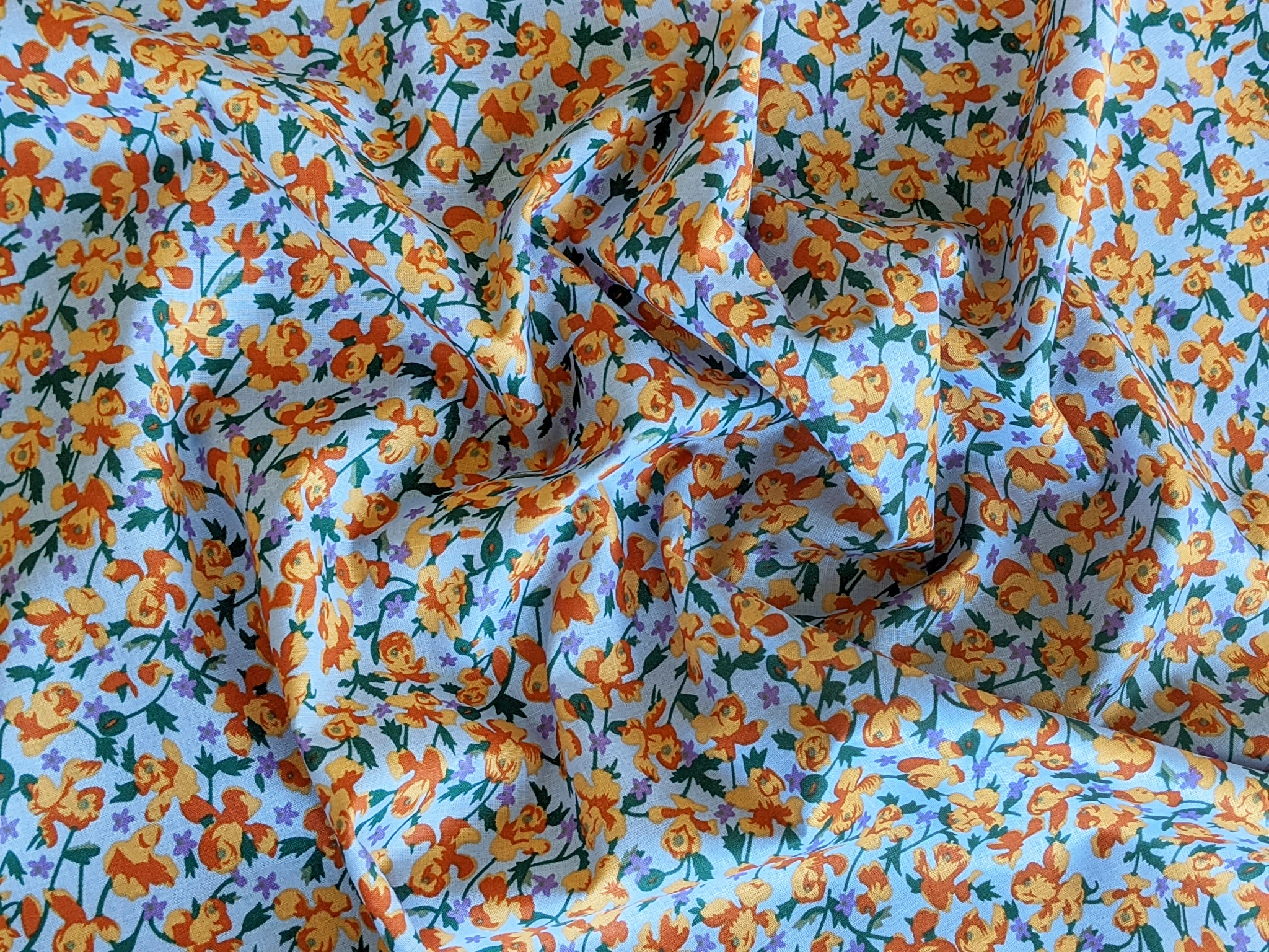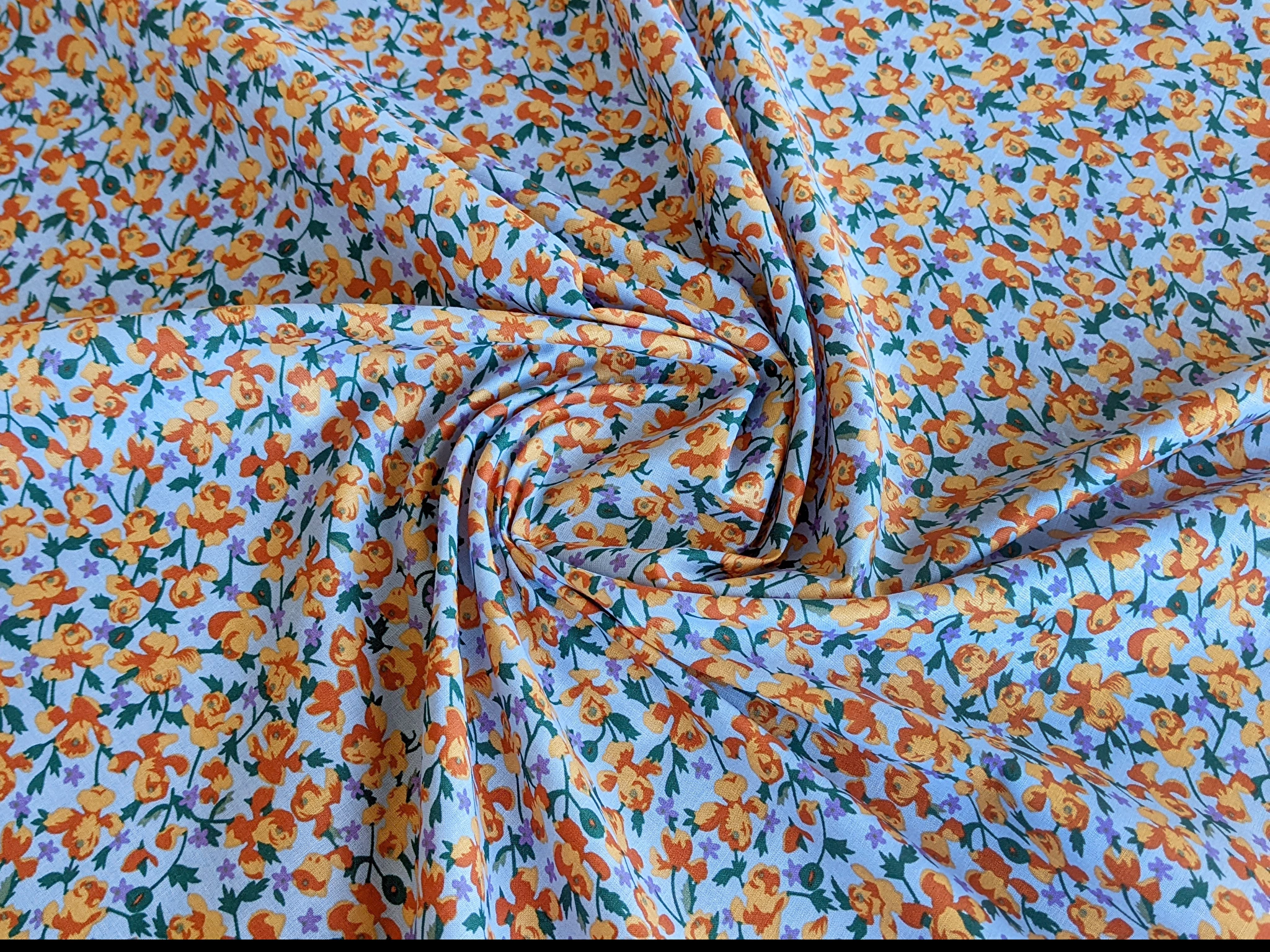 Літній котон з квітковим принтом - це повністю натуральна бавовна, яка дарує почуття комфорту. Тканина приємна до тіла, не парить, добре пропускає повітря і вбирає вологу. Бавовна не тягнеться, легкий, відмінно прасується і дозволяє зберегти потрібну форму.