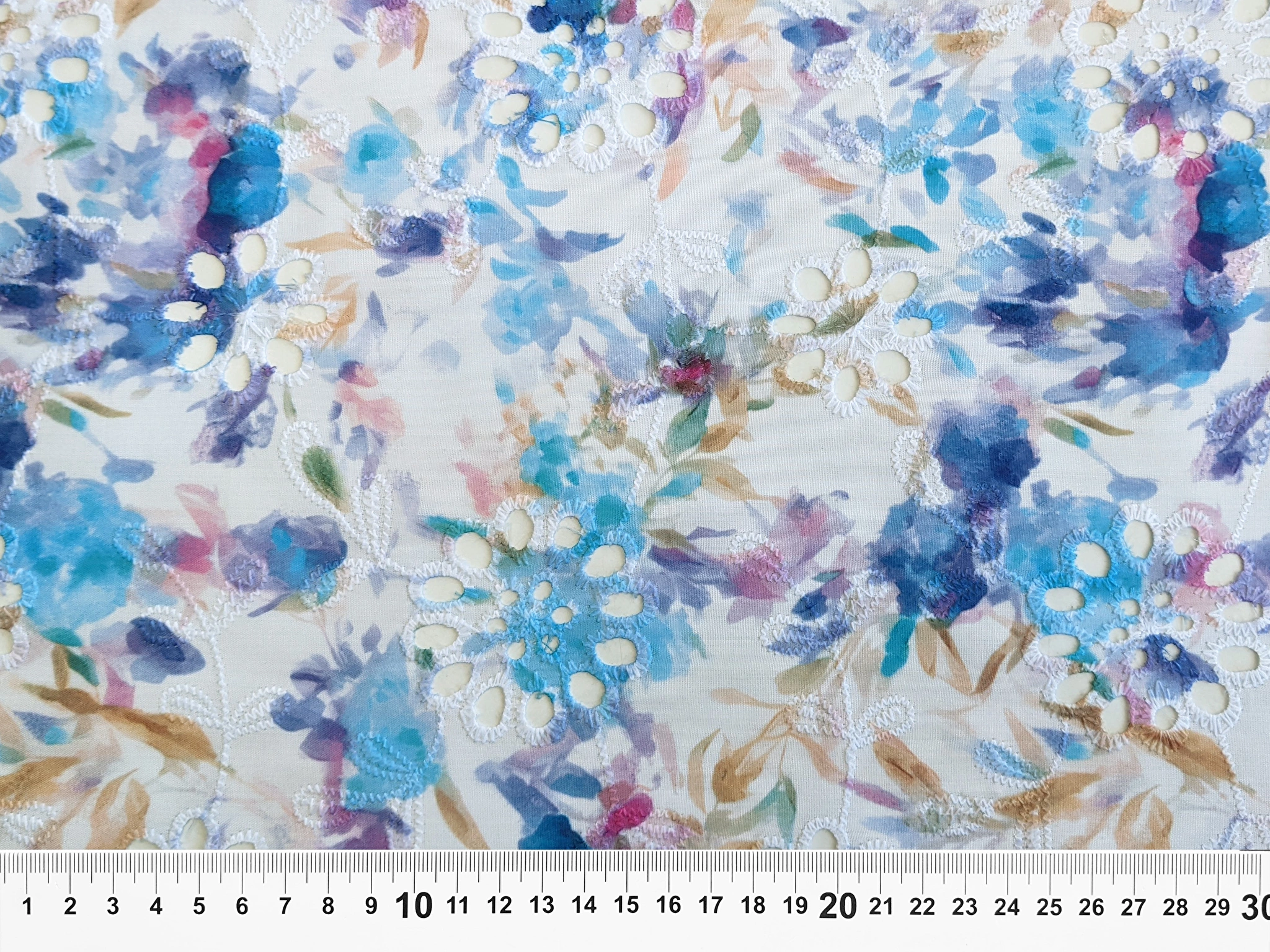 Котон вишивка акварельні бризги, блакитний