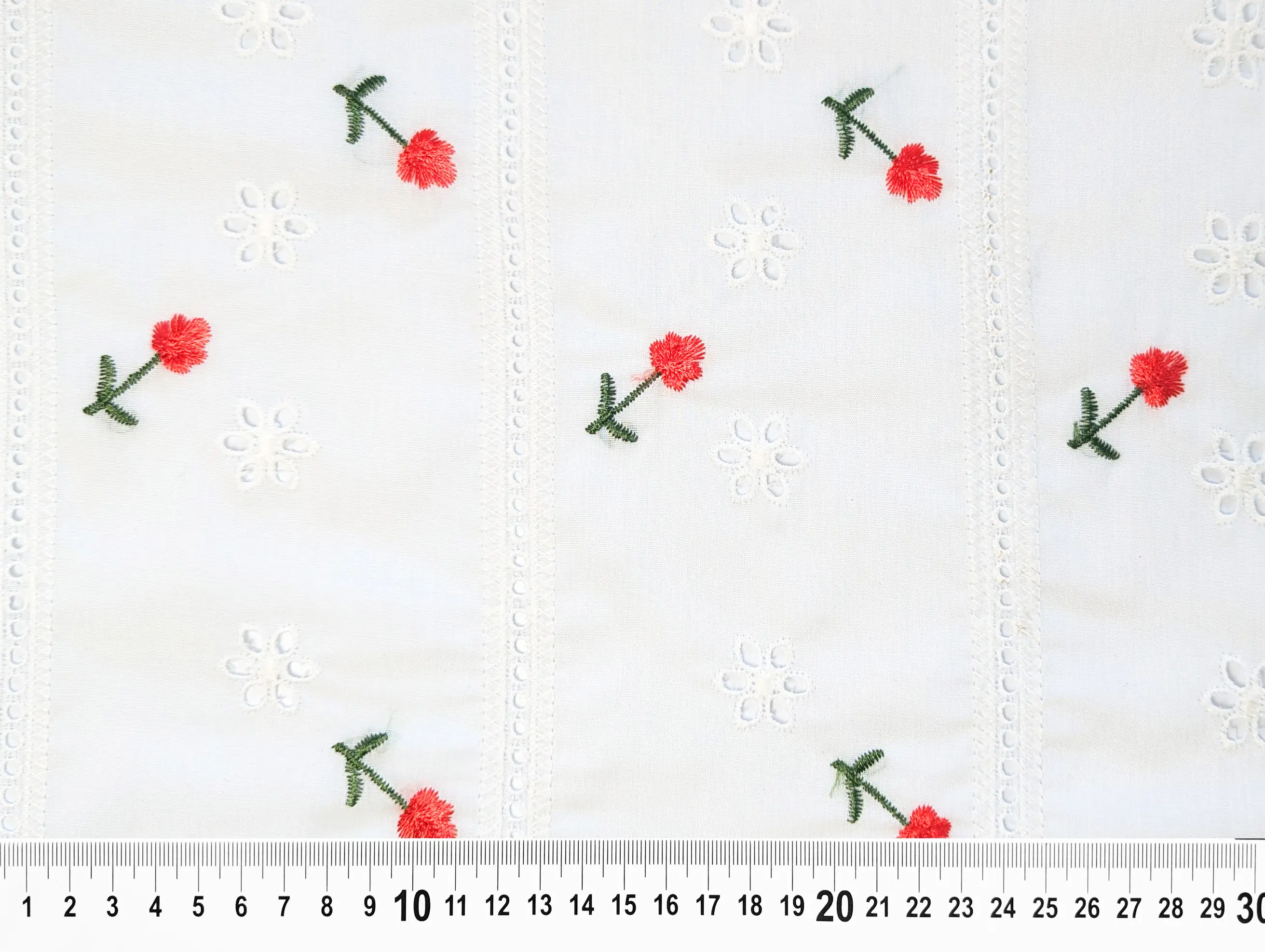 Котон вишивка тюльпанчики, червоні на молочному