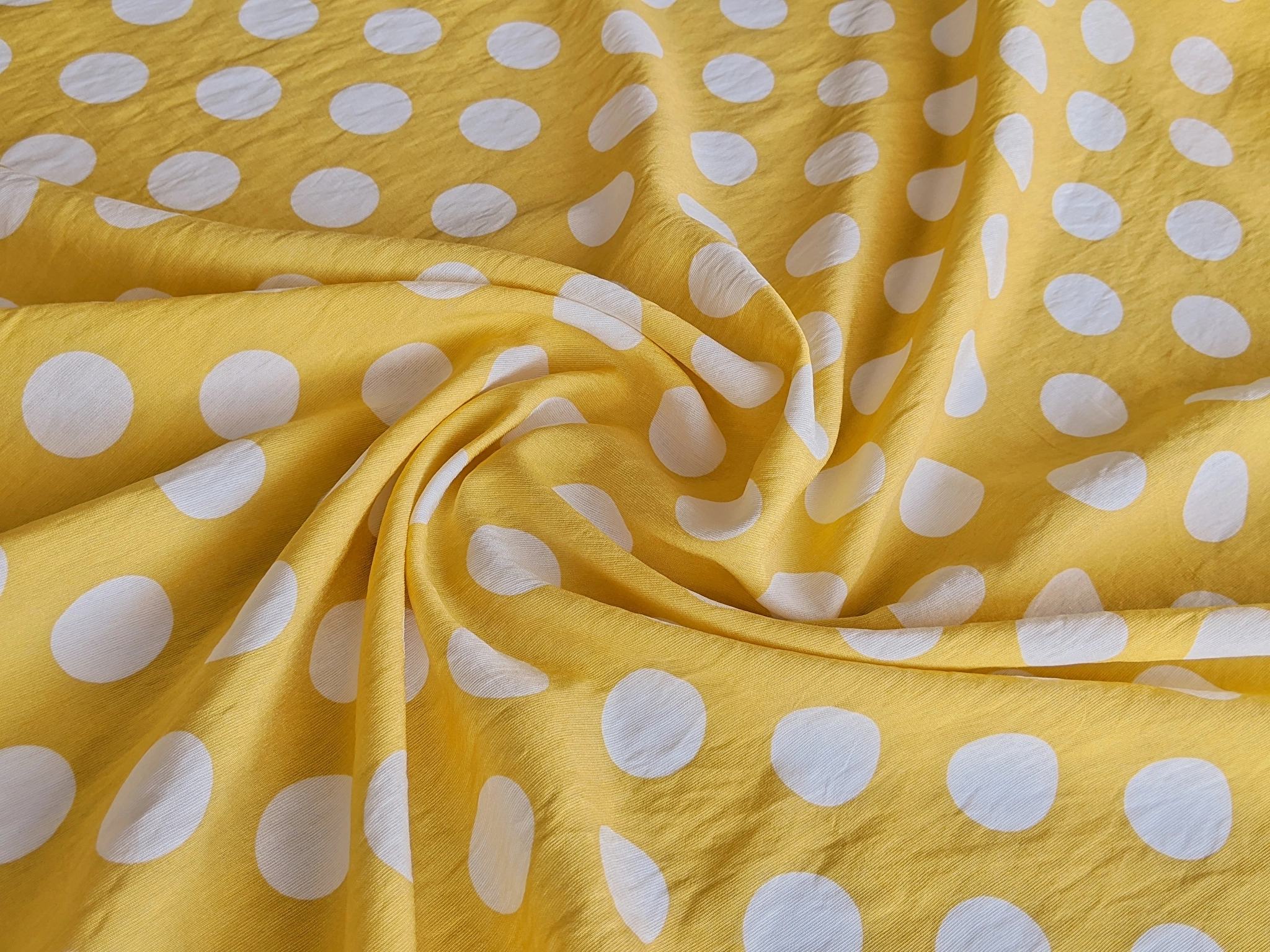Тканина має злегка жату структуру і матову лицьову сторону. Дуже легка, але при цьому не просвічується. Не мнеться. Завдяки нейлону в складі має високу міцність і зносостійкість. Полотно пропускає повітря, вбирає вологу, не електризується. Яскрава колірна гамма дозволить оновити гардероб літнього та весняного сезонів, додавши трохи фарб в ваш стиль.