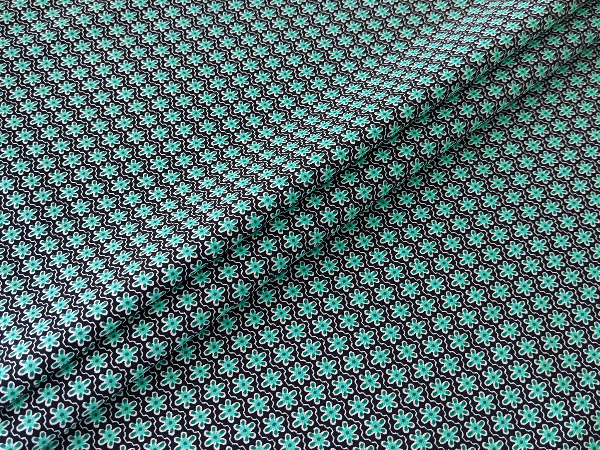 Котон сатин принт маленька квіточка, бірюзовий