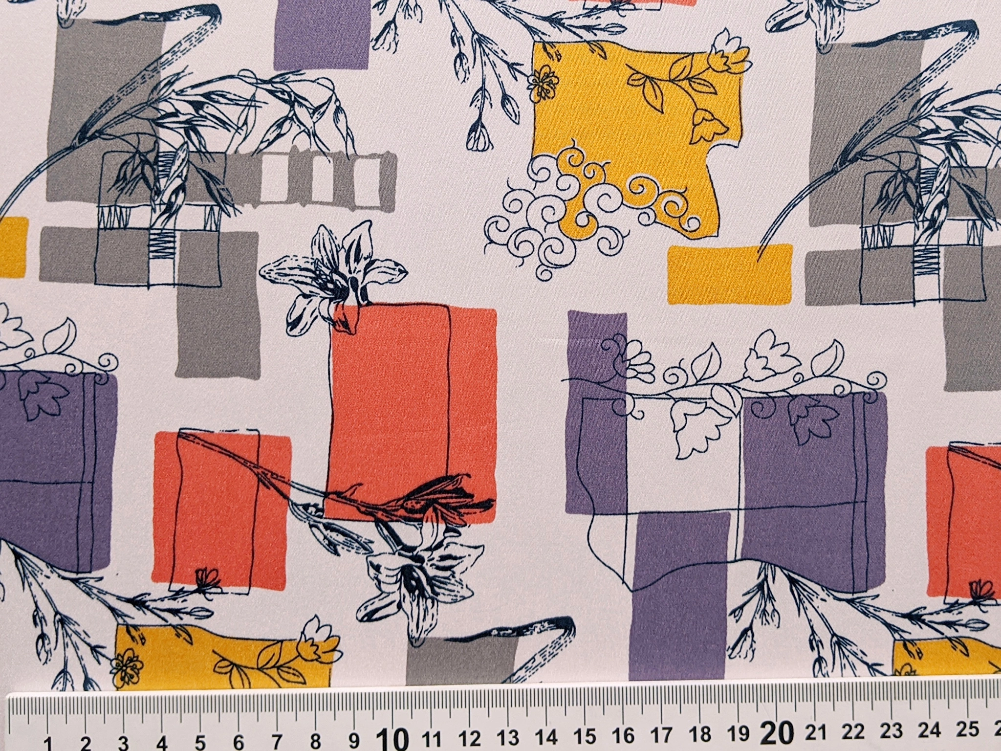 Котон сатин принт мікс орнаментів, сіро-кораловий