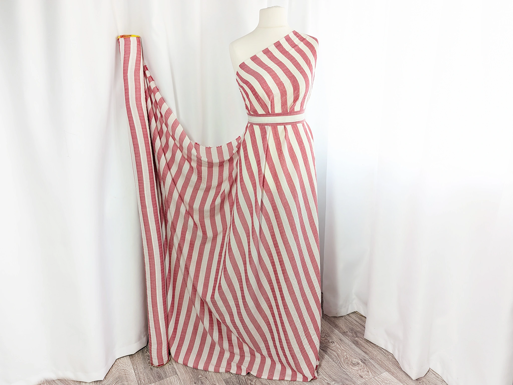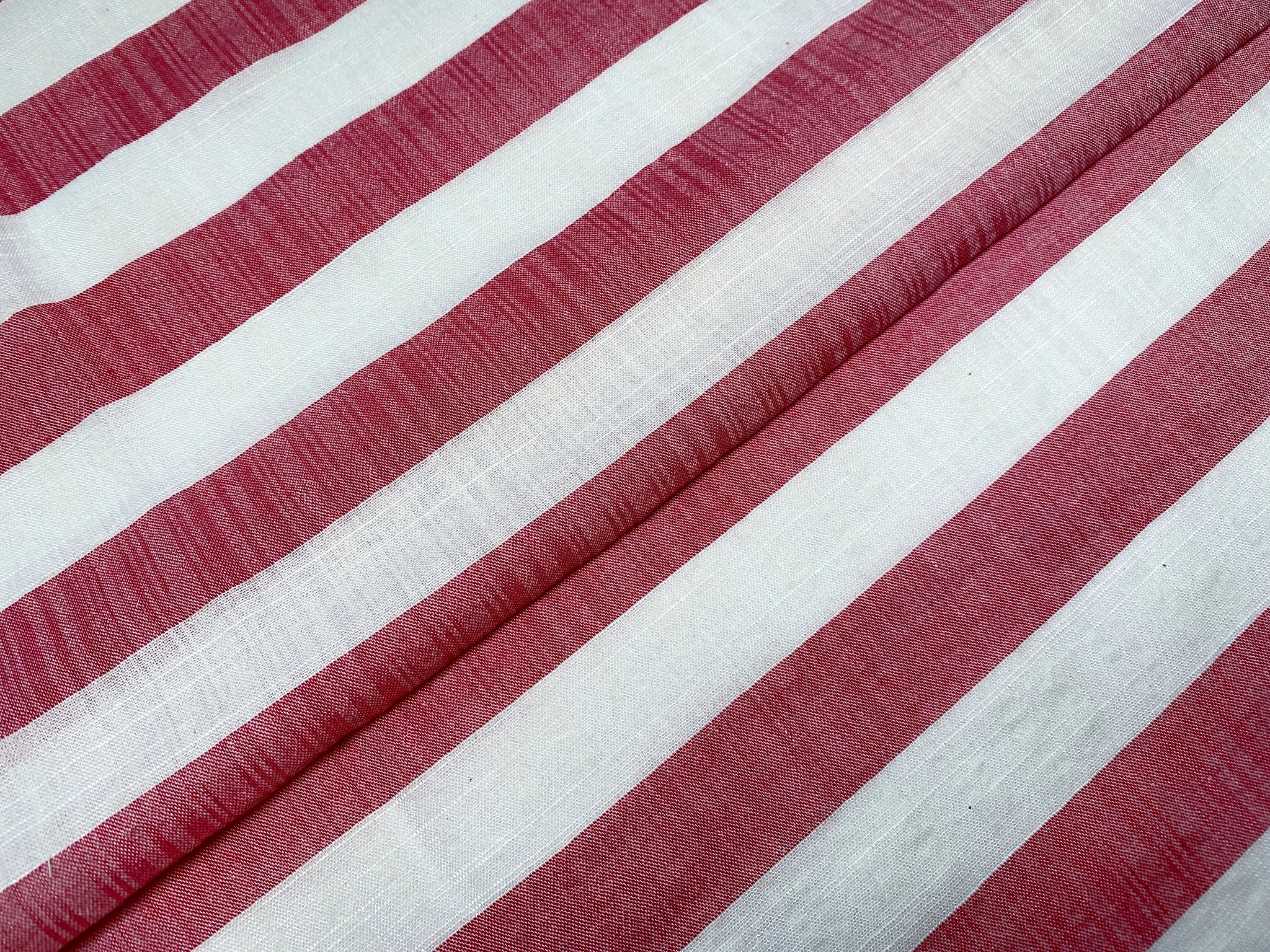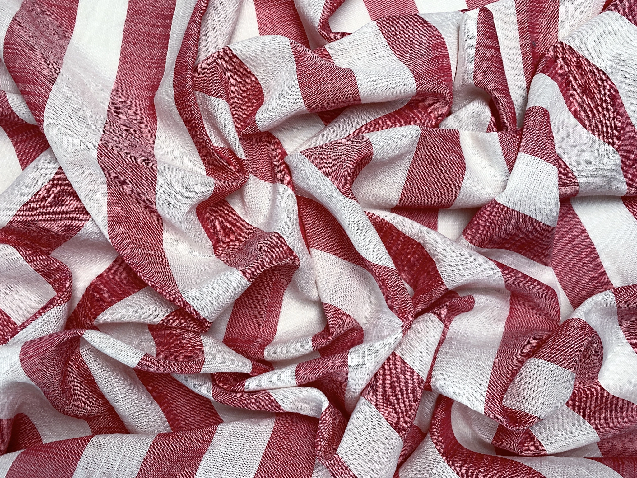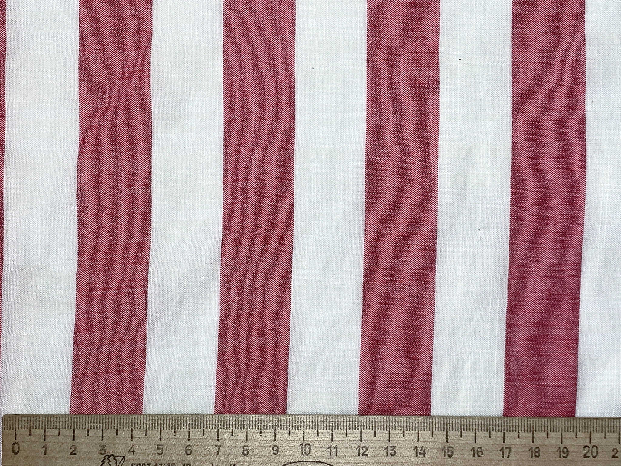 Котон штапель смужка 25 мм, молочний з червоним