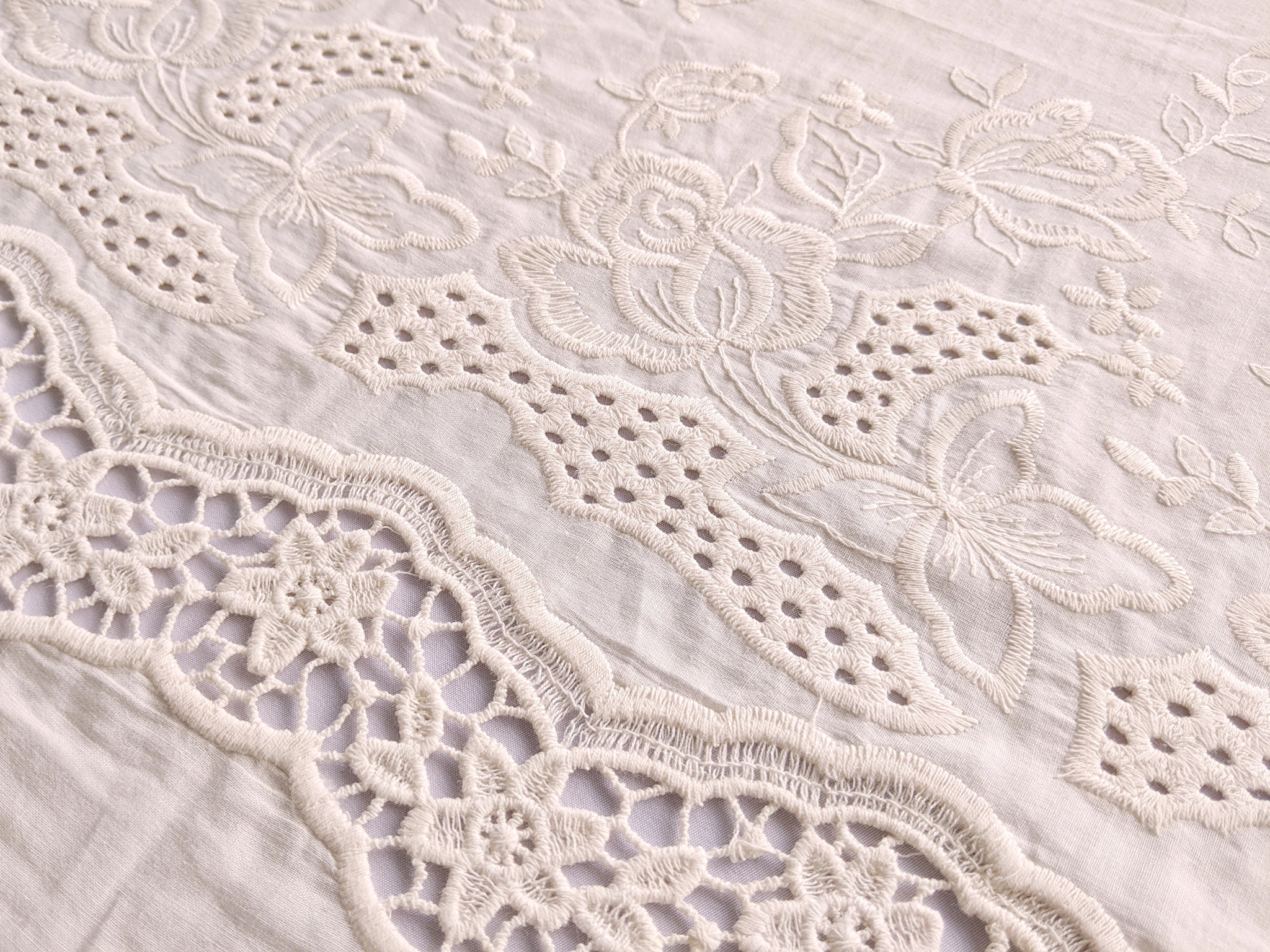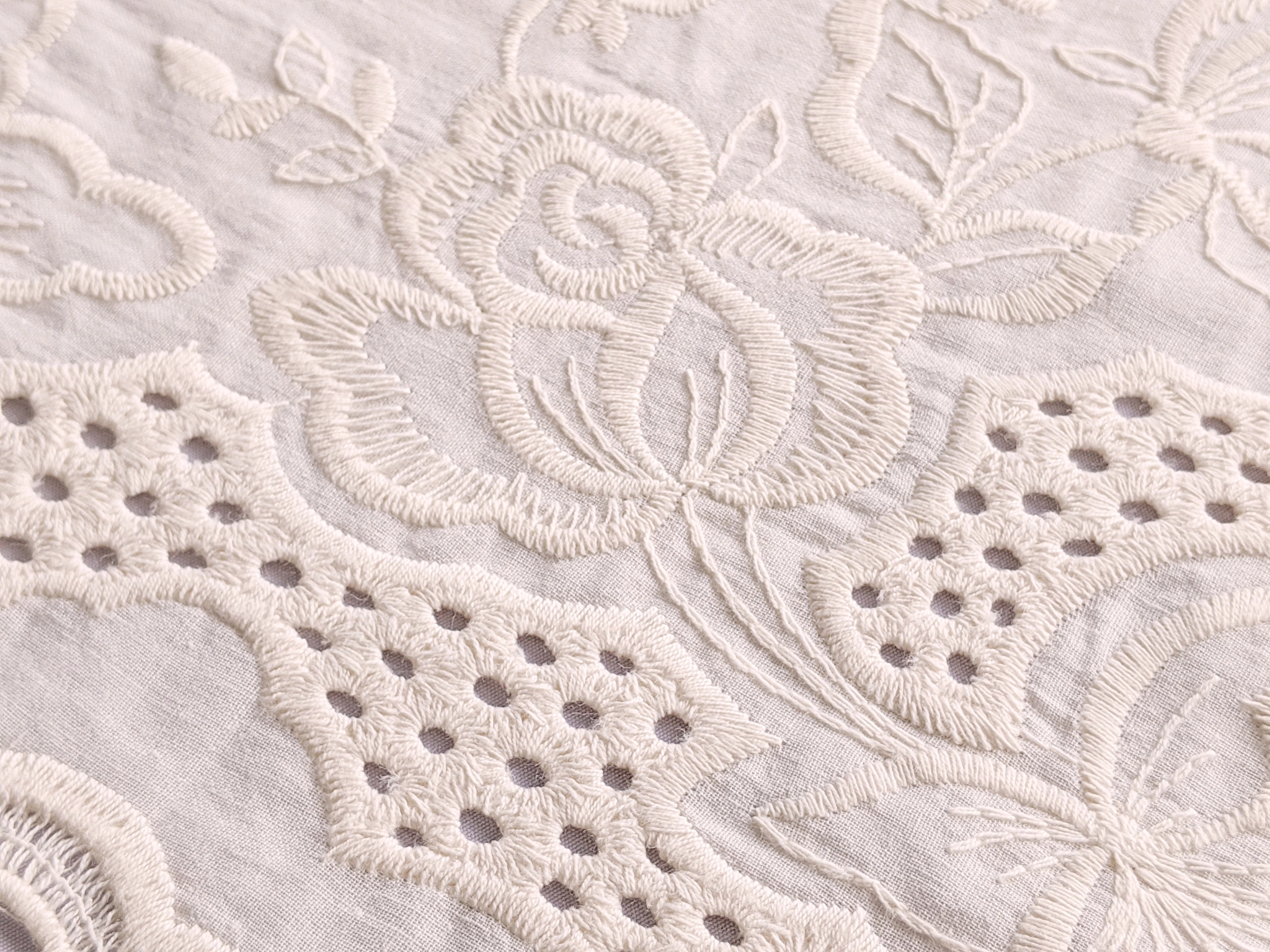Котон вишивка купон ніжні квіти, світлий бежевий