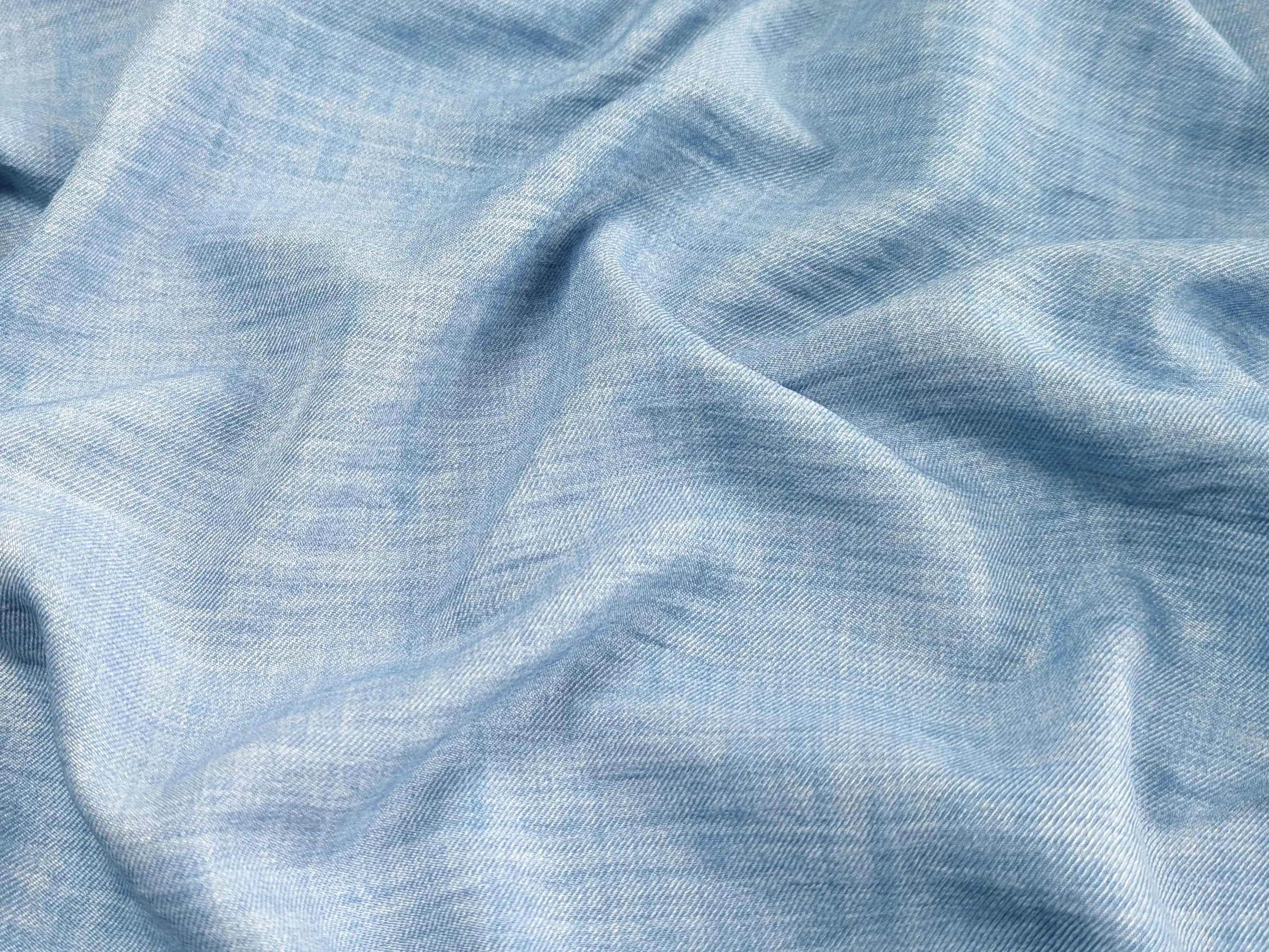Креп Камелія - це легка і комфортна блузочно-платтяна тканина з м'якою, злегка піджатою структурою і меланжевим ефектом. Матеріал добре драпірується і практично не мнеться, носиться комфортно і не вимагає складного догляду. Тканина зносостійка, міцна, не тягнеться, не просвічується.