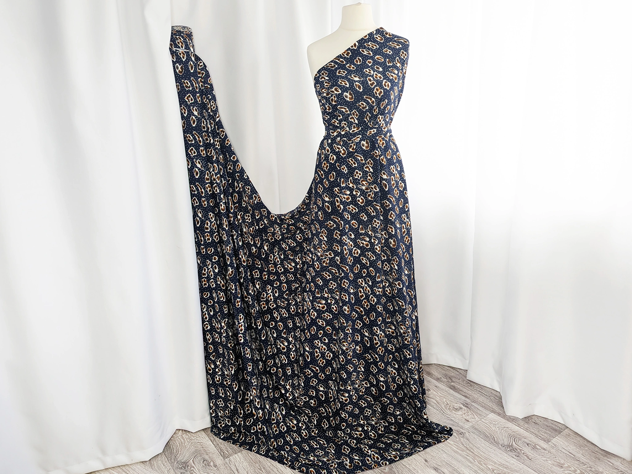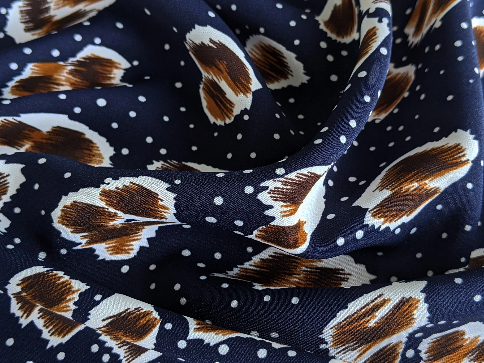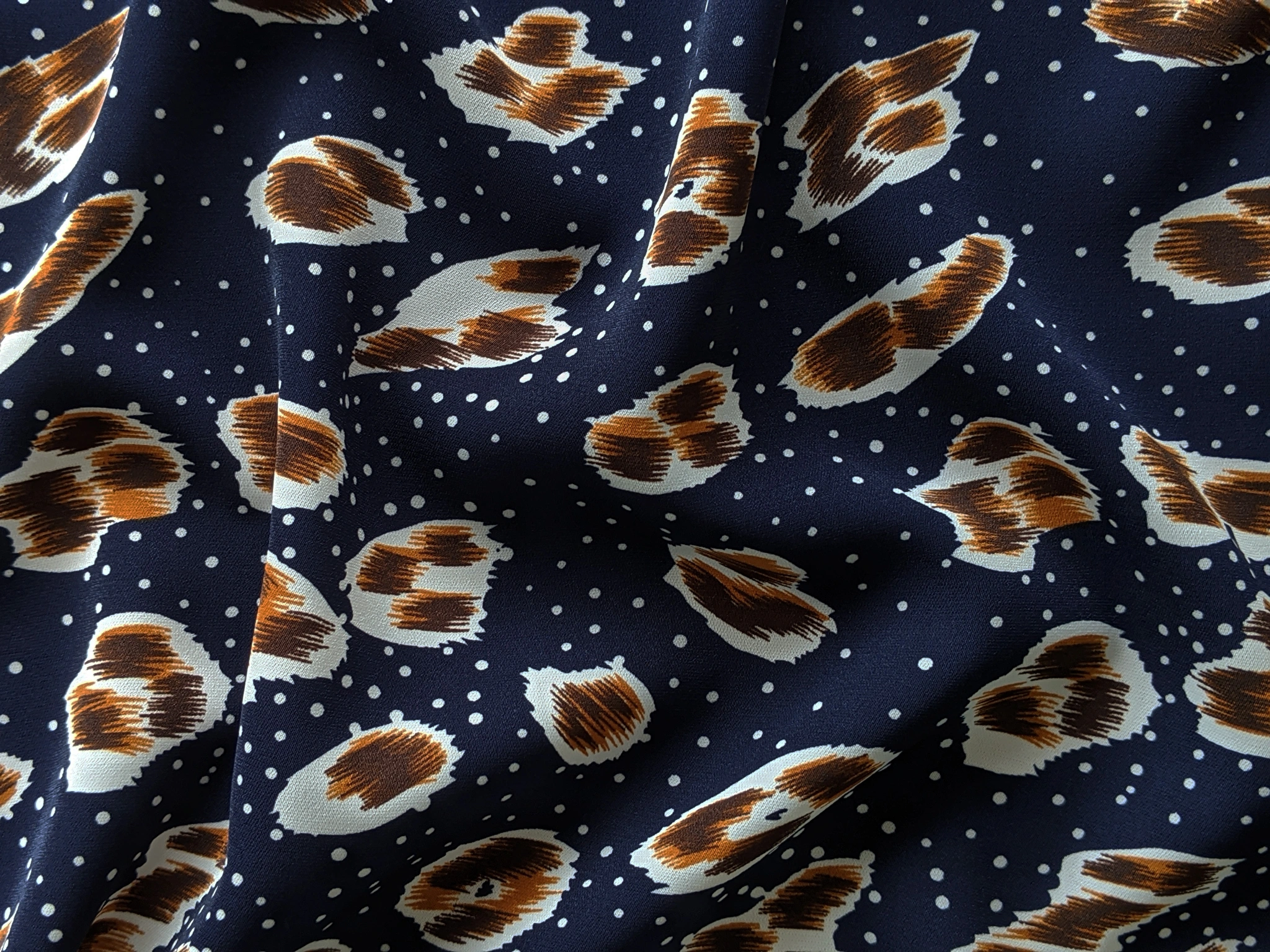 Легка і одночасно щільна тканина для пошиття сукні. Саме так можна характеризувати тканину креп із різноманітними принтами, які чудово підійдуть для пошиття елегантних суконь. Це можуть бути сукні максі та міді для урочистостей. Такі наряди завжди виглядатимуть ефектно. Тканина практично не мнеться, має легкий стрейч по одній стороні. Полотно не світиться, як зазначено вище, таким чином вироби не потребують підкладку. Вироби з креповой тканини дуже комфортні і приємні до тіла.
