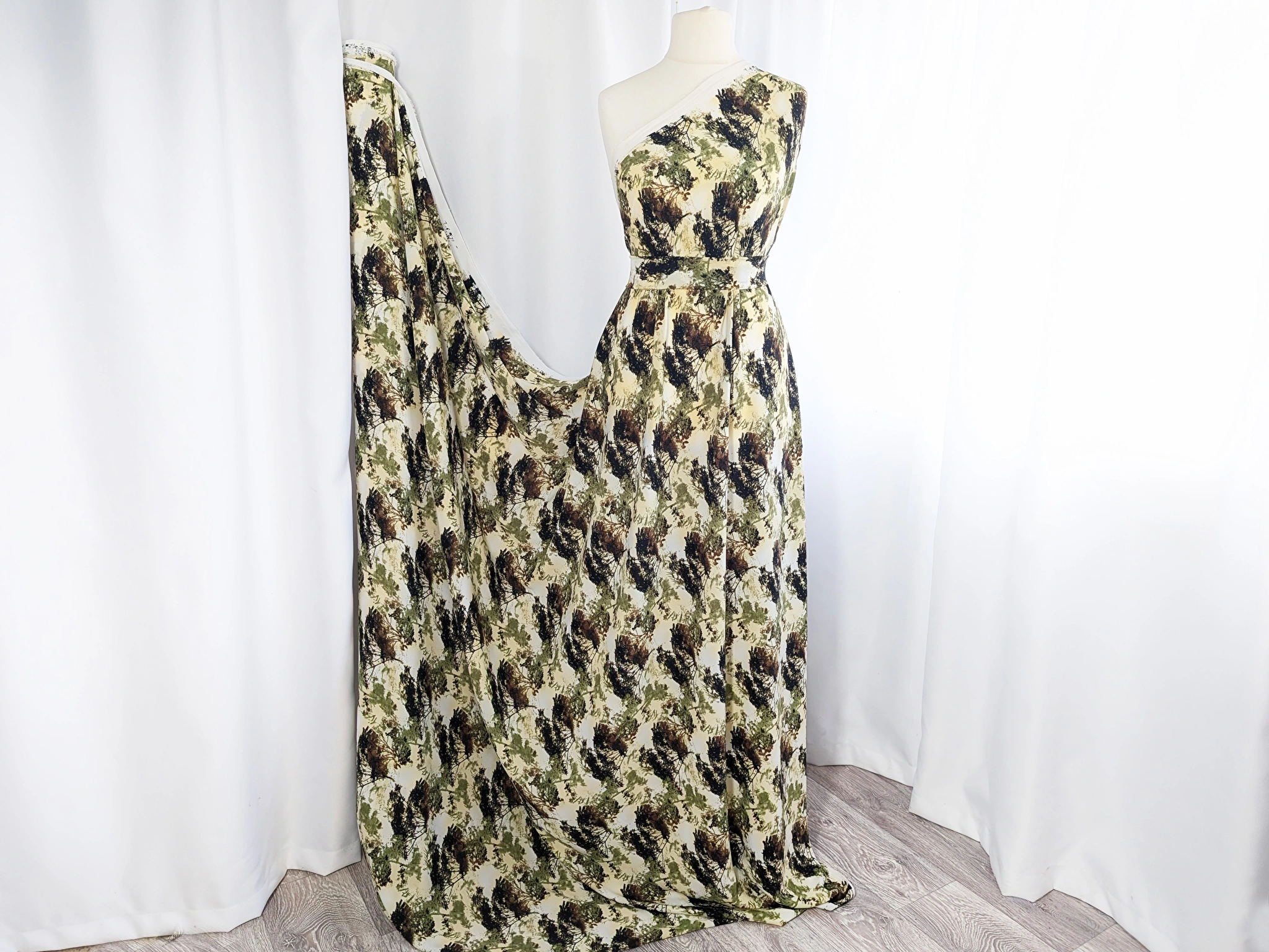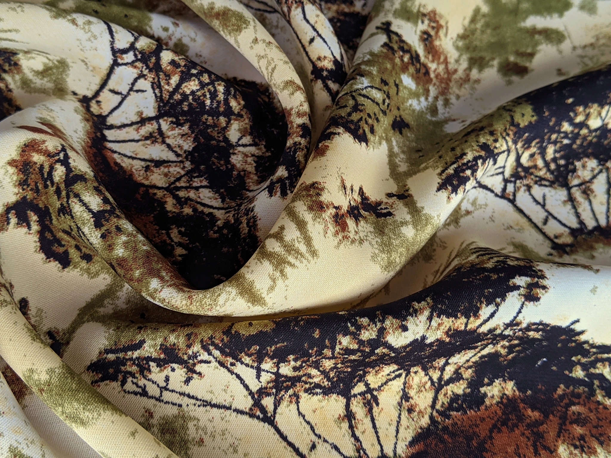 Легка і одночасно щільна тканина для пошиття сукні. Саме так можна характеризувати тканину креп із різноманітними принтами, які чудово підійдуть для пошиття елегантних суконь. Це можуть бути сукні максі та міді для урочистостей. Такі наряди завжди виглядатимуть ефектно. Тканина практично не мнеться, має легкий стрейч по одній стороні. Полотно не світиться, як зазначено вище, таким чином вироби не потребують підкладку. Вироби з креповой тканини дуже комфортні і приємні до тіла.