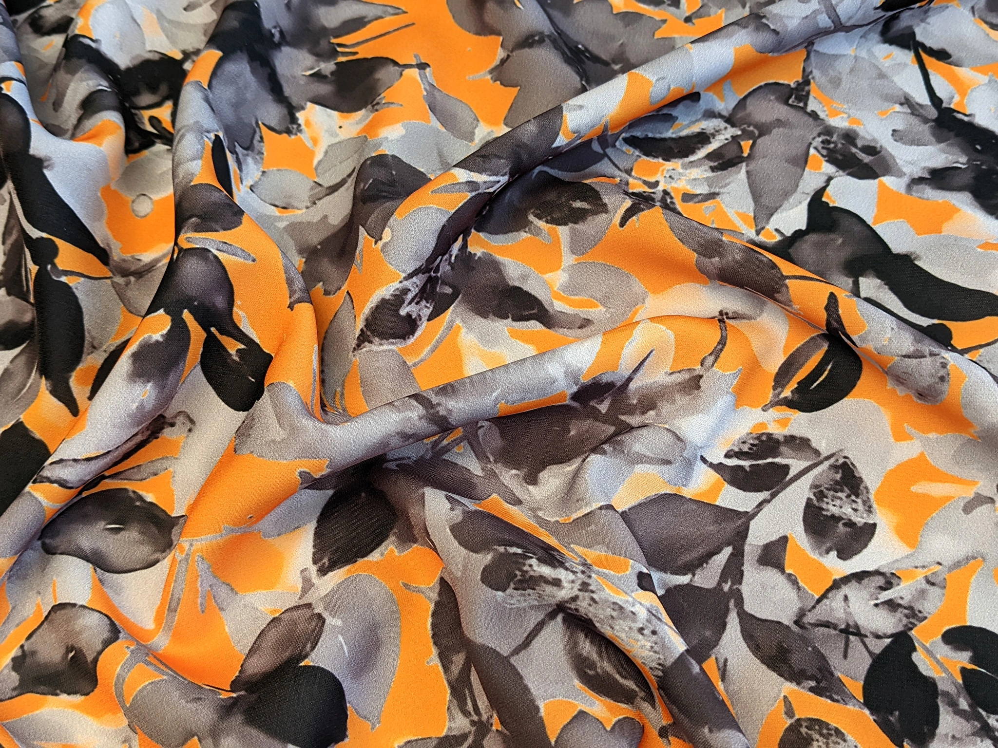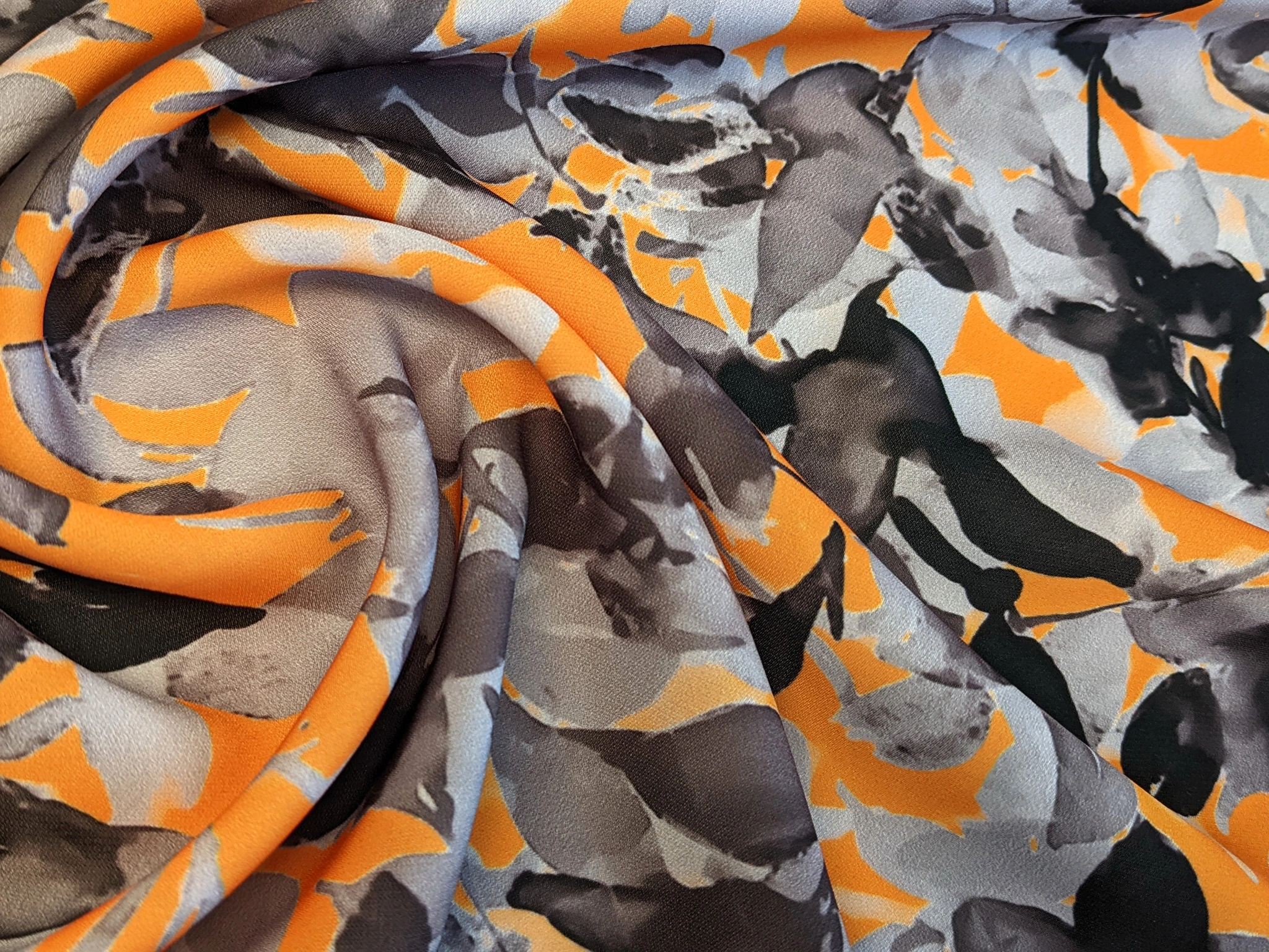 Креп шовк - тонка тканина крепового плетіння з матовою, шовковистою поверхнею. Матеріал не мнеться, легко відновлюється у вихідну форму, пружний, міцний, непрозорий на тілі, ковзний, легка еластичність присутня в обидві сторони полотна. Візуально - фактура тканини має ледь помітну зернистість, тактильно - гладка, м'яка, приємна на дотик. Тканина добре виглядає у драпіруванні.