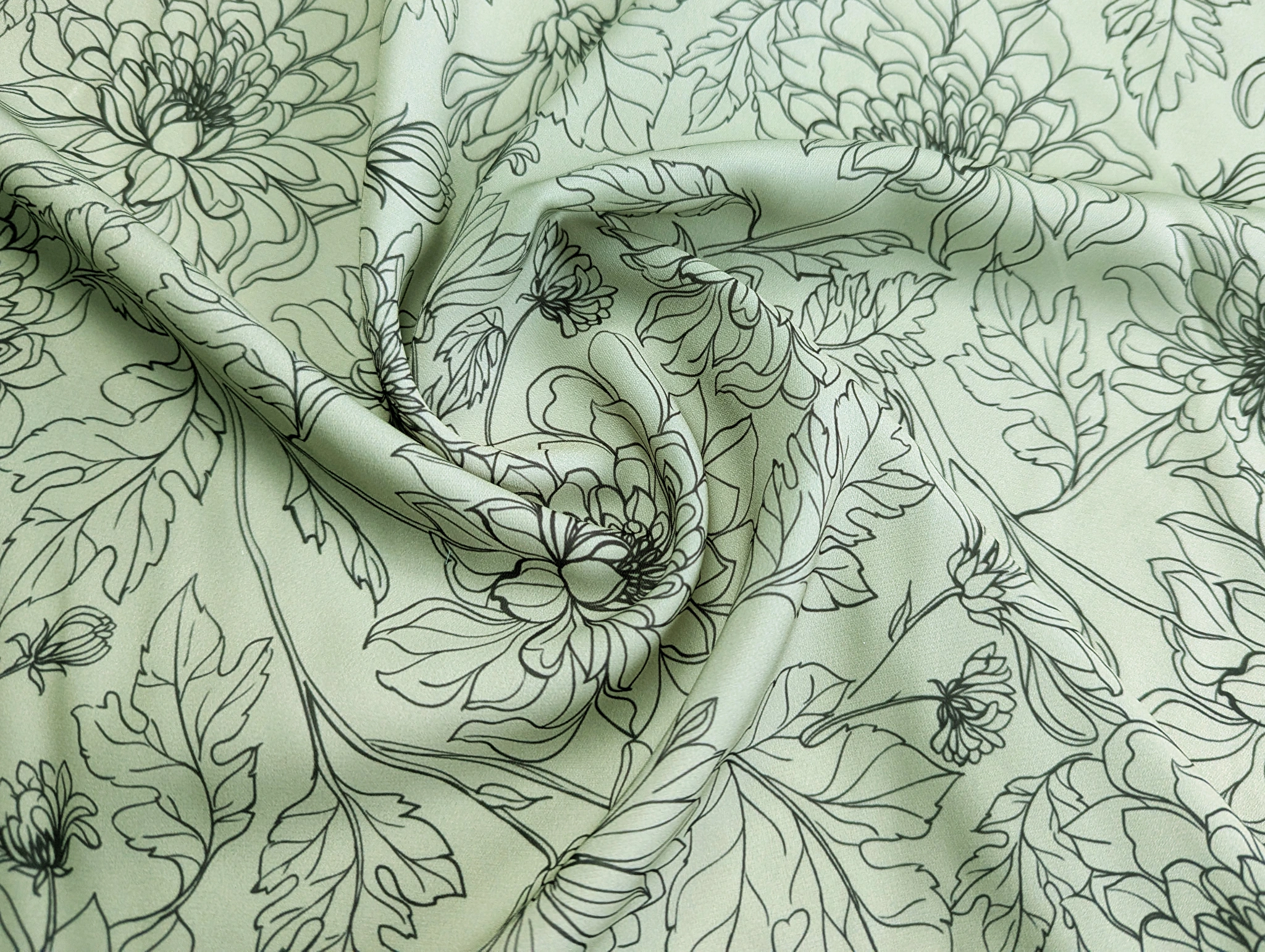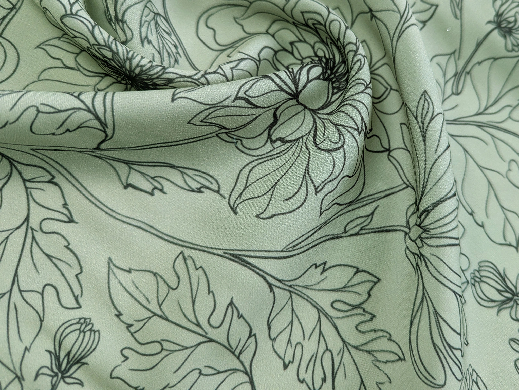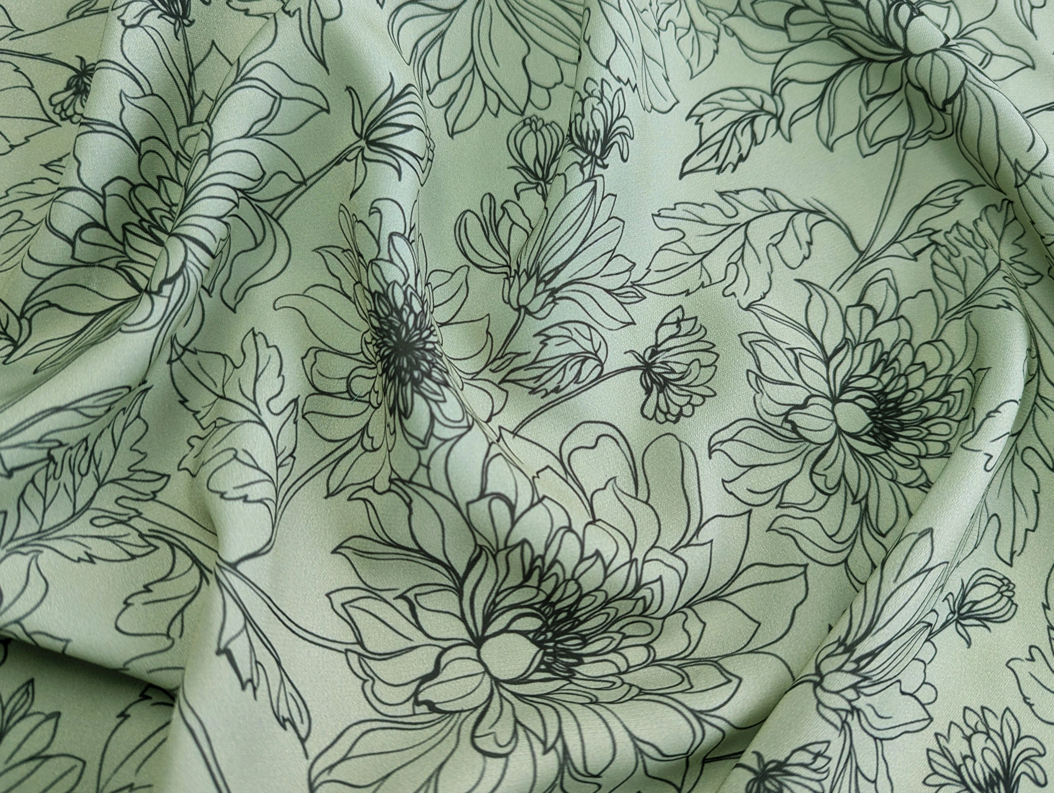 Креп шовк квіткові силуети, коричневий на оливковому