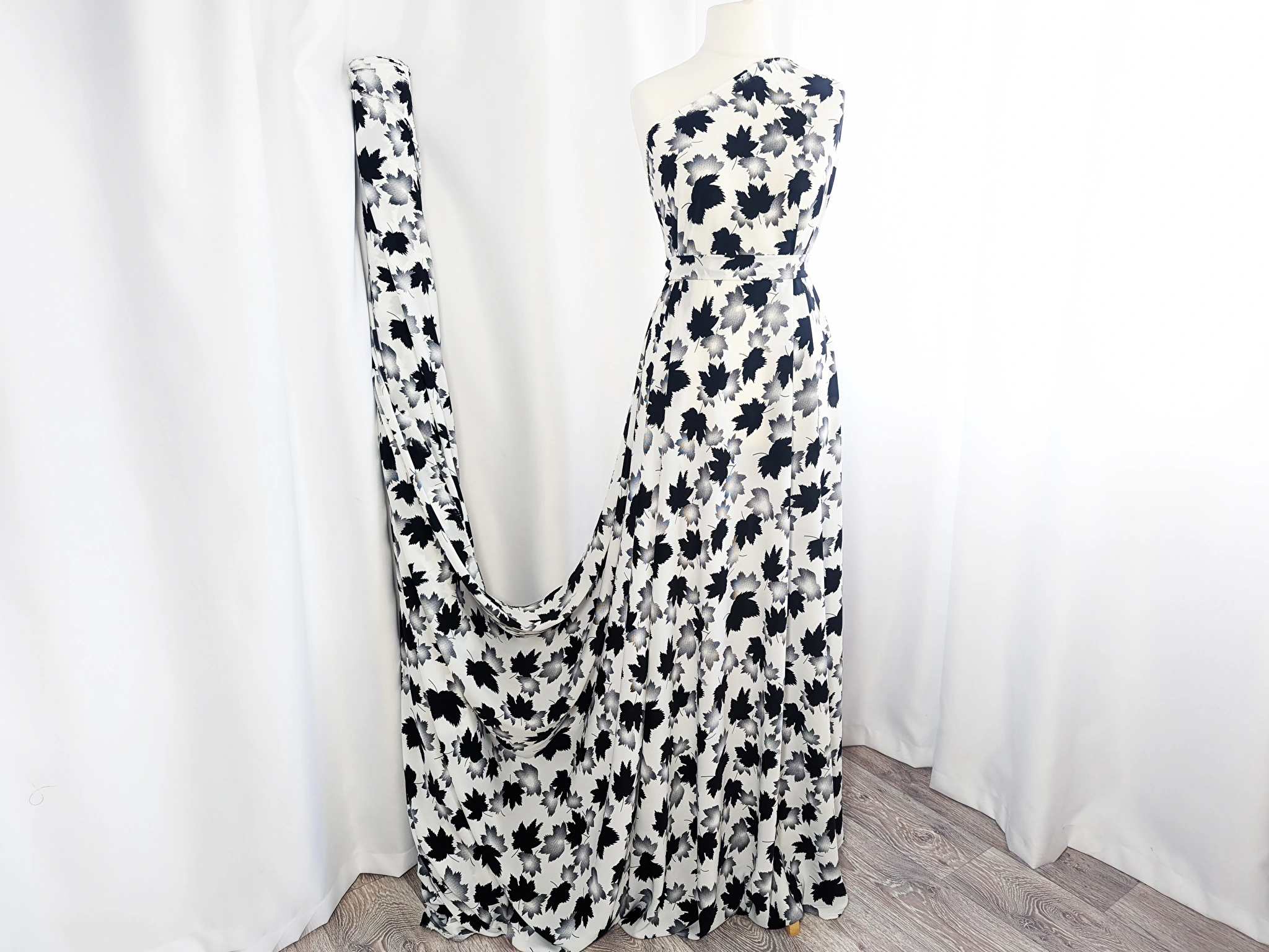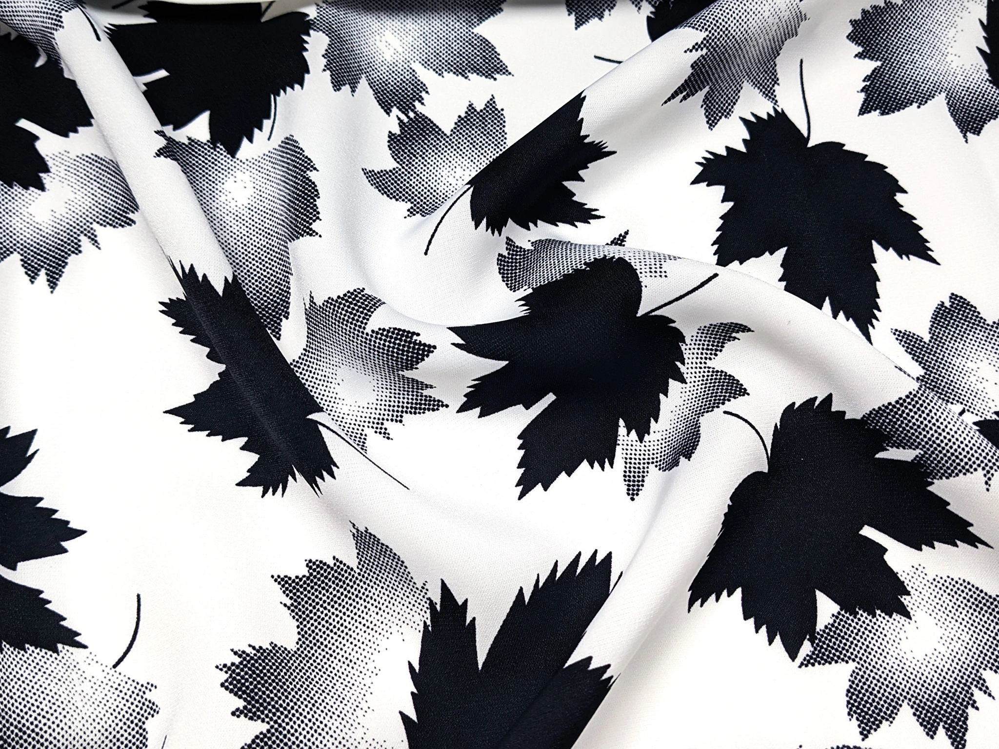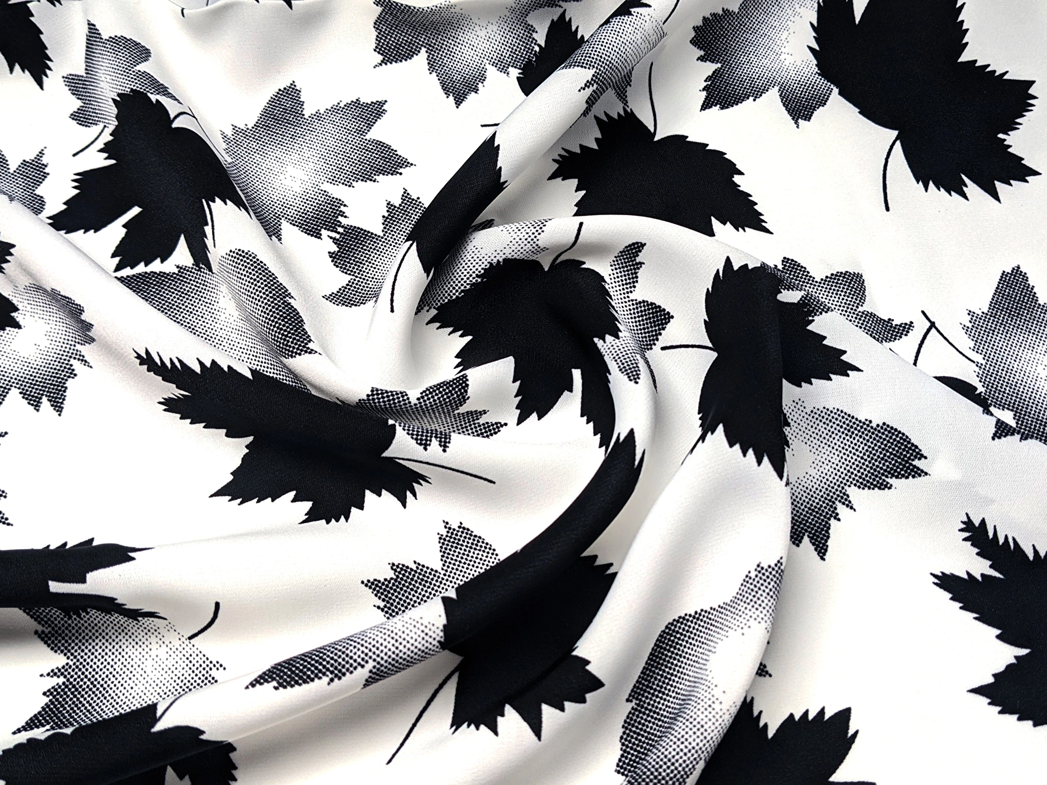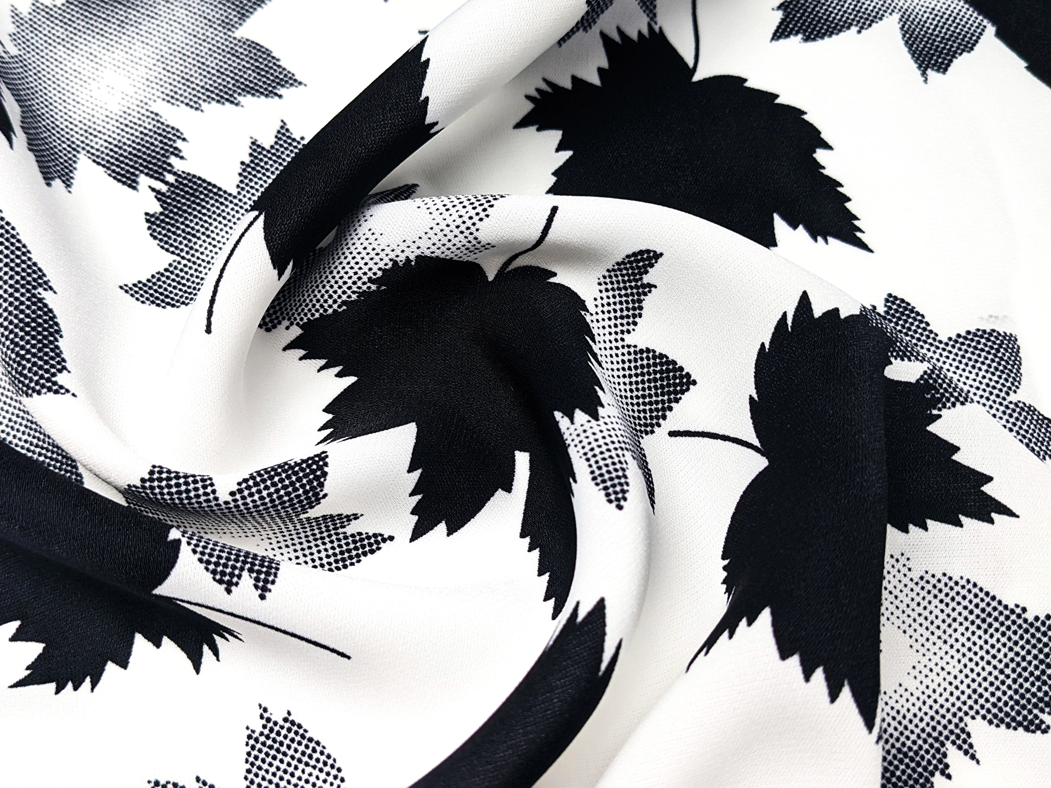 Креп шовк листяний дует, молочний з чорним