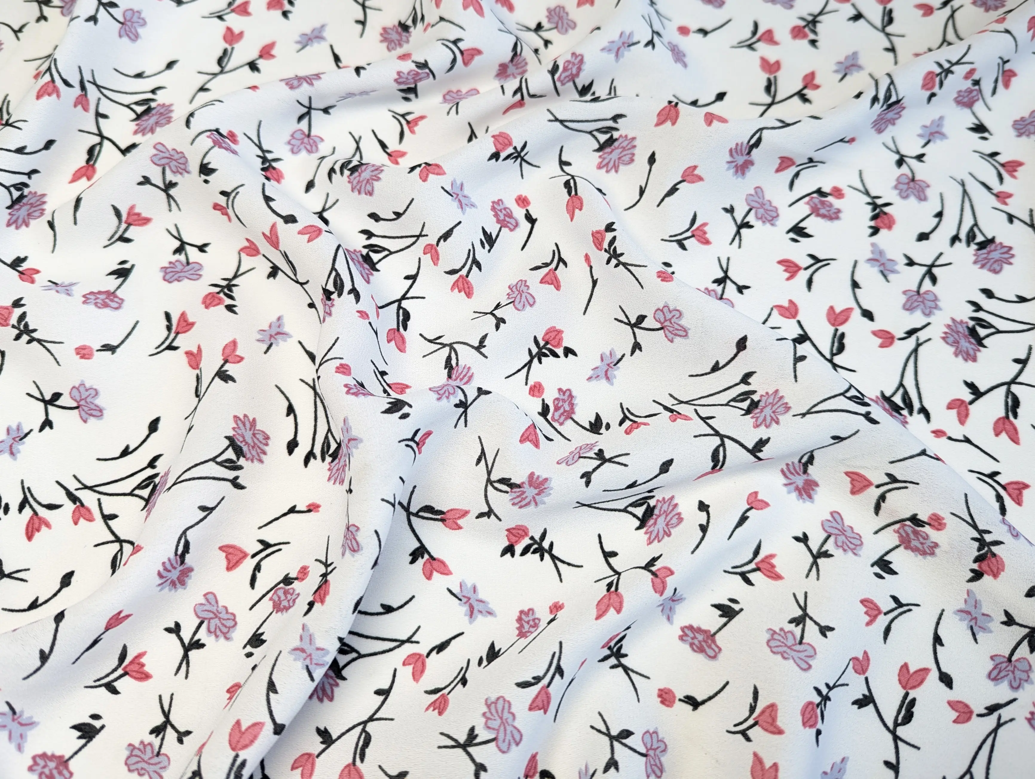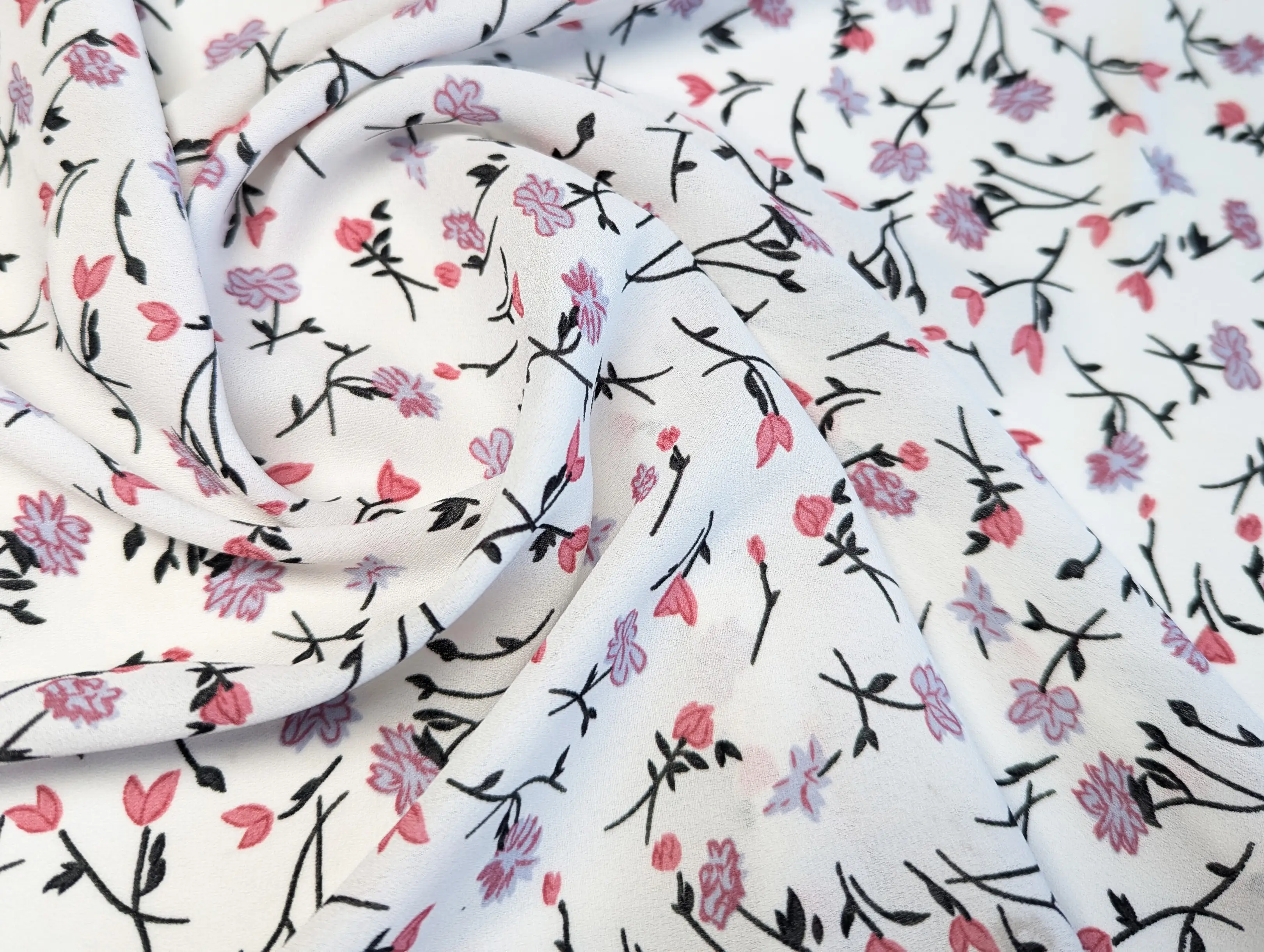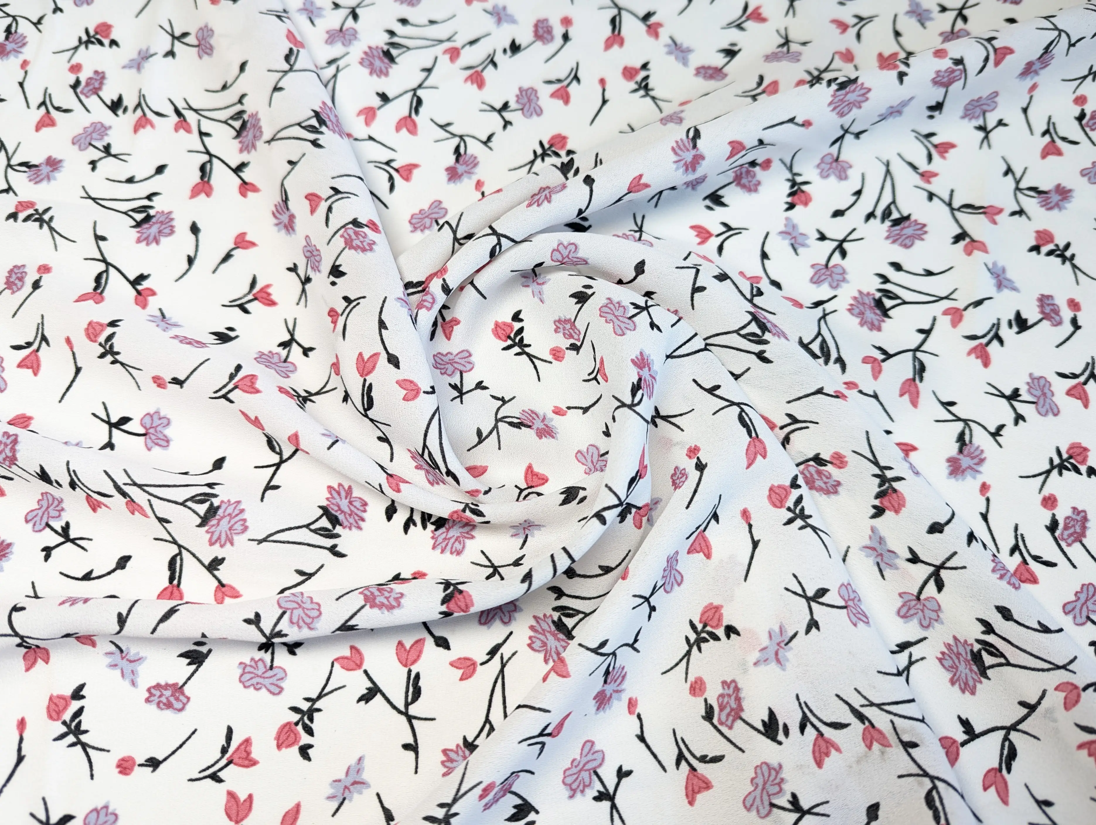 Креп шифон квітковий розсип, молочний (відріз 1,5 м)