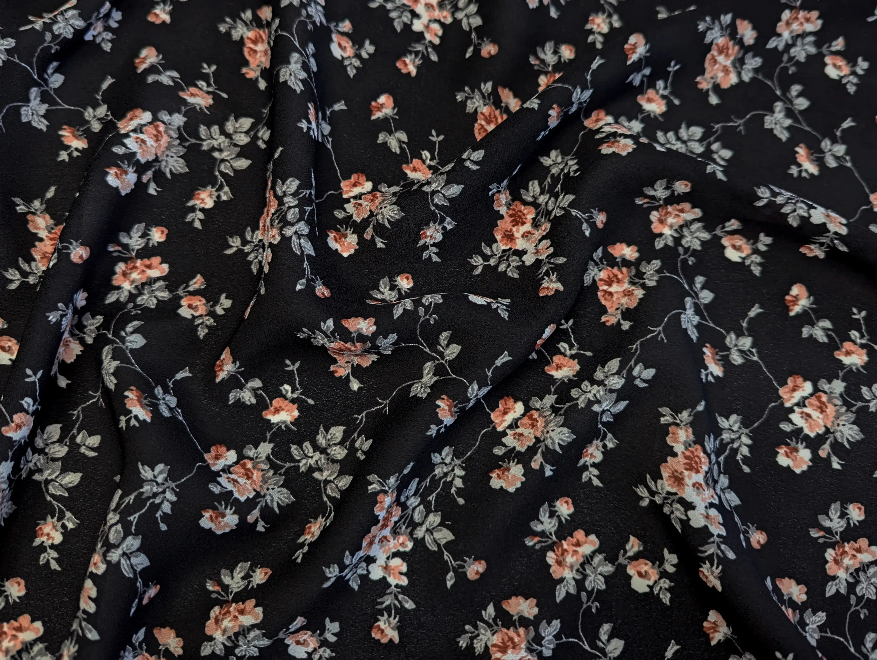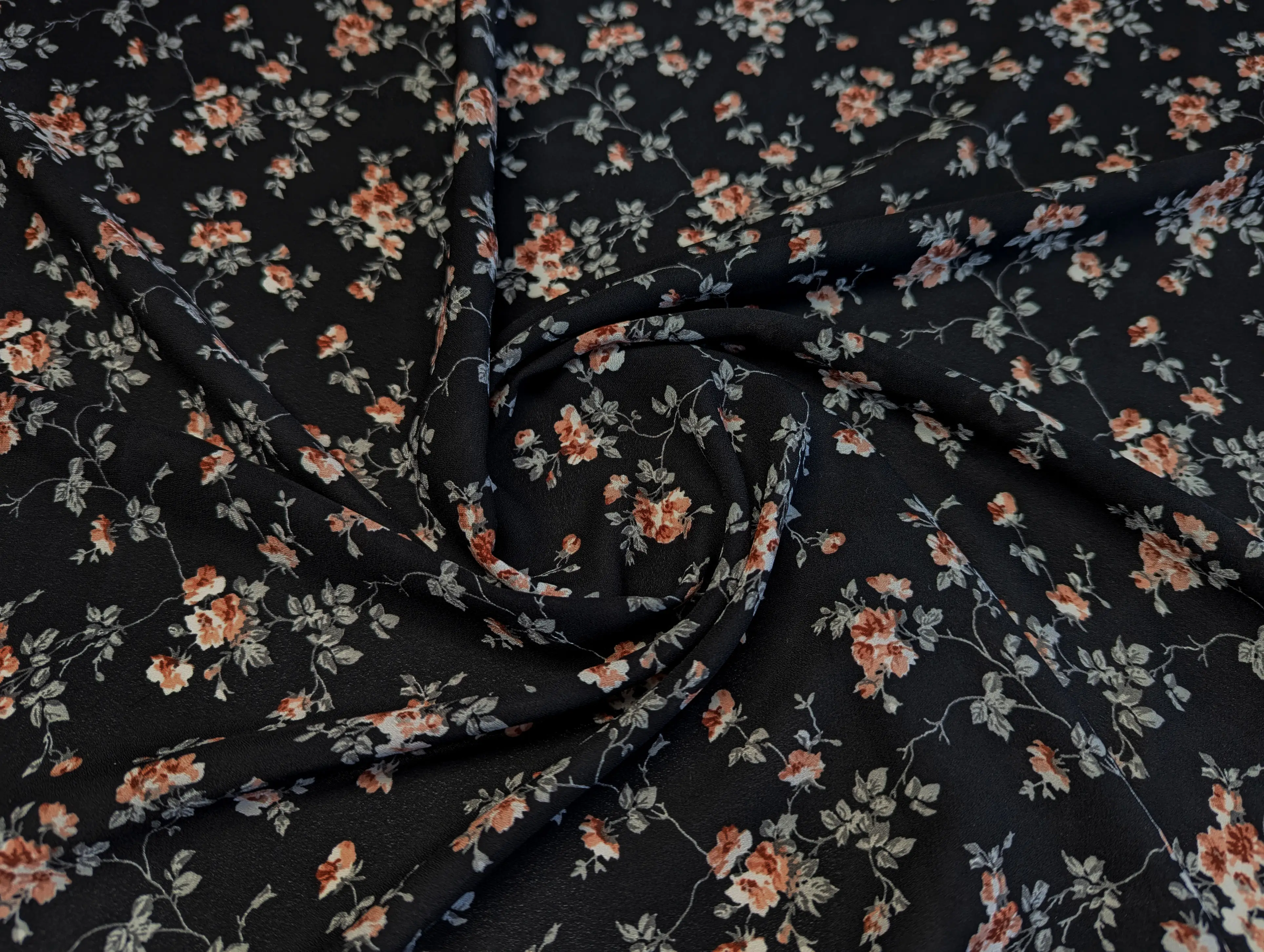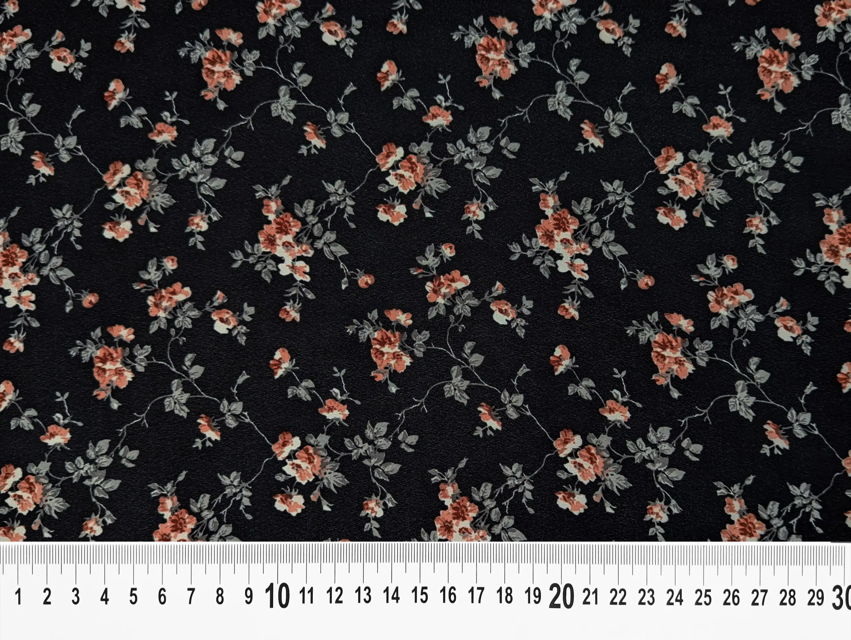 Креп шифон квіточки на гілочці, чорний (відріз 1,5 м)
