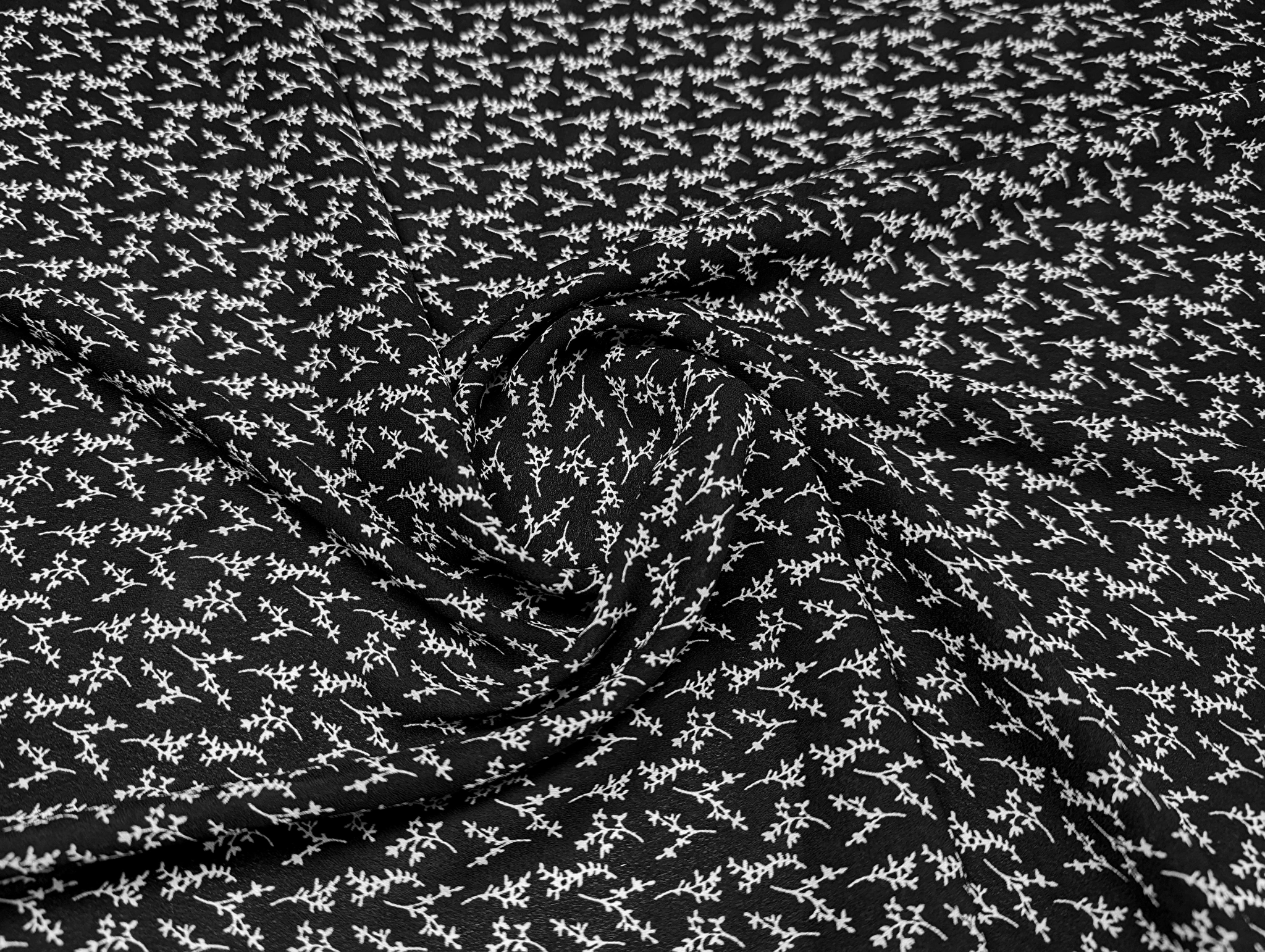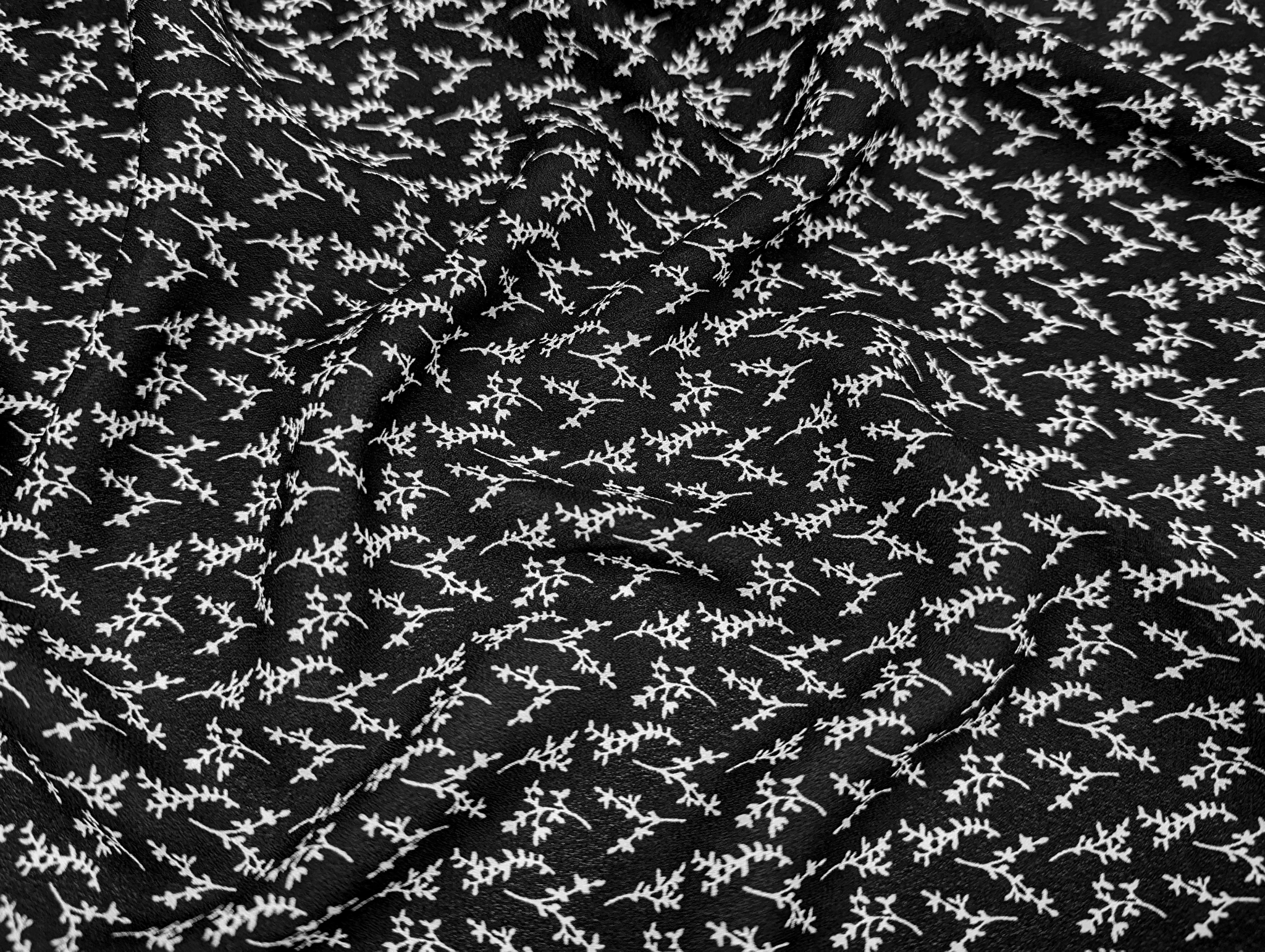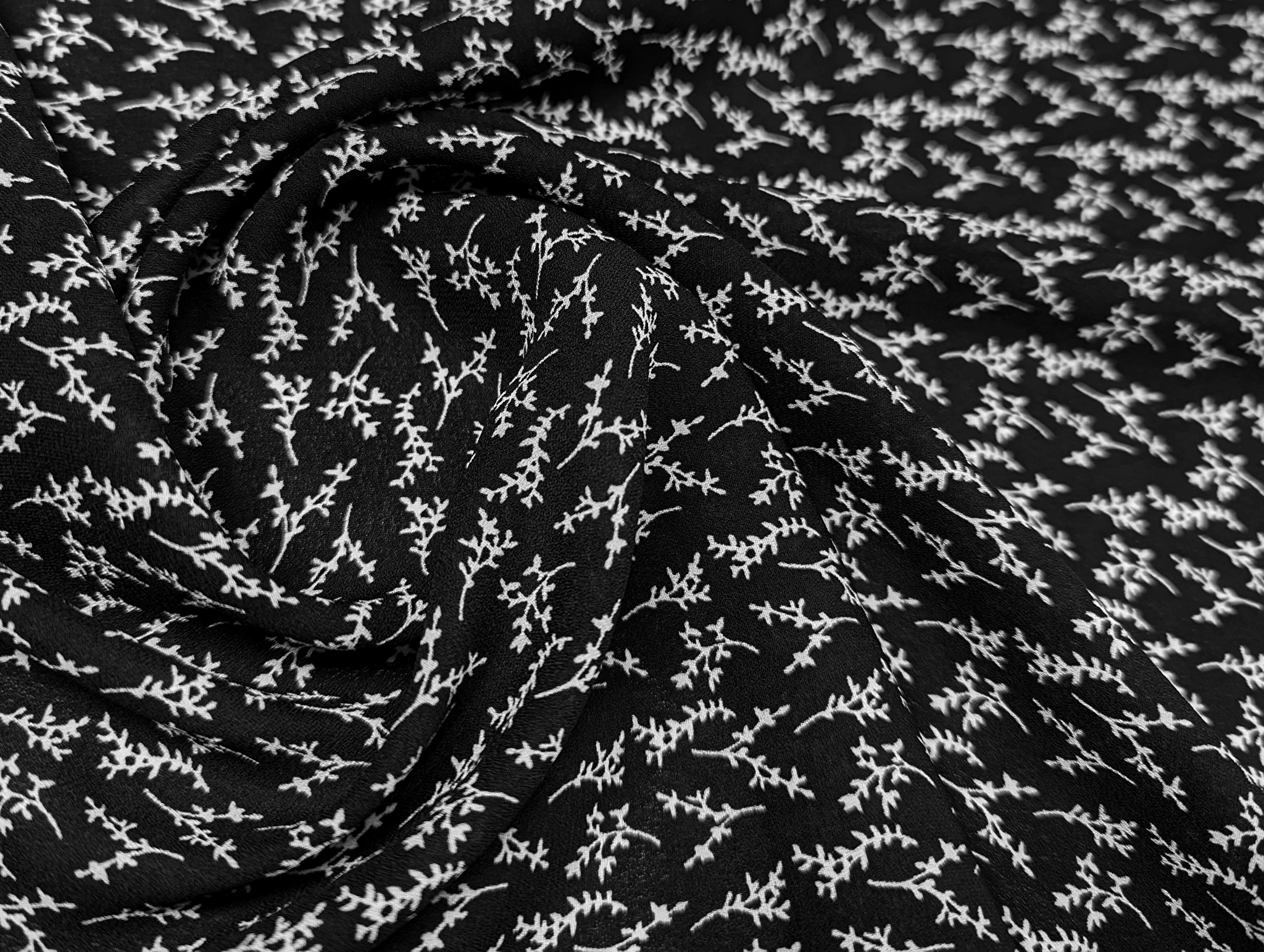 Код: к145, 2409113A, д7, к2Принтований креп-шифон - це напівпрозора, легка тканина з гарною повітропроникністю. Тканина легка й струмлива, гарно драпірується та не мнеться. На дотик трохи шорстка. Прати та прасувати вироби з крепу-шифону варто з обережністю, вибираючи делікатні режими. Полотно дуже міцне та зносостійке завдяки технології виготовлення тканини методом туго скручених ниток. Для пошиття суконь рекомендуємо враховувати ступінь прозорості тканини, особливо у світлих відтінках, й придбати легку тканину для підкладки.