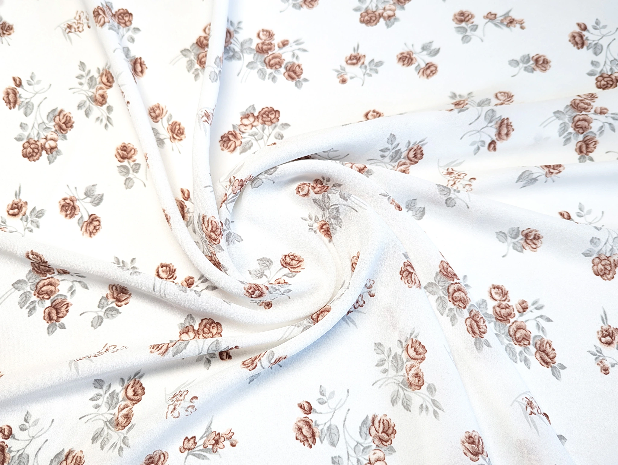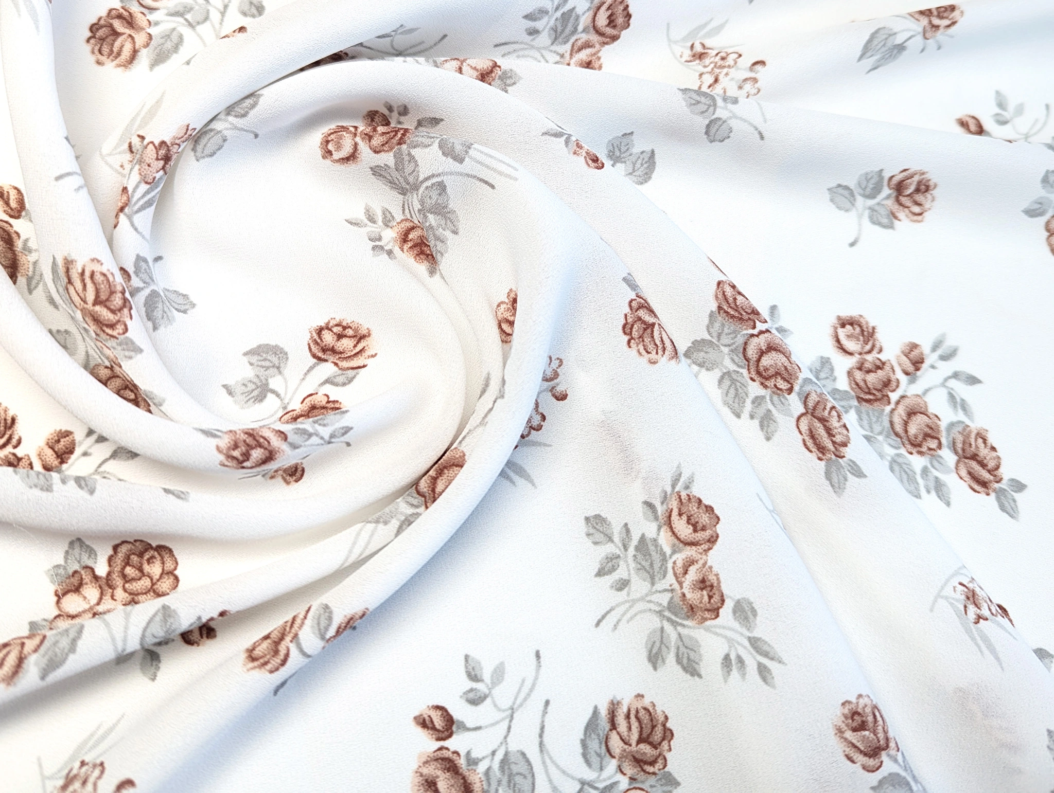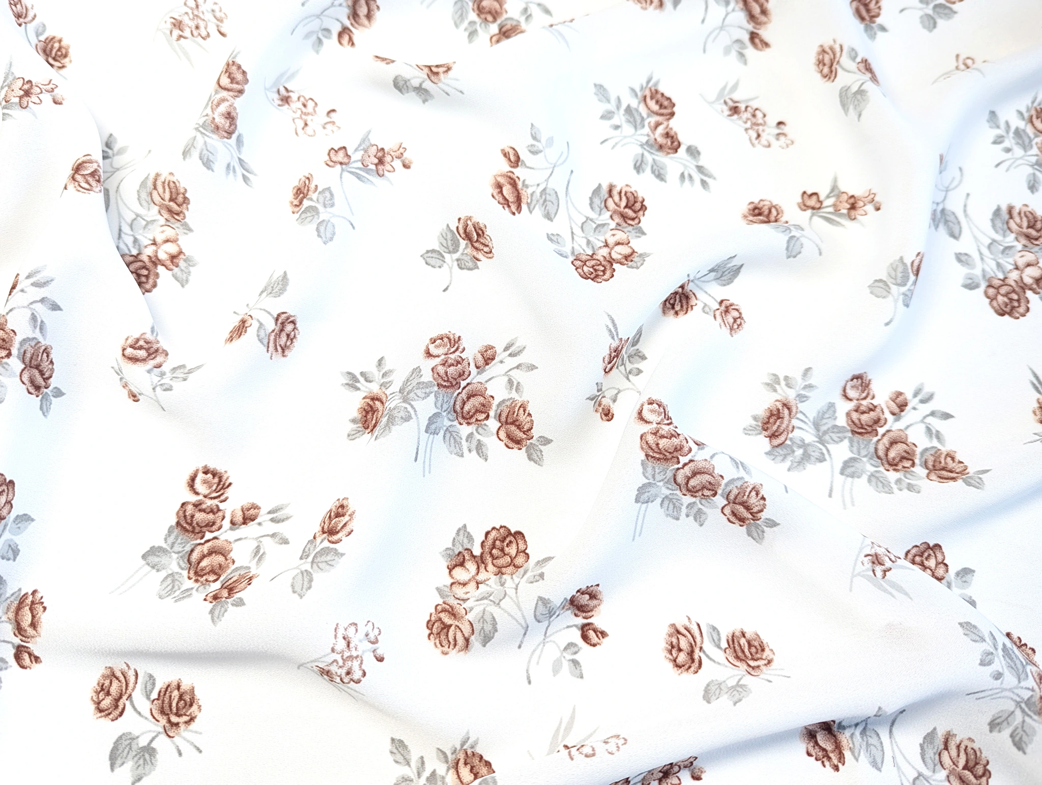 Креп шифон троянди, коричневий на молочному