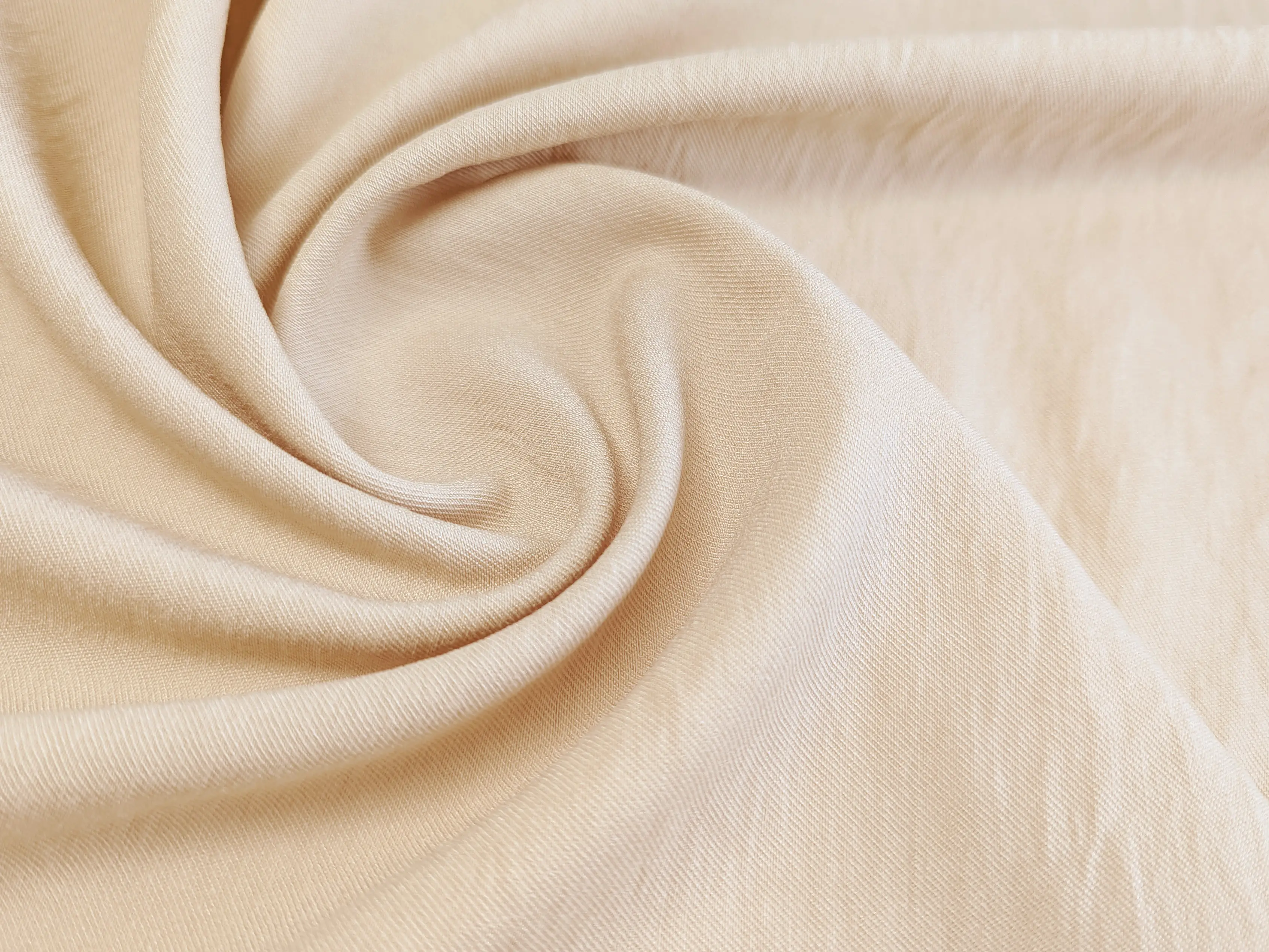 Купра твіл - різновид віскозної тканини, що має більшу щільність, ніж звичайний штапель. Діагональне переплетення ниток надає тканині додаткову міцність і візуальну фактуру у вигляді рубчика. Поверхня шорстка з текстурованим ефектом жатки. Гігроскопічна, відмінно вбирає вологу і пропускає повітря. Тканина має легкий силуетний просвіт, у драпіруванні зберігає об'єм і форму м'яких складок, не еластична, завдяки натуральним волокнам - мнеться.
