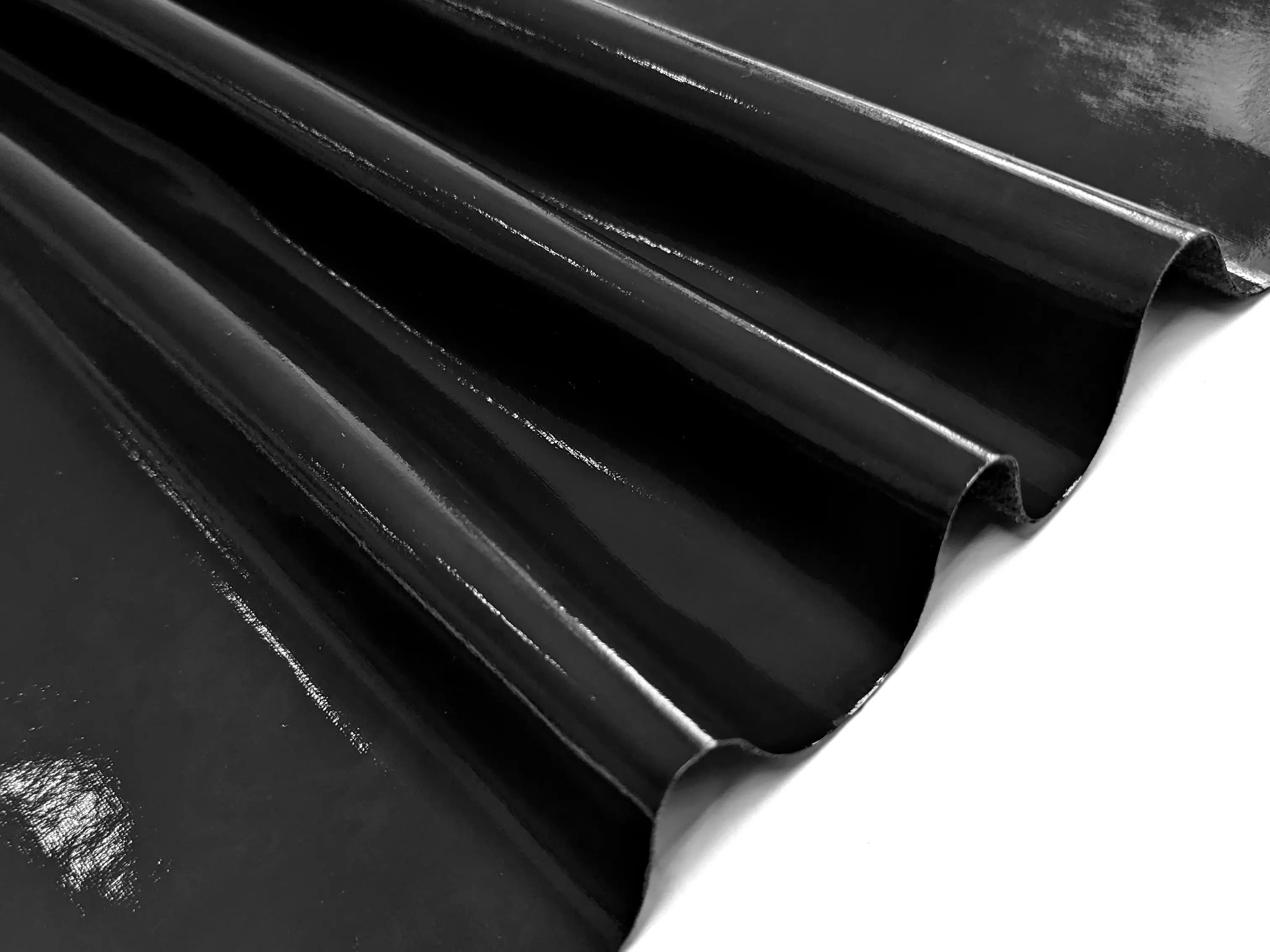 Лак стрейч - м'який, пружний, приємний на дотик, лакований шкірозамінник. Лицьова сторона полотна гладка з характерним глянцевим блиском, не шелестить, виворот з невеликим ворсовим покриттям. Тканина еластична в поперечному та поздовжньому напрямку, формостійка, пластична, дозволяє шити вироби приталеного силуету.
