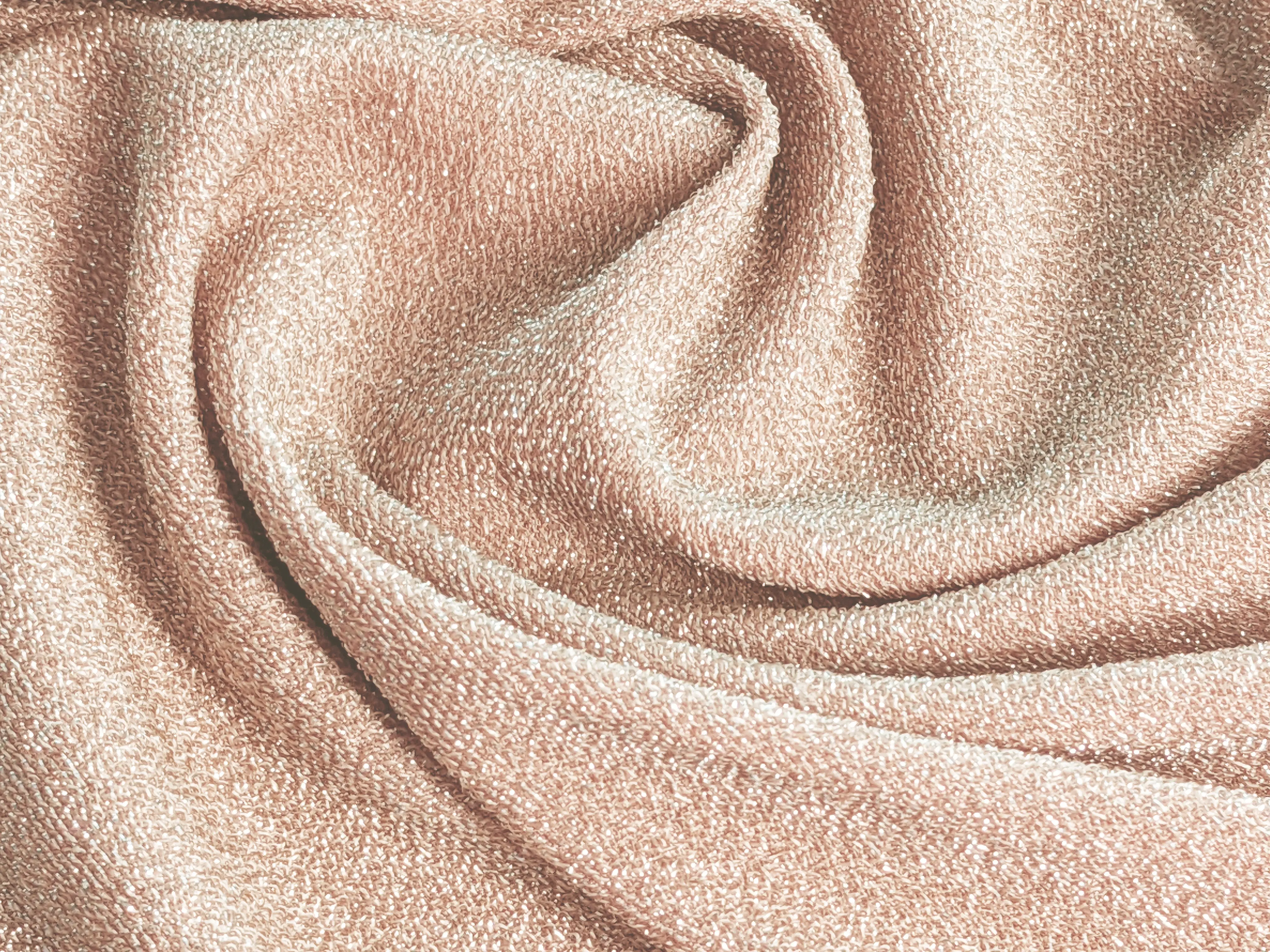 Трикотаж люрекс - це трикотажне полотно з блиском. Люрексові нитки вплетені в структуру полотна, при цьому виворіт гладкий. Тканина дуже приємна до тіла, не колеться і дозволяє шити таким чином вироби без підкладки.