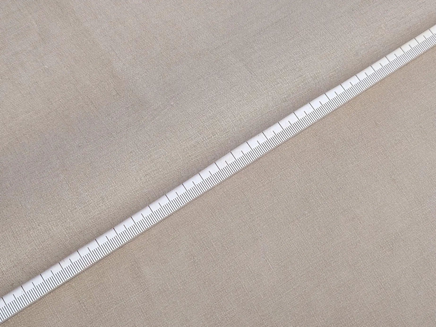 Натуральний льон - легка та дихаюча тканина з чистого, 100% лляного волокна. Поверхня полотна матова, має природну фактуру з характерними потовщеннями нитки. Матеріал екологічний, міцний і зносостійкий, дуже добре пропускає повітря і вбирає вологу, у спеку створює відчуття прохолоди. Високе зминання тканини є характерною особливістю чистого льону і підкреслює його натуральне походження. Тканина нееластична, має силуетний просвіт у світлих відтінках.