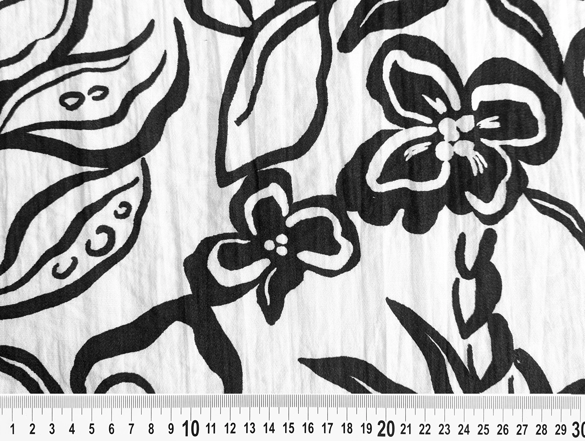 Тканина не тягнеться, що потрібно враховувати під час пошиття виробу. Вимагає делікатного режиму прання в машинці, а також дотримання середнього температурного режиму при прасуванні праскою.