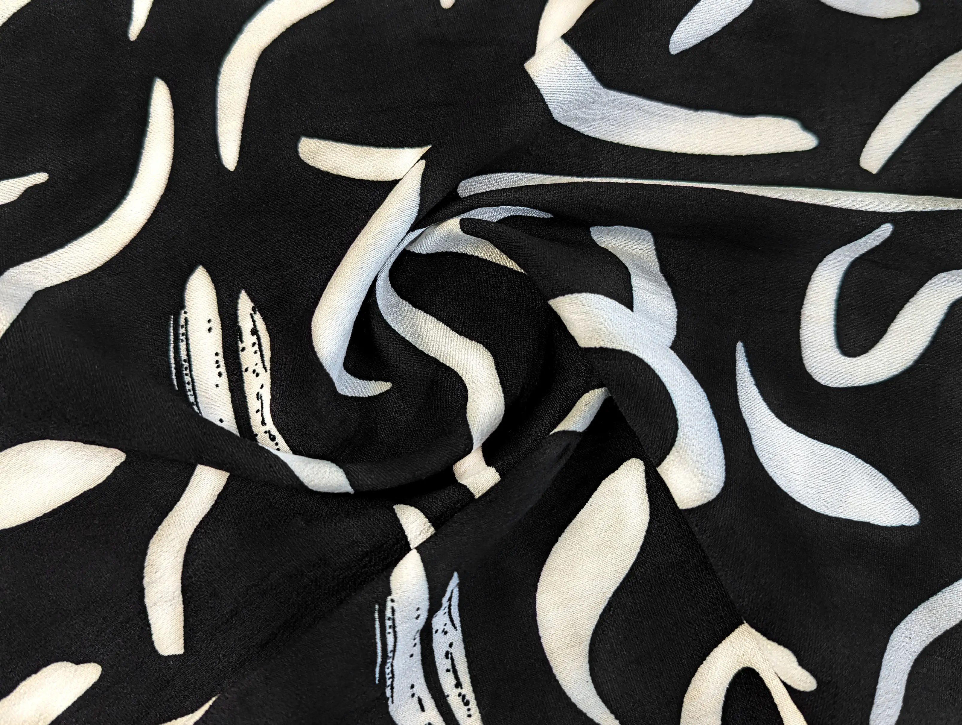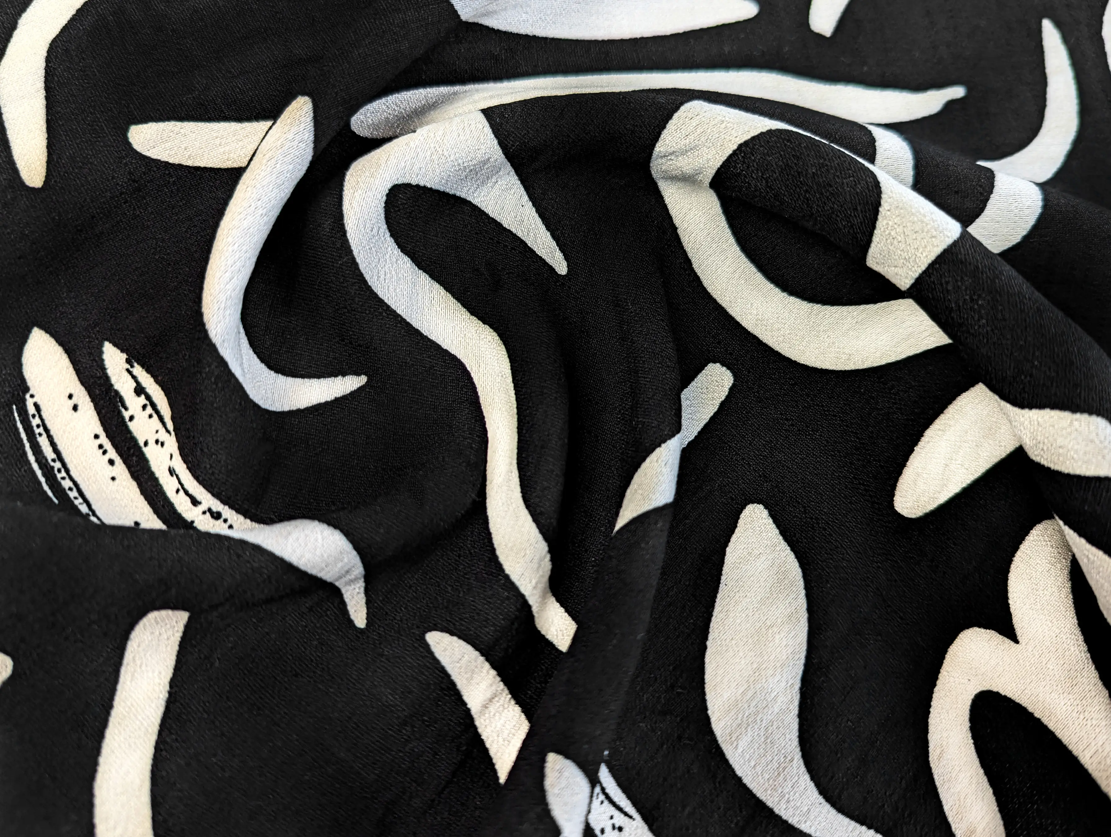 Льон бохо малюнок абстракція, чорний з молочним