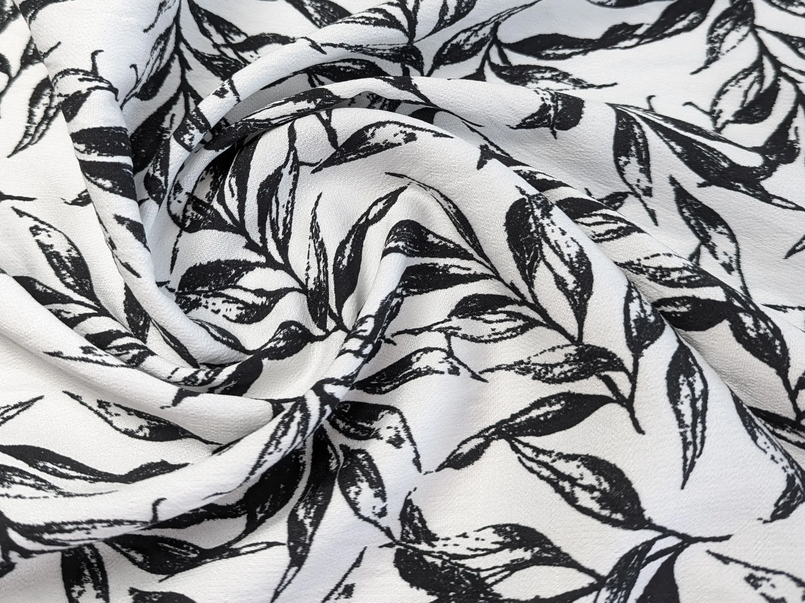 Льон бохо малюнок листяний дует, чорний на молочному
