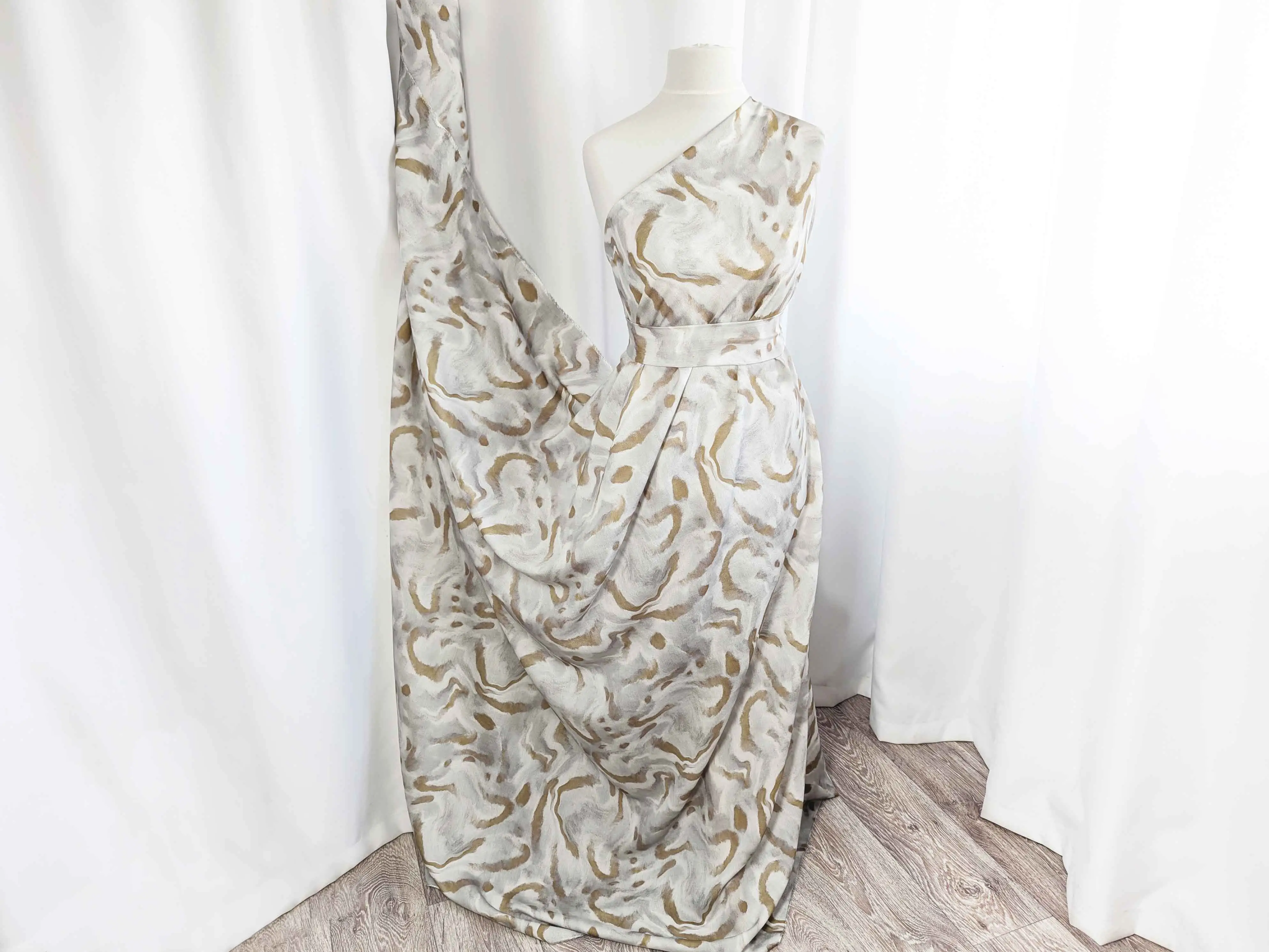 Код: л46, 2509100A, д11, к1Льон Бохо — це легка, але міцна тканина, яка злегка тримає форму, не просвічується й майже не мнеться. Вона виготовлена зі змішаних волокон віскози та нейлону, а її текстура імітує лляне полотно завдяки полотняному переплетенню ниток — саме це й стало основою для назви тканини.