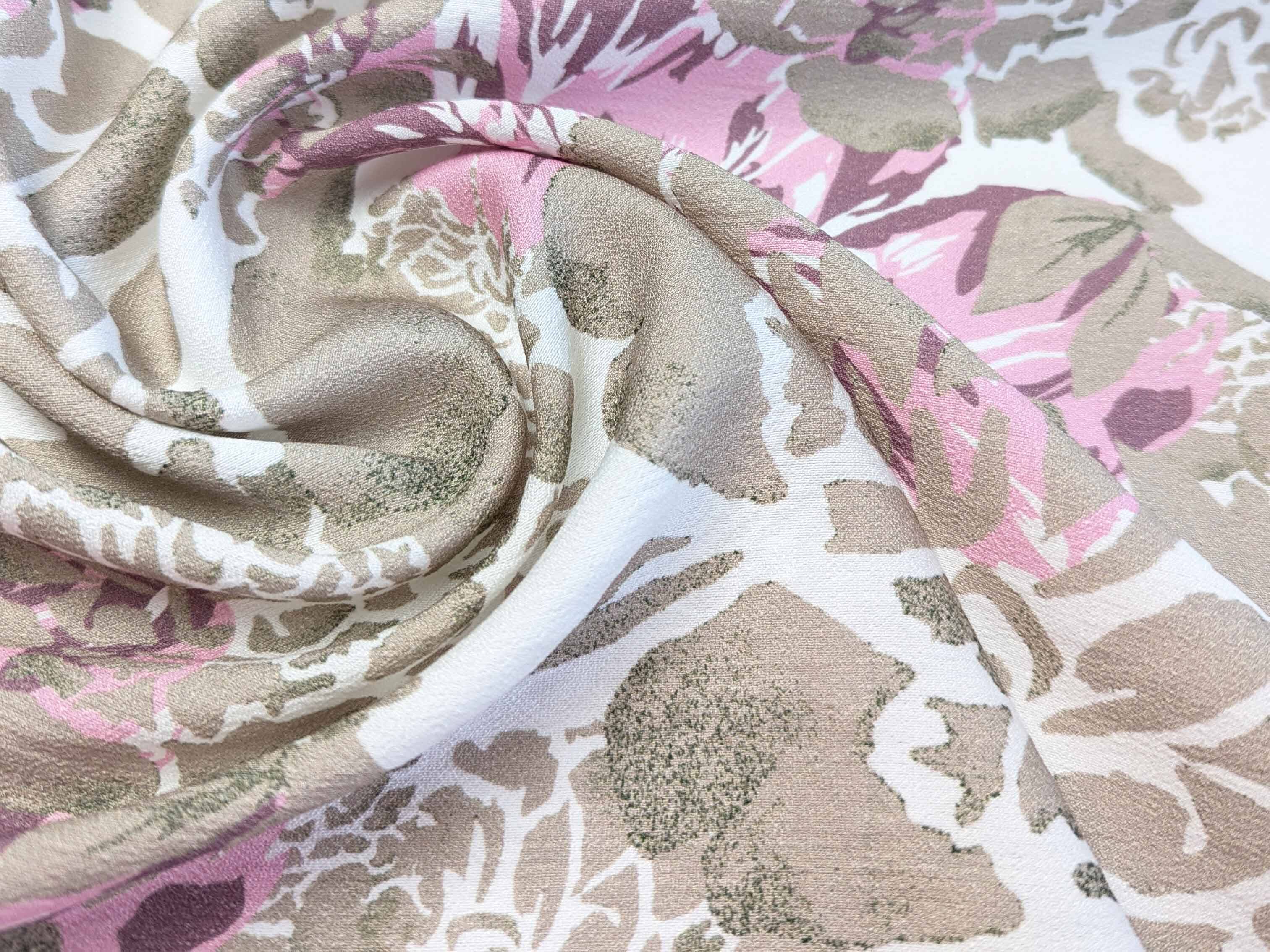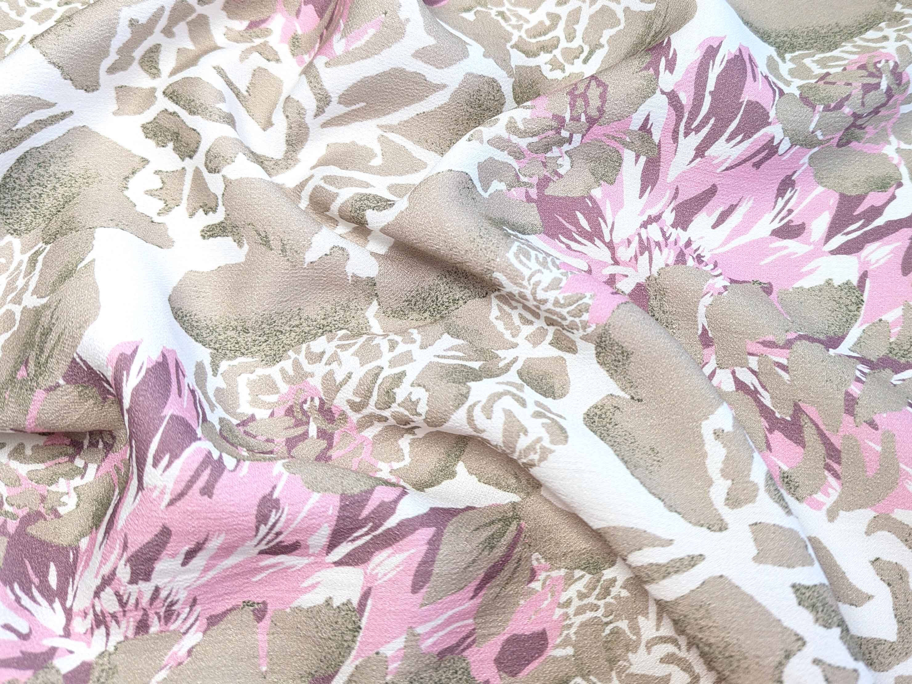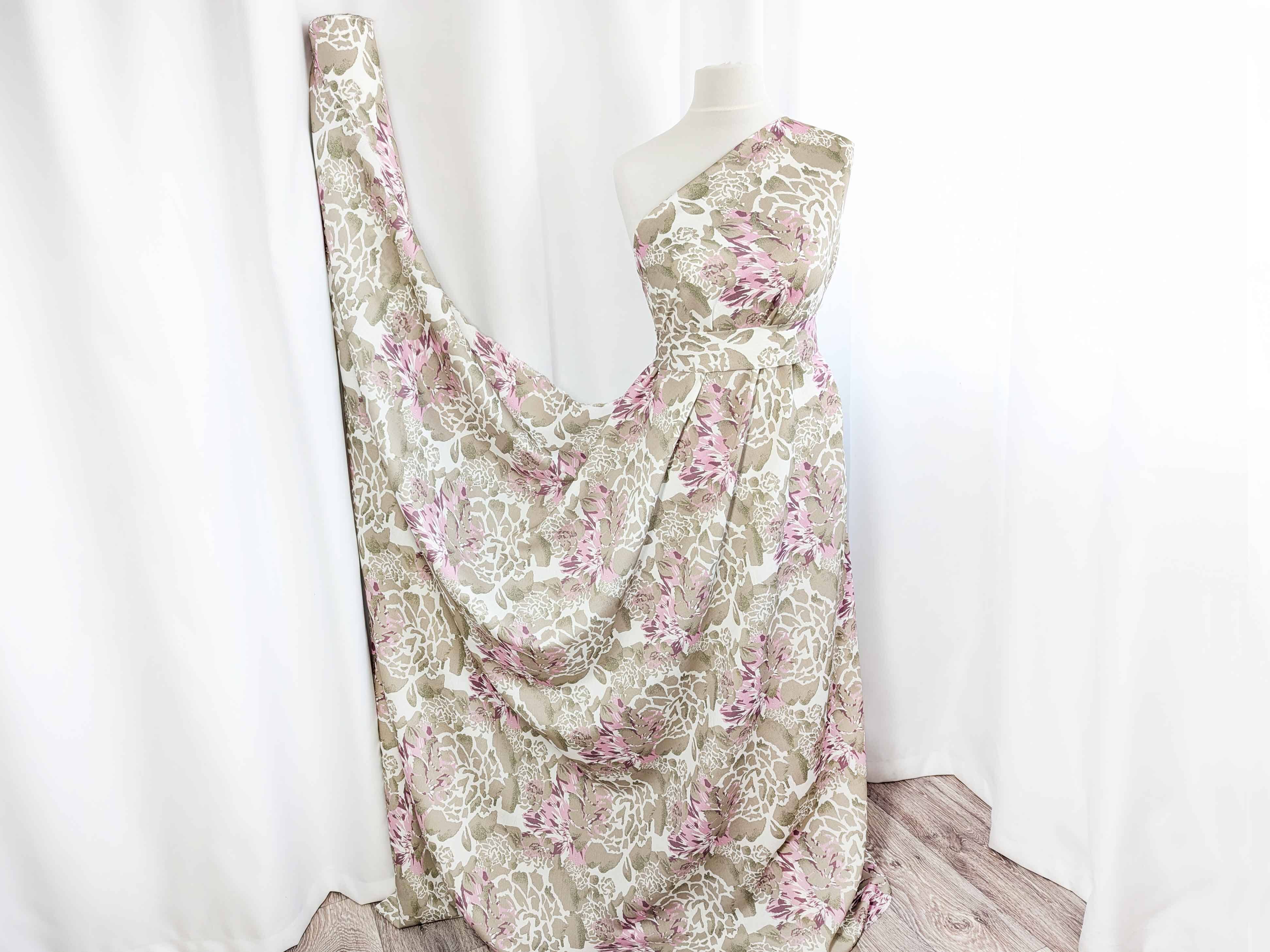 Льон бохо малюнок півонії, бежевий з рожевим