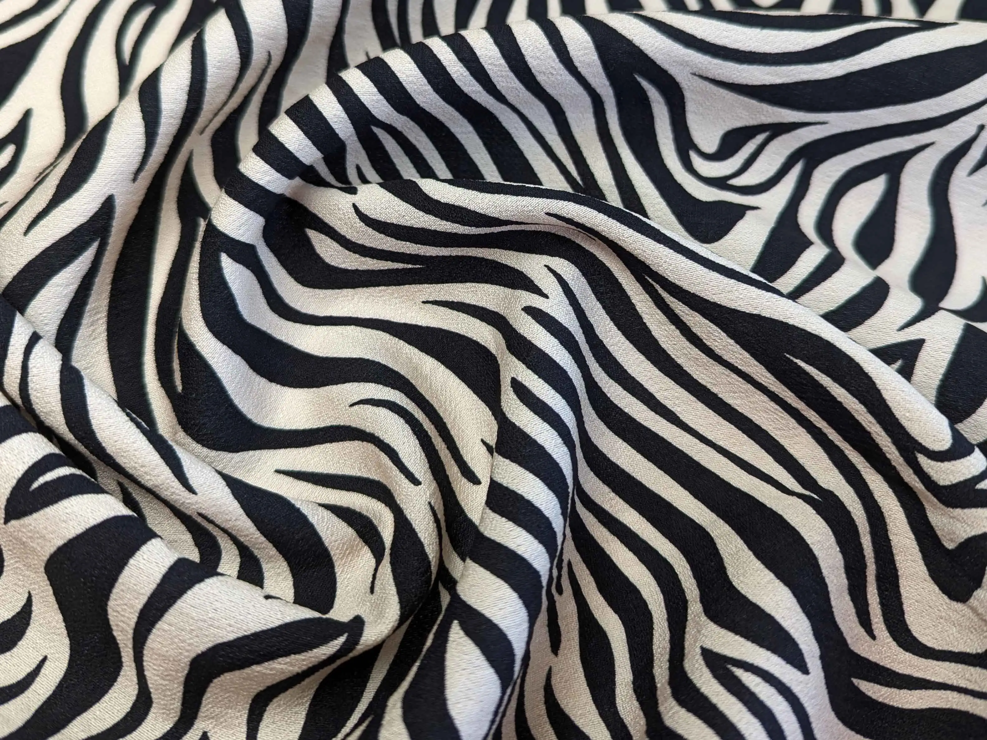 Льон бохо малюнок зебра, чорний на бежевому
