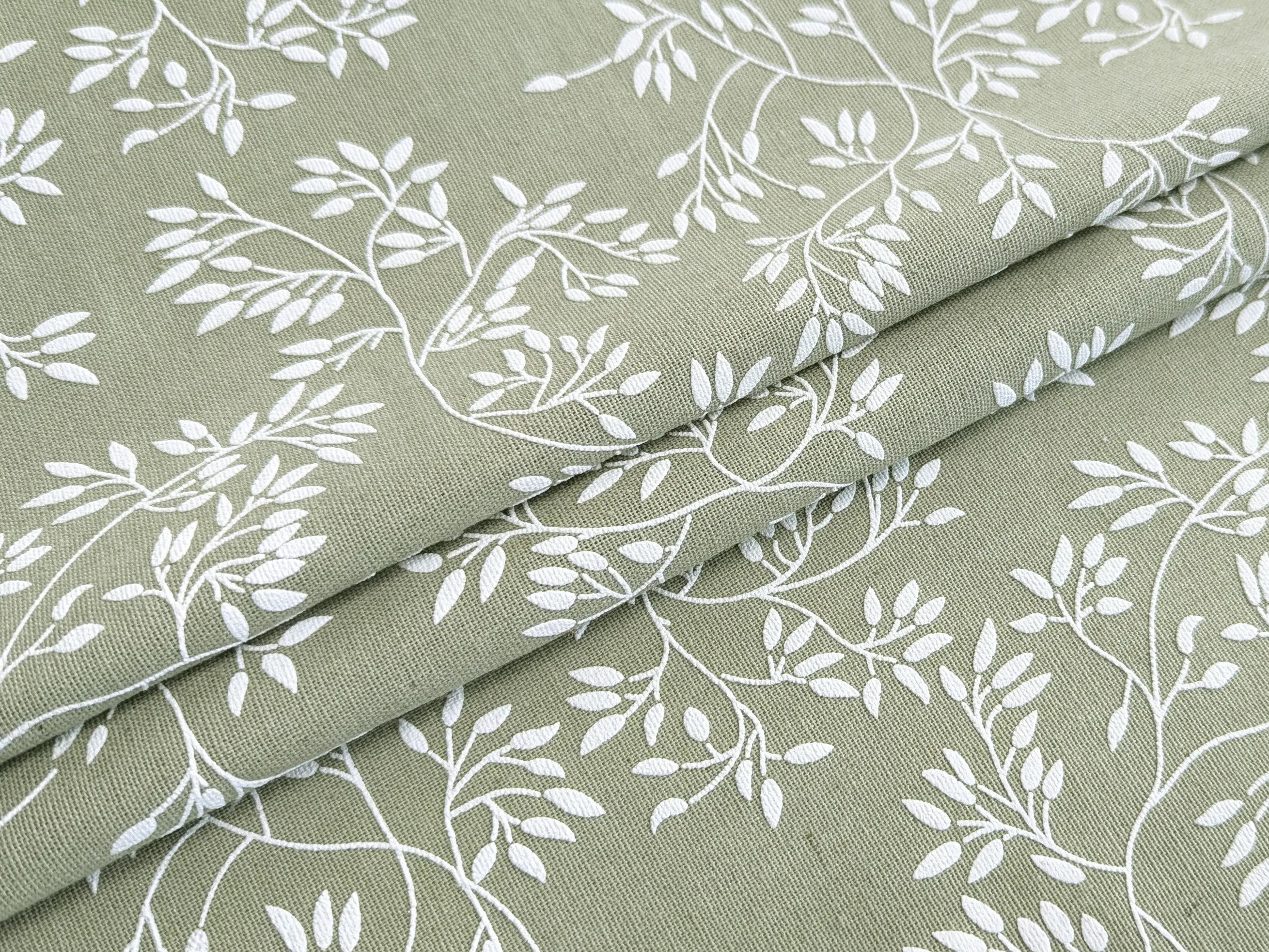 Льон котон лакр - це лляна тканина середньої щільності, що складається з натуральних і синтетичних волокон. На лицьову сторону нанесено дрібний, текстурний квітковий принт. Матеріал міцний, гігроскопічний, добре пропускає повітря. Льон трохи мнеться, але легко розгладжується, під час драпірування набуває стійкої форми. Дана тканина має силуетний просвіт.