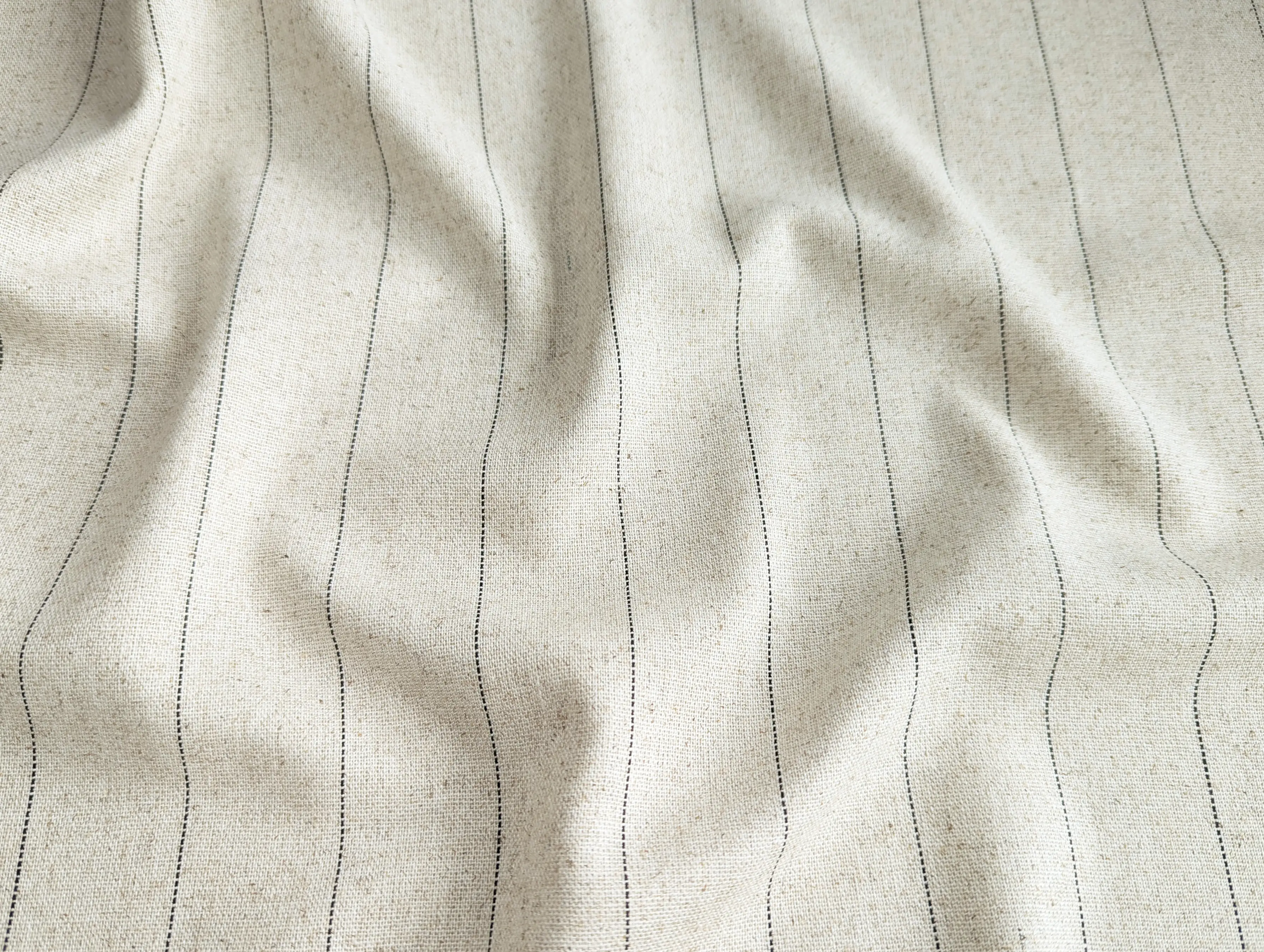 Льон віскоза смужка - тонке, м'яке лляне полотно натурального походження. Тканина злегка еластична по ширині полотна, має силуетний просвіт, при драпіруванні лягає в м'які складки, за рахунок вмісту натуральних волокон - мнеться. Матеріал гігроскопічний і повітропроникний, що не менш важливо в спекотну погоду. Принт смужка виконаний в поздовжньому напрямку (поздовж кромки).