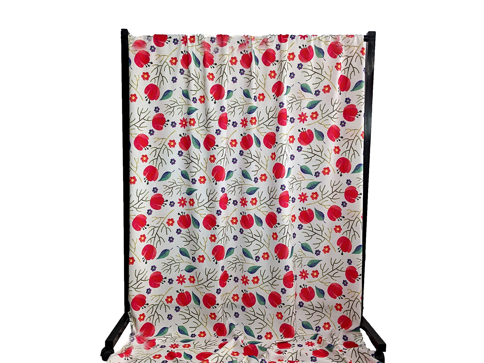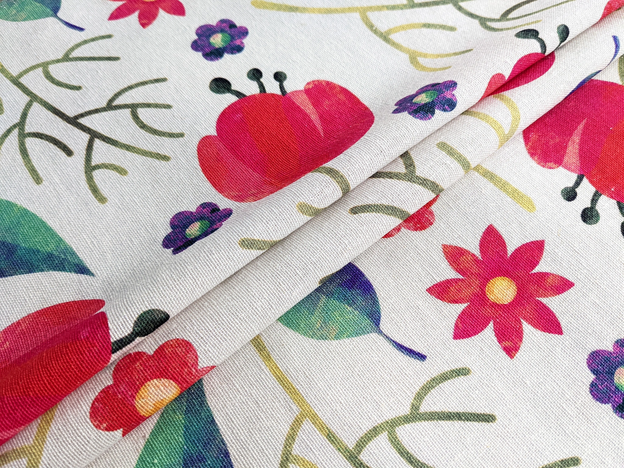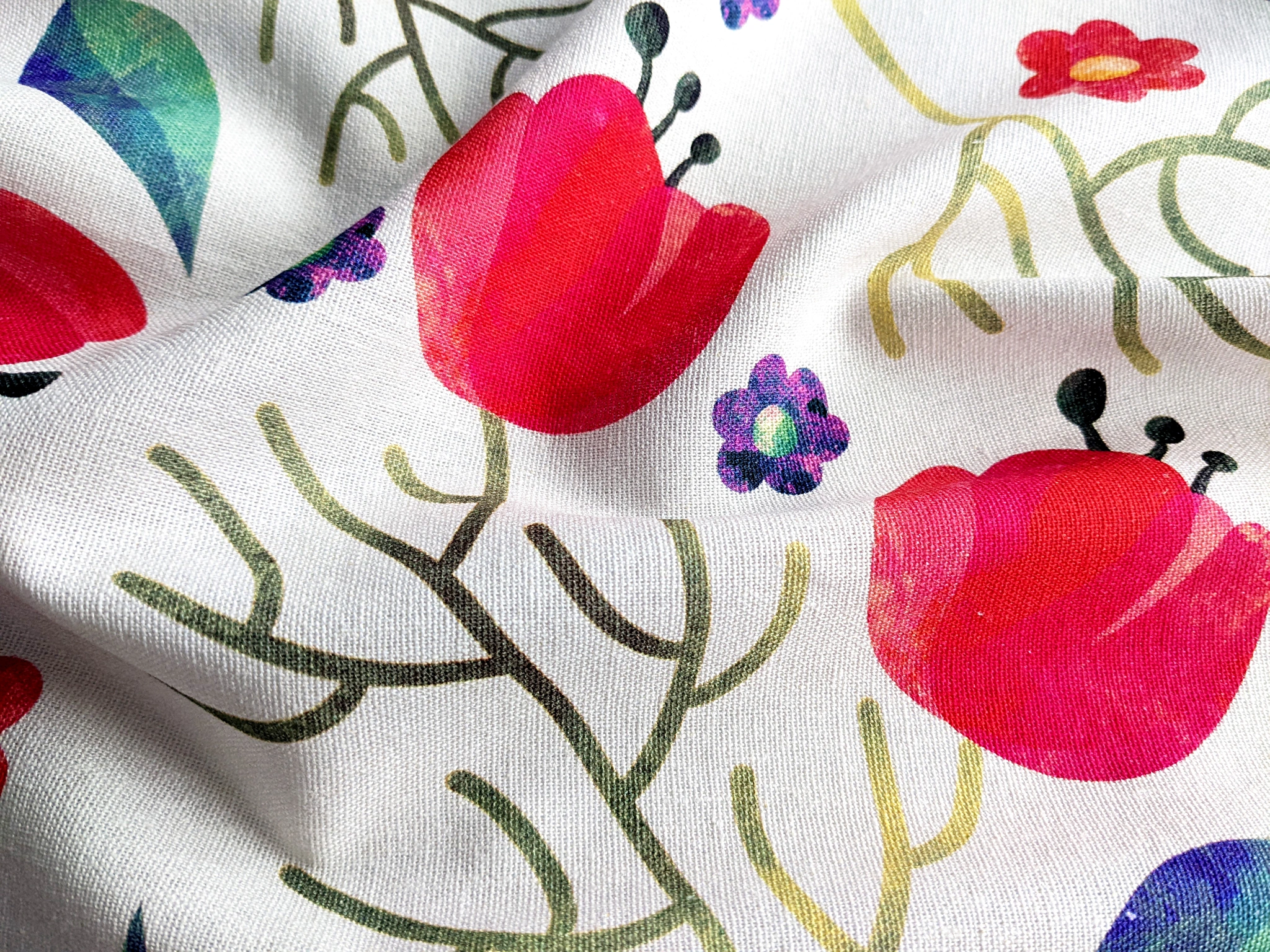 Льон віскоза тюльпани, червоний с зеленим