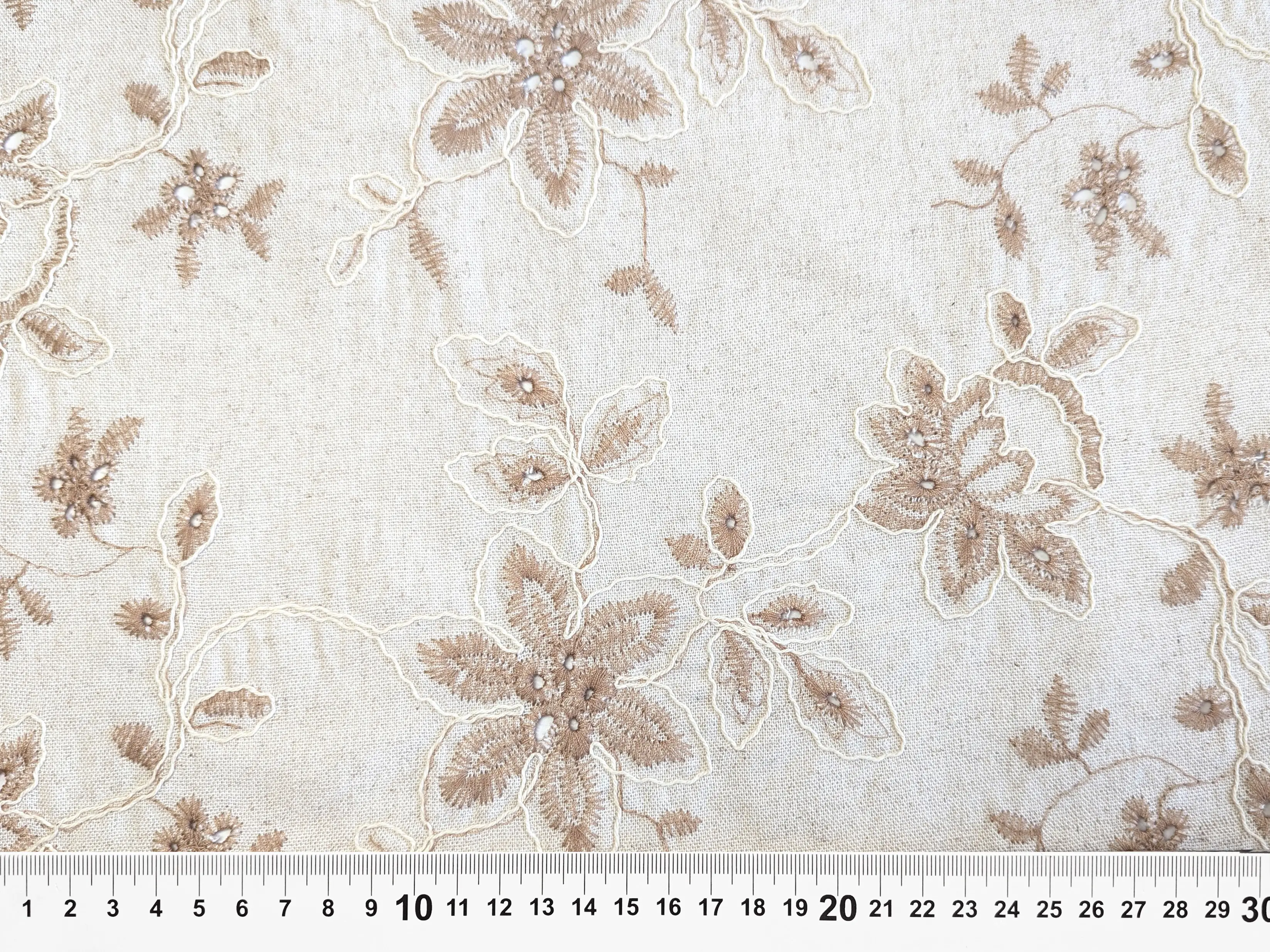 Льон віскоза вишивка квіткове плетіння, бежевий меланж