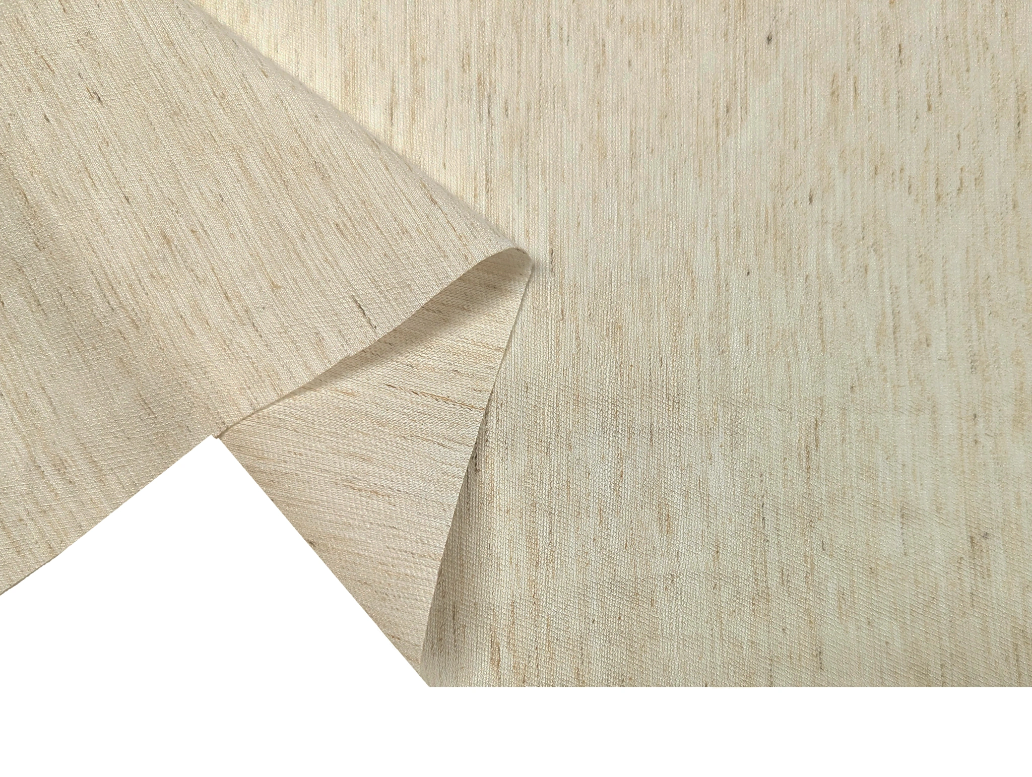 Лен вискоза с нейлоном - тонкий, легкий, тактильно приятный материал с матовой поверхностью, слегка жатой структурой и меланжевым эффектом. Ткань имеет силуэтный просвет, за счет содержания натуральных волокон - сминается, при драпировке ложится в мягкие складки. Материал гигроскопичный и воздухопроницаемый , что не мало важно в жаркую погоду.
