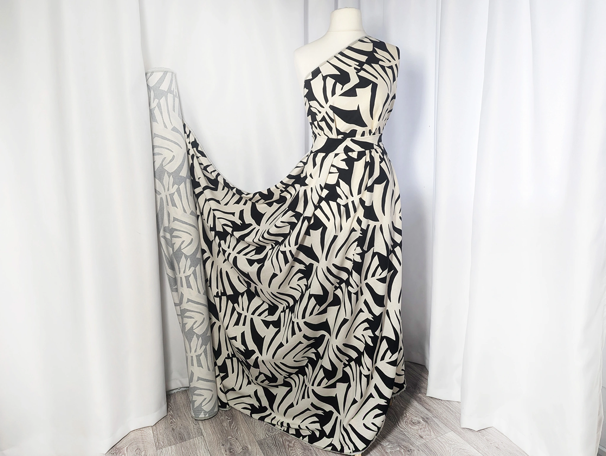 Яскравий квітковий принт створений для одягу літнього сезону. Красиво виглядає в сукнях, жакетах, костюмах і спідницях.