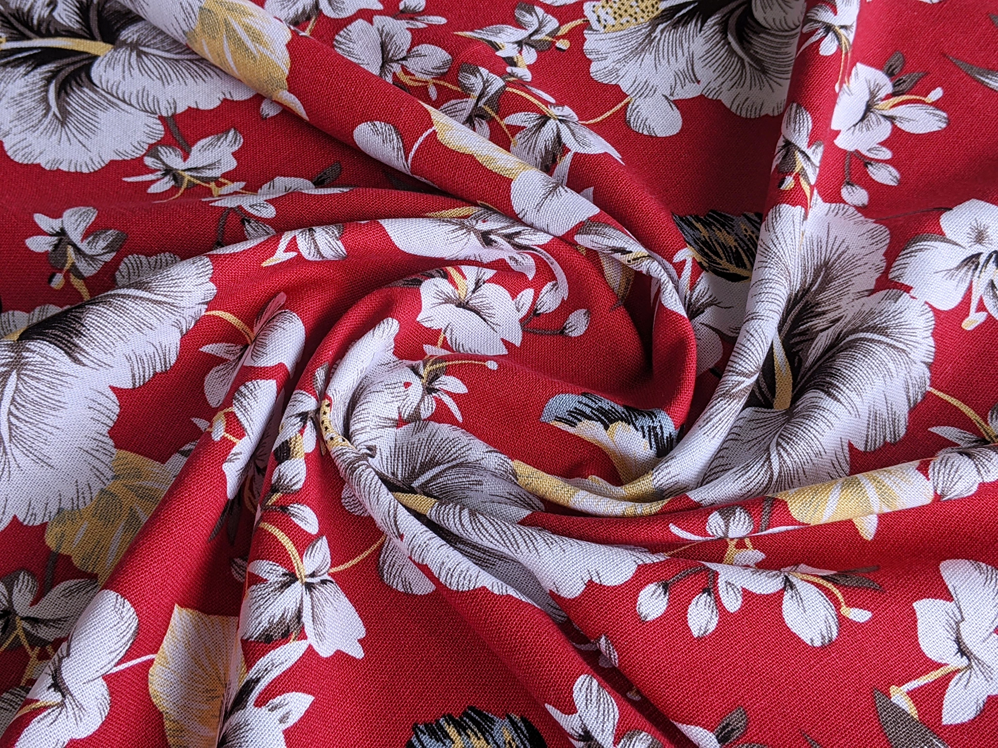 Яскравий квітковий принт створений для одягу літнього сезону. Красиво виглядає в сукнях, жакетах, костюмах і спідницях.