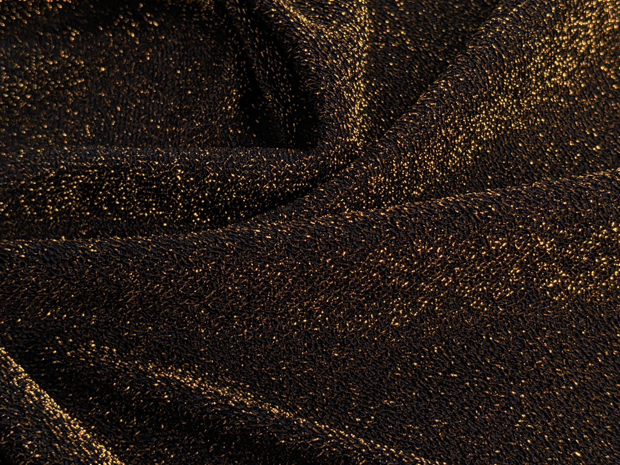 Трикотаж люрекс - це трикотажне полотно з блиском. Люрексові нитки вплетені в структуру полотна, при цьому виворіт гладкий. Тканина дуже приємна до тіла, не колеться і дозволяє шити таким чином вироби без підкладки.